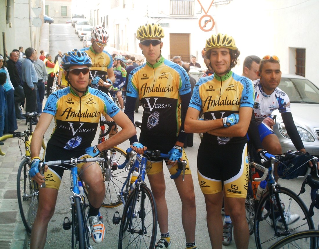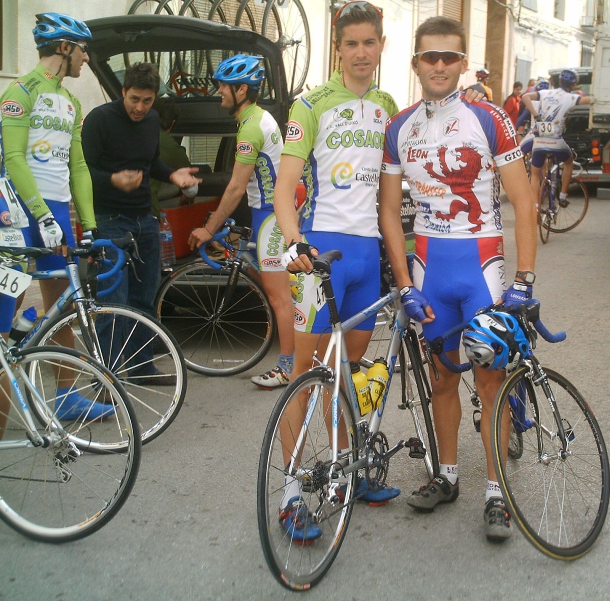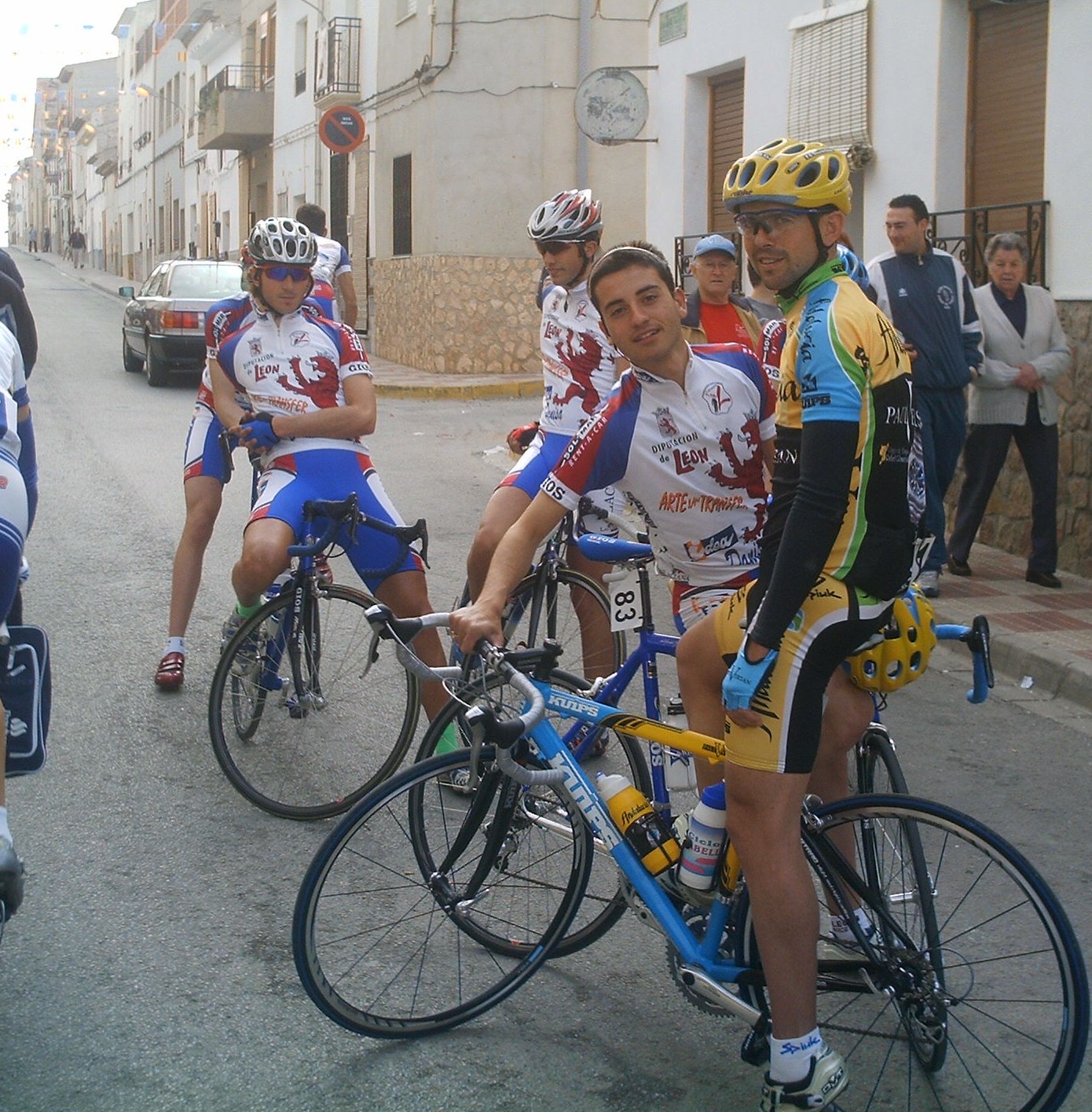 Ahi me quede solo, en ese sitio no se quedaba nadie, solo el Juanmi, un chabal de Benidorm del Grefusa, que se quedo ahi solito, asi que nos juntamos los dos a perseguir, pero poco convencidos de enganchar, asi que aflojamos y nos pusimos a hablar, por lo visto era amiguete del mítico Raul de Olula, que corrio con el en ciclos el año pasado. Subiendo el puertecillo de Montealegre vimos a uno a lo lejos, le digo a Juanmi, parece un Caprabo,no?? -Si. si parece. Al final vimos que era un Cosaor, luego vino un Brico Iberia que nos cogio por detras y nos juntamos los cuatro cuando uno dijo ,-Ehh, que viene la grupeta detras.-Pero hay grupeta?????? No jodassss!!!
