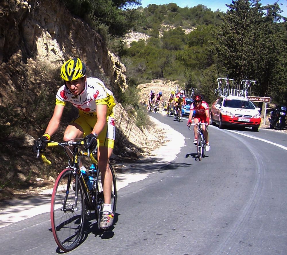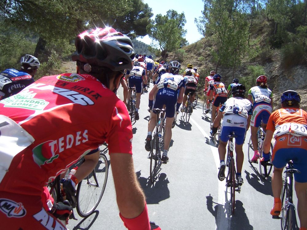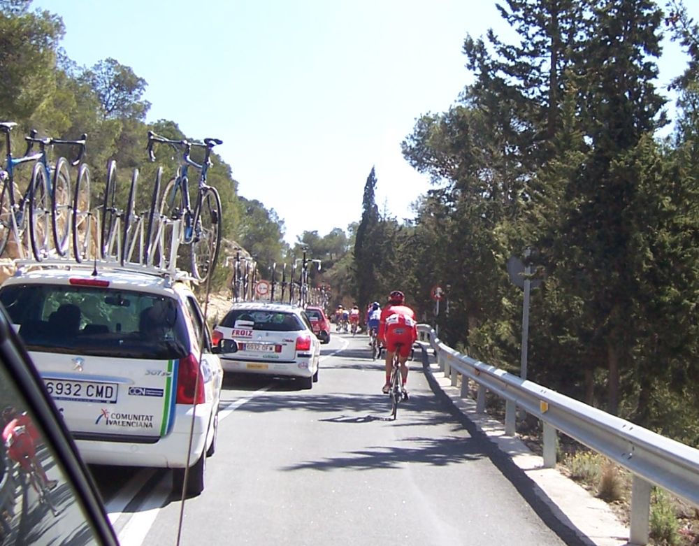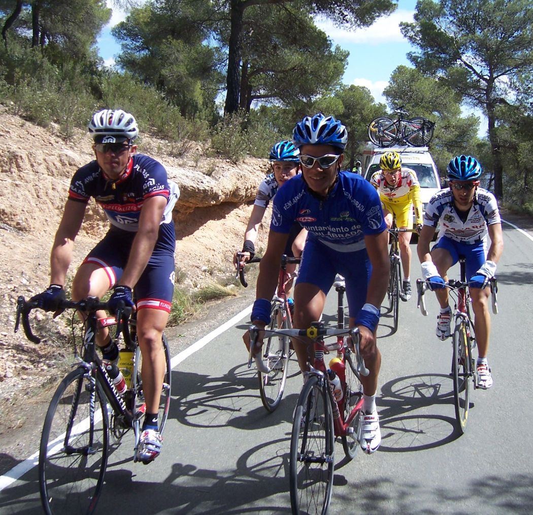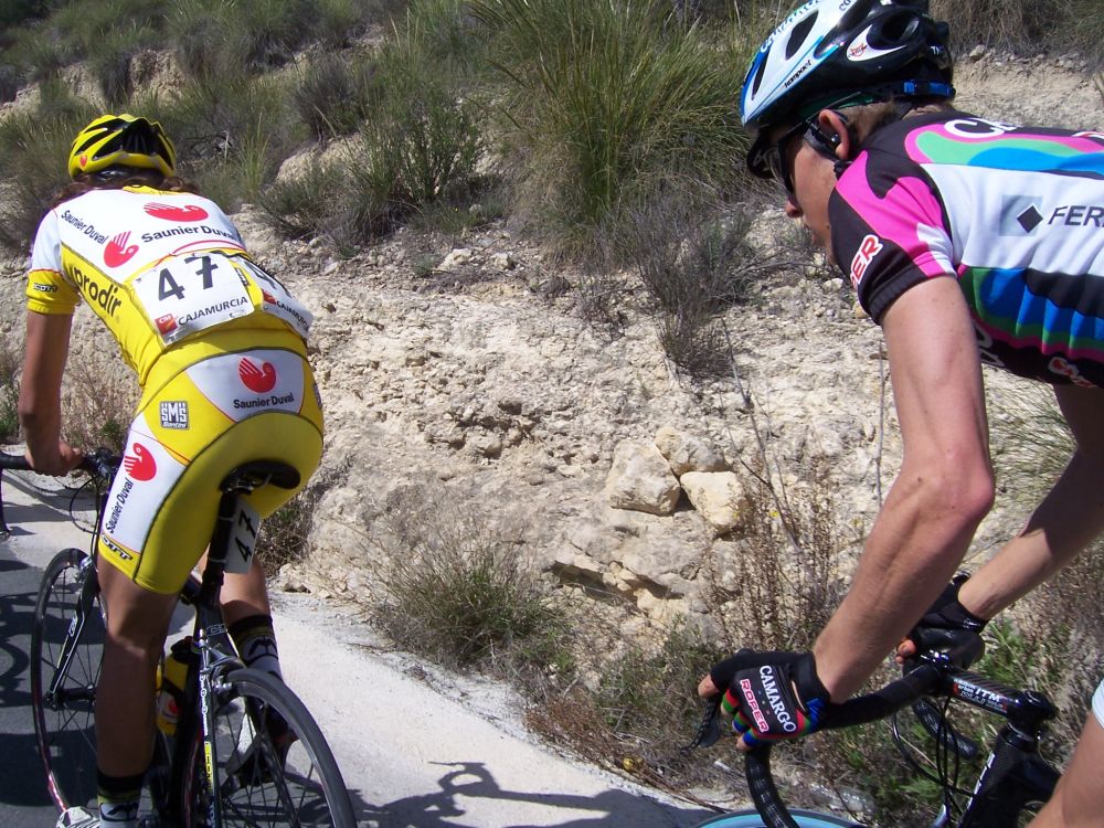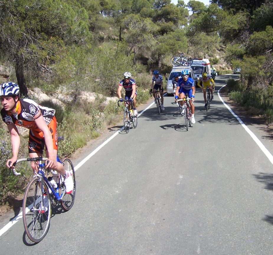 En el Alto de Espuña me cogió un grupo con el Carras del León que se lanzó bajando para ver si cogian, nos pasaron los coches y yo vi factible empalmar, asi que me puse necio en el plano ese y conseguimos entrar en el pelotón otra vez, aunque era por poco tiempo por que como dice Perico.. si te has quedao te has quedao... y claro, venia el puerto gordo, si enganchas y no hay mas puertos pues mira pero a pie del puerto de primera...