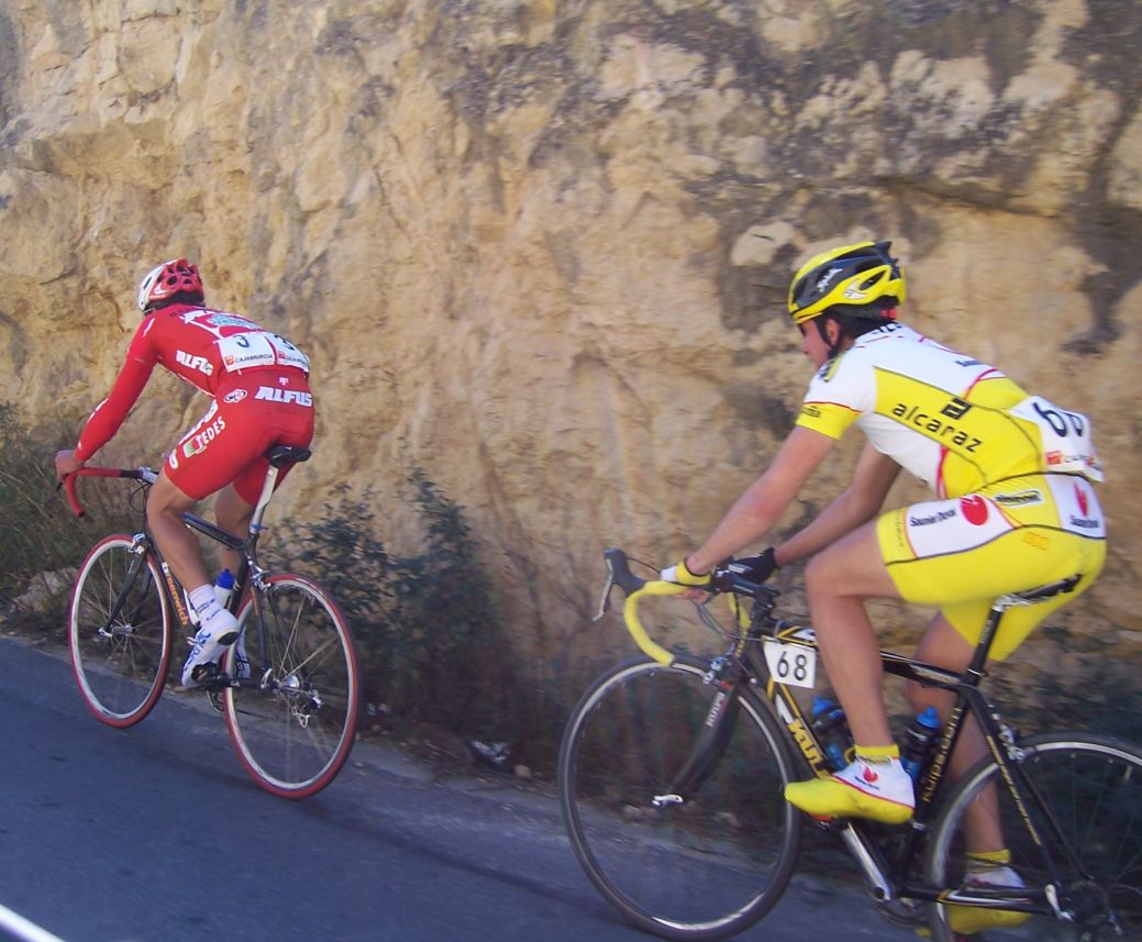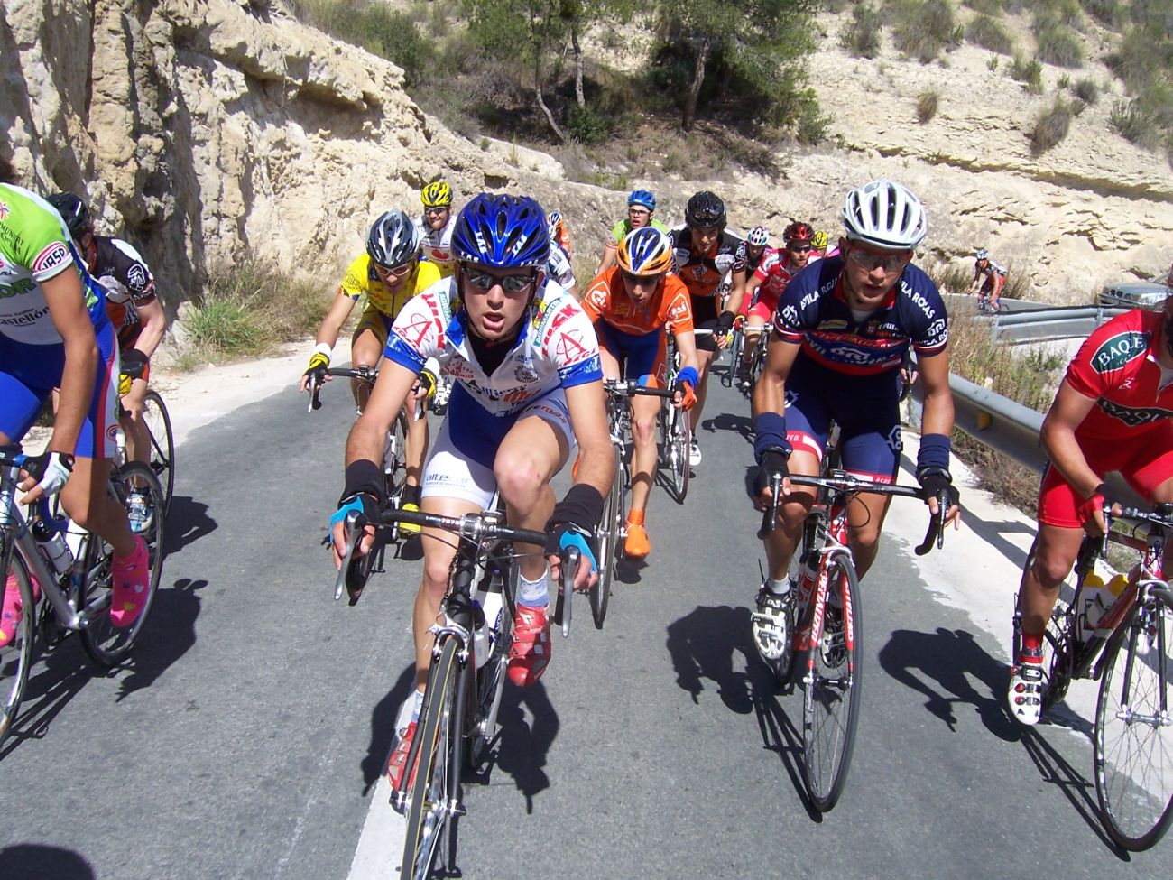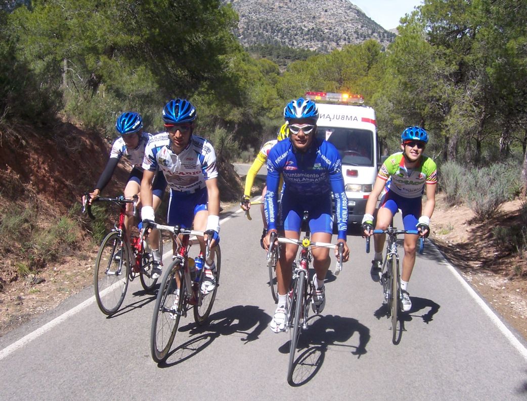 Subimos los primeros repechos, en teoria mi terreno fácil para arrancar, no se iba deprisa, se iba normal.. pero yo iba jodido no podia ni arrancar ni nada, con ir a rueda ya contento, que triste.. encima para colmo se para a mear Elorriaga coronando el repecho para humillarnos... En fin, parece que respire un poco pero la cosa no iba bien, me meti alante para afrontar el puerto de tercera, Alto de Cinta, con garantias, empezó el puerto y ya iba negro, lo pasé por que empezé alante, ya bajamos a Pliego y enganchamos el siguiente puerto, alto de Espuña de tercera, ahi ya no tuve capacidad de reación.. planté un seto.
