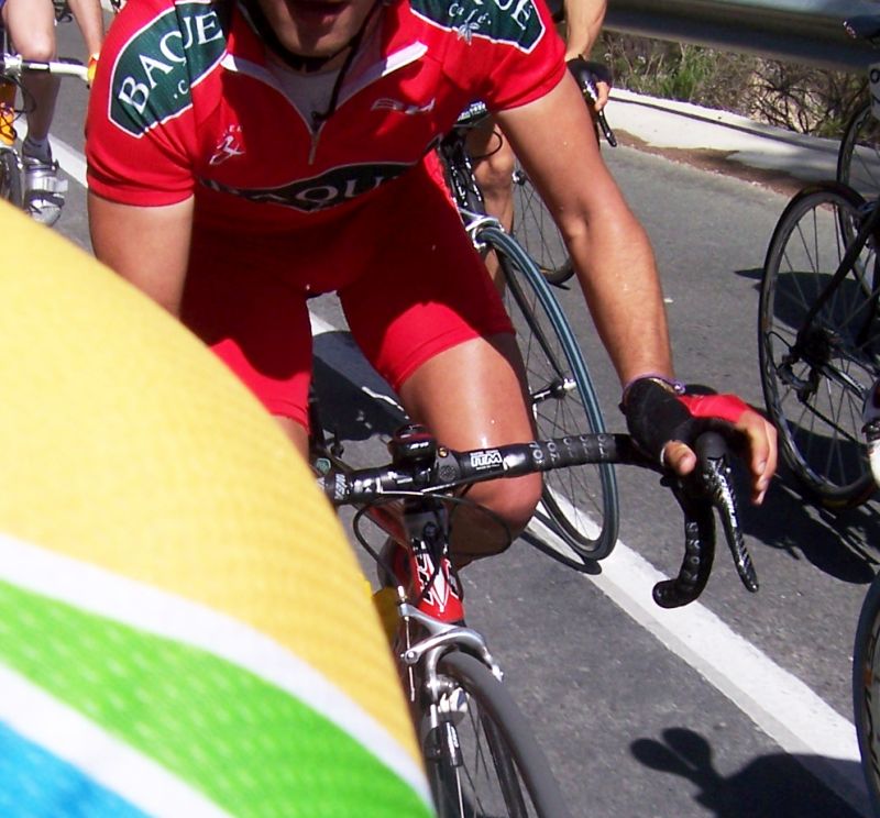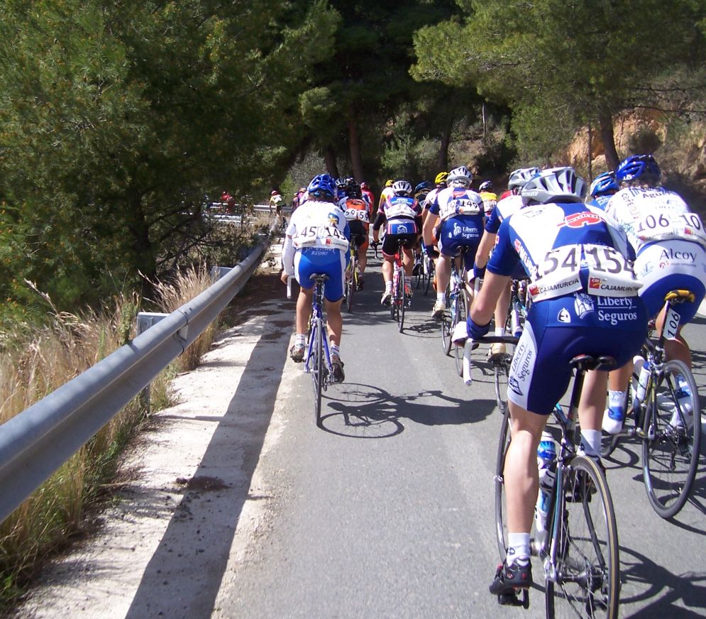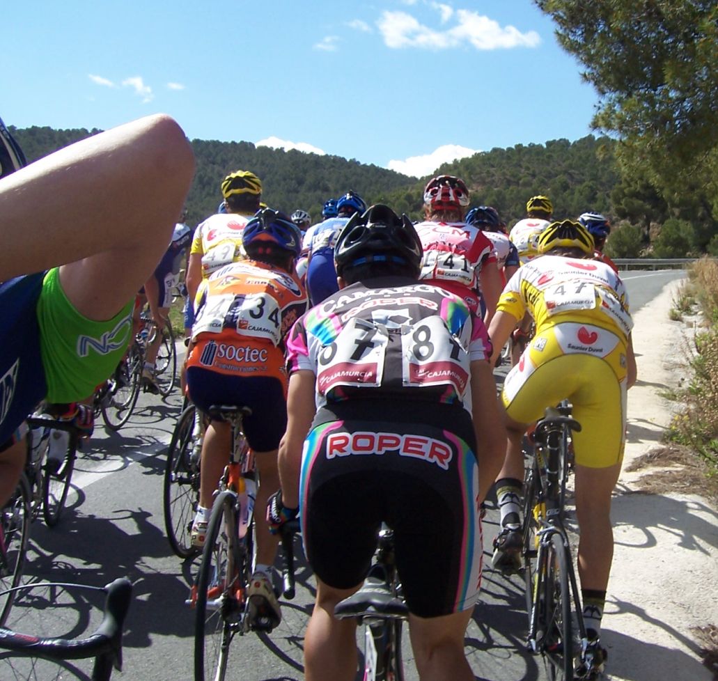 Iba yo comentando tranquilamente con un Roper lo mal que estaba la via de servicio de Sangonera, que como podía entrenar la grupeta de Valverde por ahi, cuando de repente hay una caida delante producida por un bache de la susodicha via , la esquivo sin problemas, pero pierdo un hueco con el pelotón, me hago una serie para cerrar el hueco y cuando cojo al pelotón buscando de nuevo estabilidad puffffff, que mal iba, pase de ir fumando a ir penando penando, no era normal encontrarme tan mal despues de esa seriecilla, que mal iba, que sinvivir, no volvi a ir bien en el resto de carrera.
