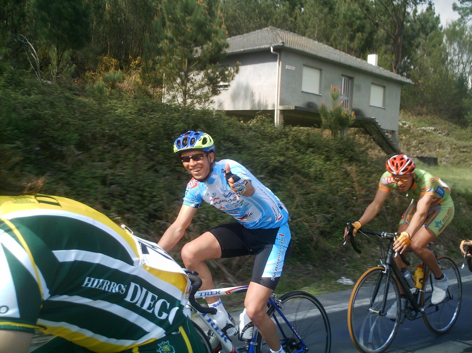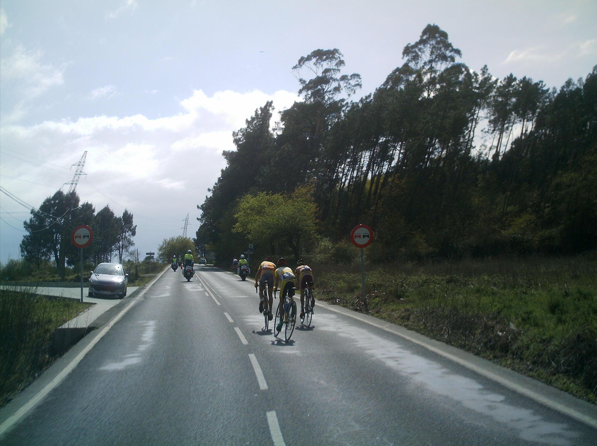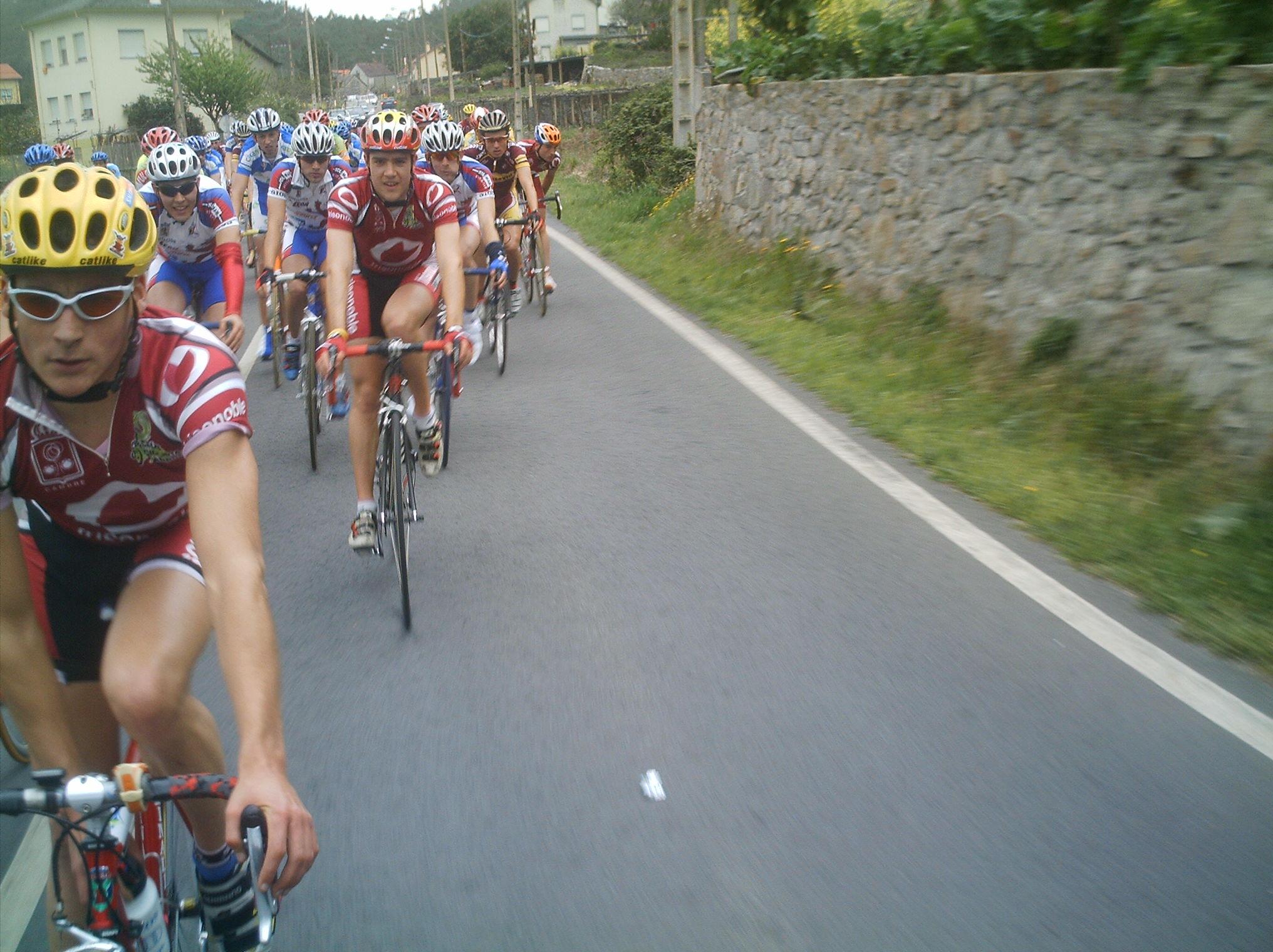 Las carreras de Andalucia se llaman Bulerias, las de Castilla Leon chirucas, pues las de Galicia Parrilladas, porque? Porque no se me ocurrre otro nombre y en carrera no se veian mas que restaurantes de parrilladas o mariscadas... Corrian unos cuantos equipos portugueses de esos,los equipos Gallegos y nosotros, que veniamos a liarla, ya en el primer puerto se fue Sergio Bernardo, luego llegamos por atras un grupo con Abel, Pepiño y yo , nos juntamos los 4 y nos pusimos a tirar a tope,. pero nos pillaron , Sergio volvio a arrancar y se fue con Pol Naben, por detras se fue otro grupo con Lucas, y nos kedamos en el pakete.