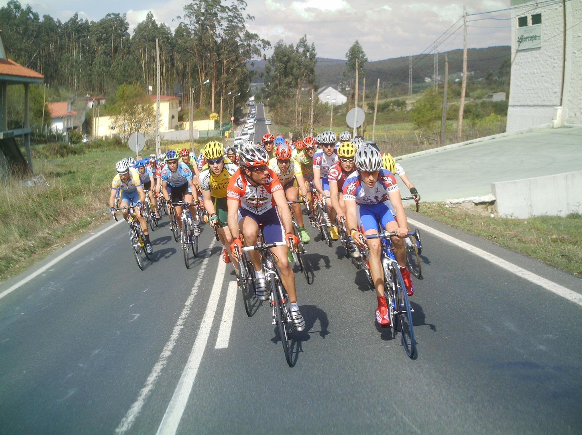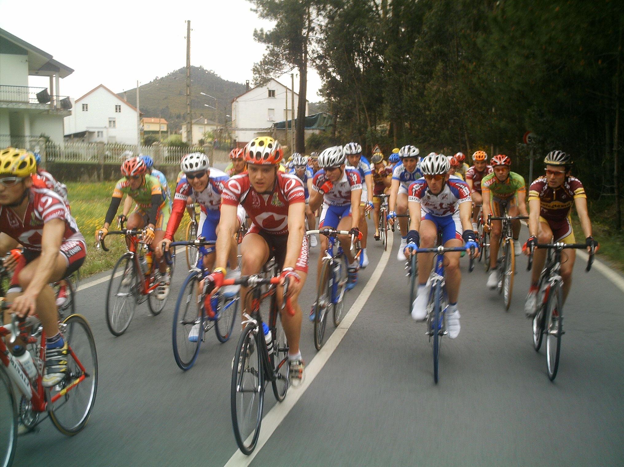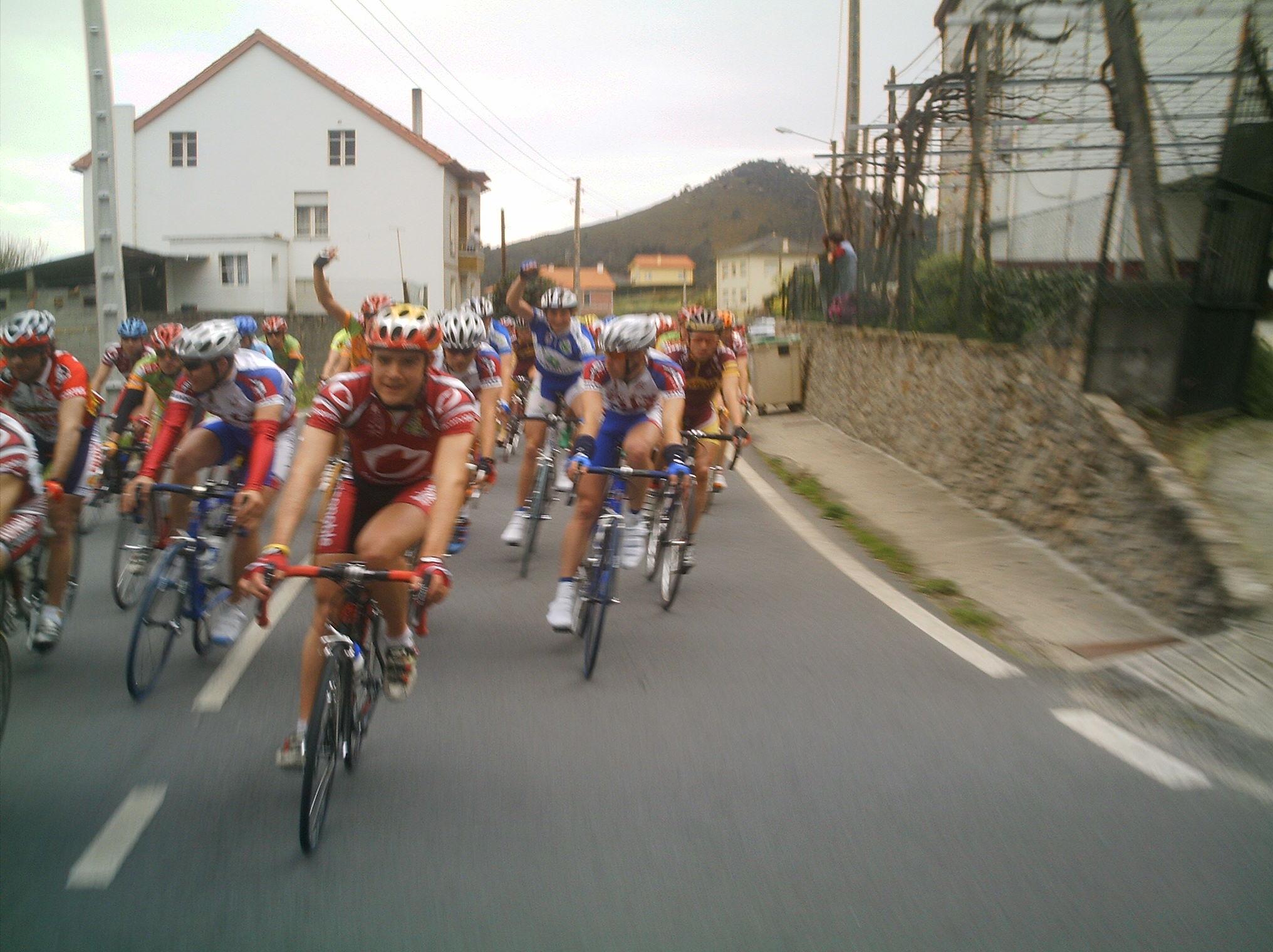 Las carreras de Andalucia se llaman Bulerias, las de Castilla Leon chirucas, pues las de Galicia Parrilladas, porque? Porque no se me ocurrre otro nombre y en carrera no se veian mas que restaurantes de parrilladas o mariscadas... Corrian unos cuantos equipos portugueses de esos,los equipos Gallegos y nosotros, que veniamos a liarla, ya en el primer puerto se fue Sergio Bernardo, luego llegamos por atras un grupo con Abel, Pepiño y yo , nos juntamos los 4 y nos pusimos a tirar a tope,. pero nos pillaron , Sergio volvio a arrancar y se fue con Pol Naben, por detras se fue otro grupo con Lucas, y nos kedamos en el pakete.