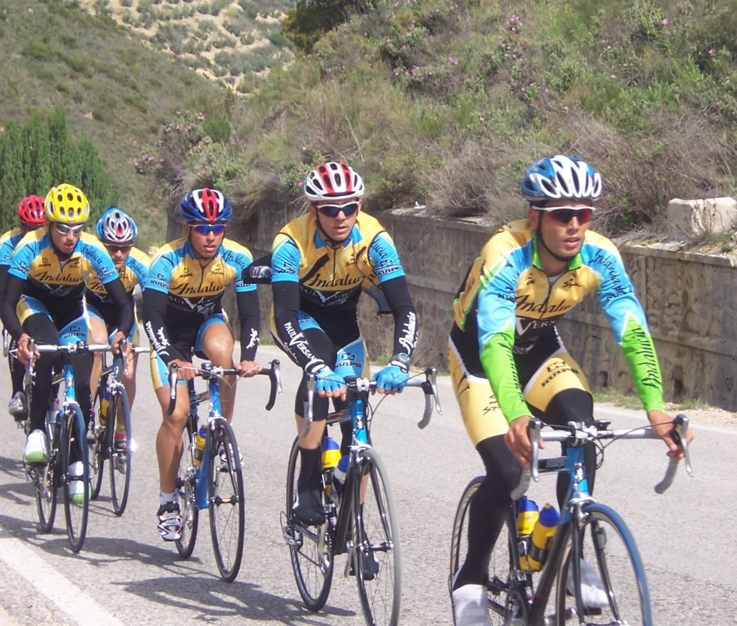 El Equipo subiendo el Col de los Villares, de primera categoria, era largo, no se acababa nunca.
