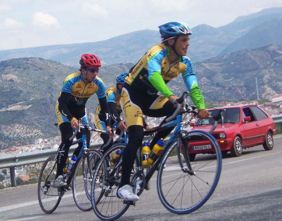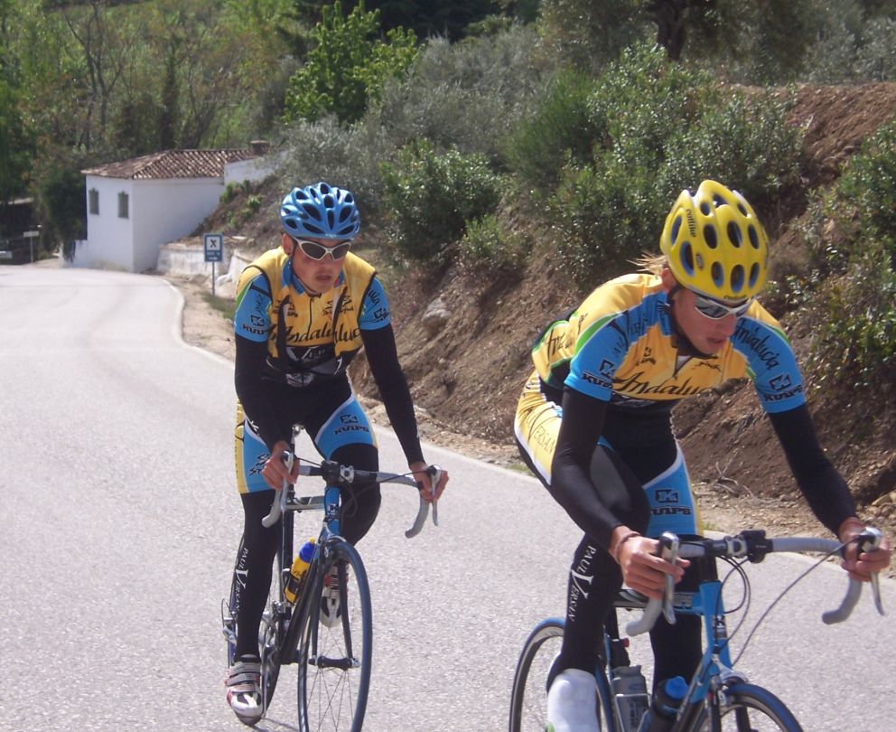 Antonio Oliver y Cecilio subiendo los Villares, camino Valdepeñas de Jaen. Bajando estaba el Giro a la Pandera con la puerta cerrada.