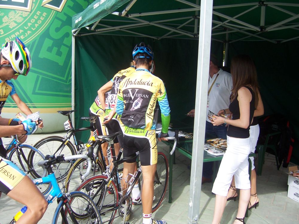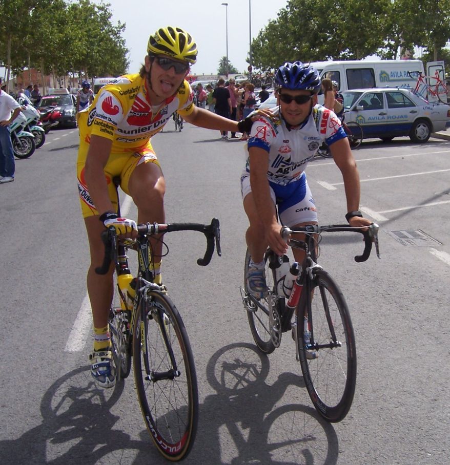Vi un cortecillo que se hizo y ya hice mi primera arrancada para pillarles, de ahí arranqué un poco a ver, saqué unos metros y me pare, no habia mucho gas y aqui se iba muy rapido, arrancaba todo el mundo. Me fui atras unos kms a recuperar y ya me metí en otro corte con el Rafa de 3 Molinos, le di un relevo de peseta, no podia tirar mas fuerte.. malo malo que iba, no iba acostumbrado a mi canondale..la del equipo esta en boxes, como vimos solo hizo medio Iguanzo.