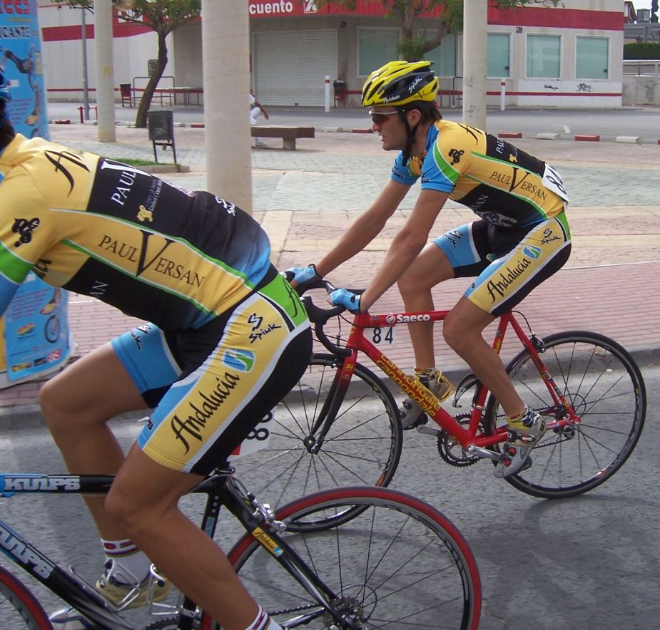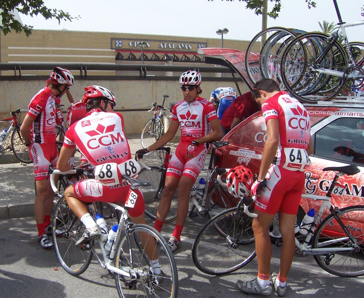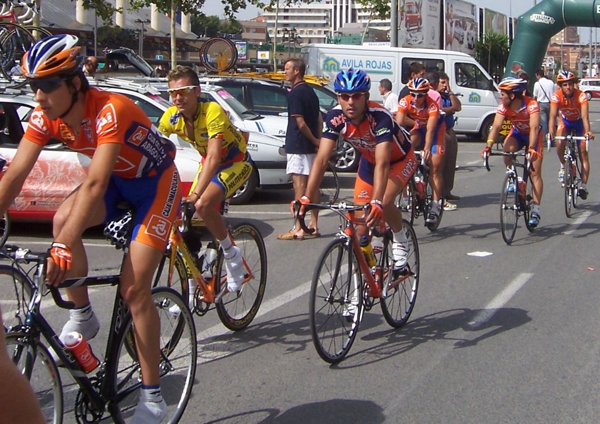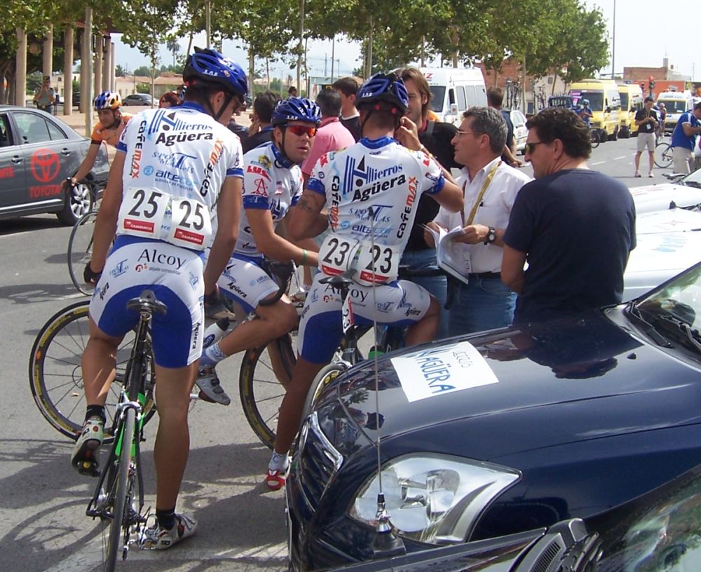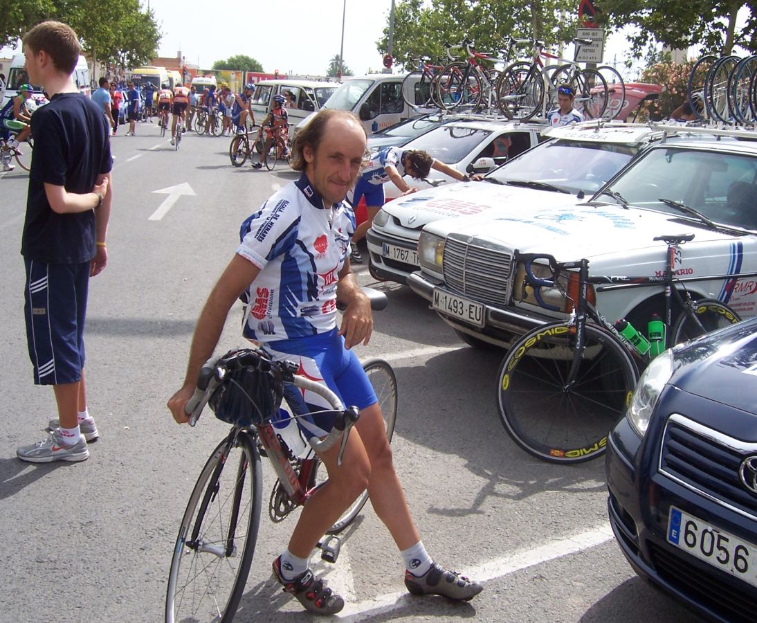 Después de la neutralizada por las calles de la capital Murciana se daba la salida, pelotón enfilado, yo iba ahi metido entre los 20 primeros sin atacar, se veia un Hierros por delante cabalgando, era el Cubano, poco después arrancó el Montenegro y se juntaron los dos, menudo par de bichos rodando en solitario por delante.