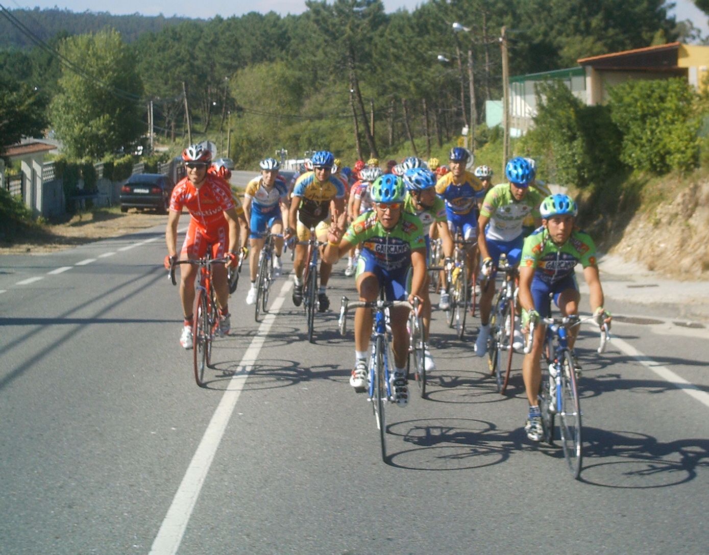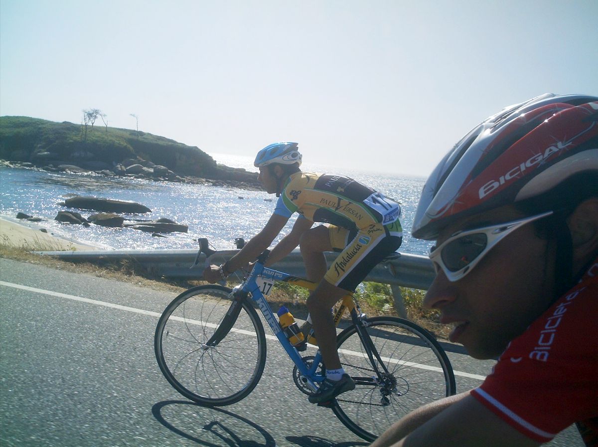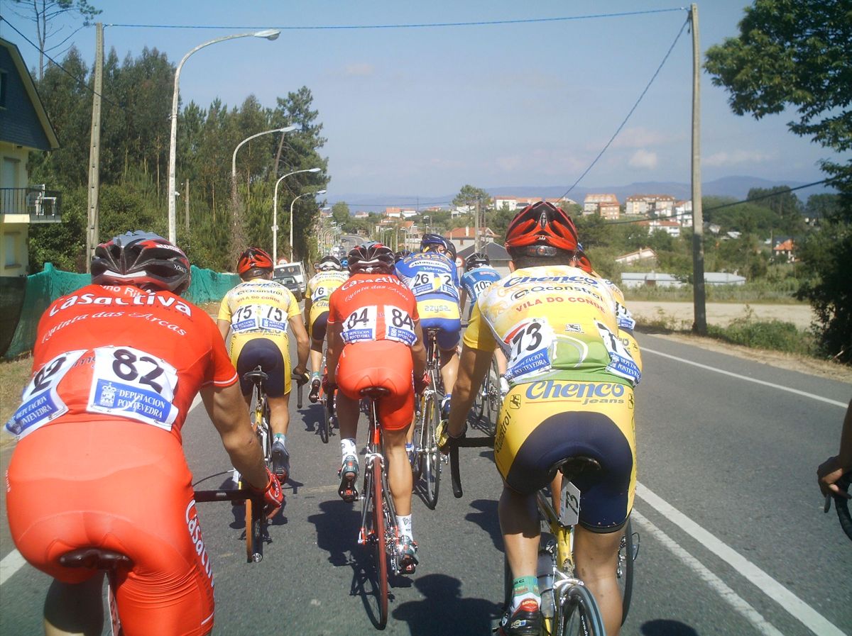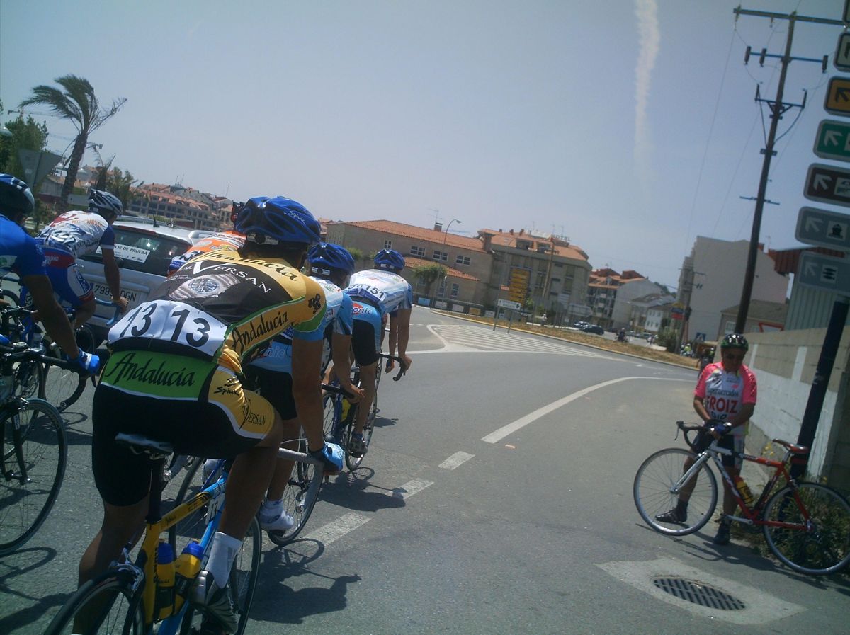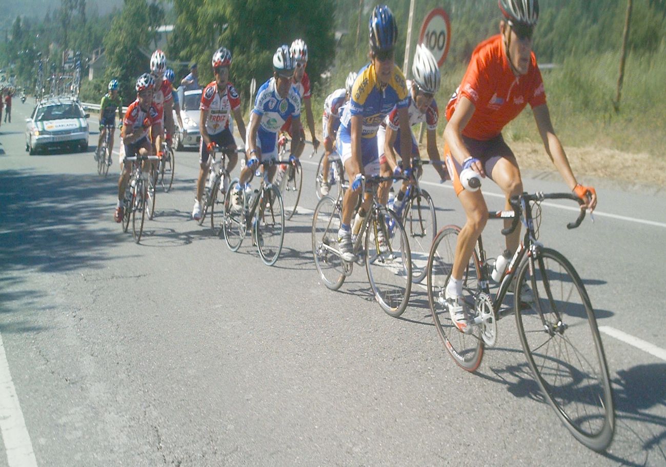 Iba en una grupeta que solo tirabamos 3 Frisonobles, un Cosaor y yo, asi que en un repecho apretaron, nos fuimos los que tirabamos y los demas ahi se quedaron, resultado, los que se quedaron fuera de control y nosotros nos salvamos... Pillamos otra grupeta, la buena , la que se salvaba, subimos el puerto final , que era durisimo y el Cosaor se paro a beber agua y espero a la grupeta del fuera de control, pobrecillo, estaba en el tren bueno y lo perdio.