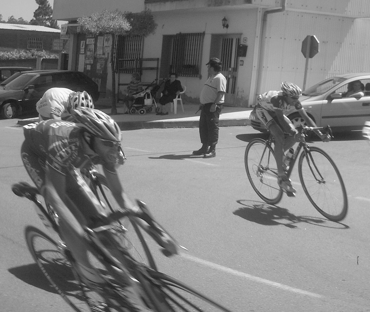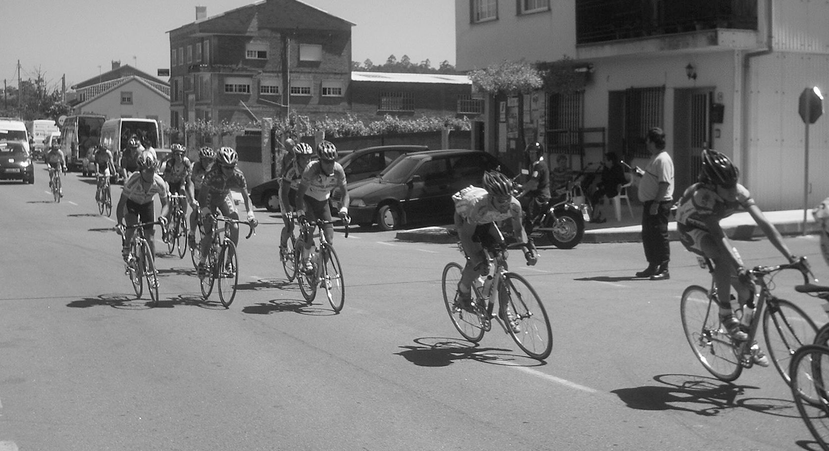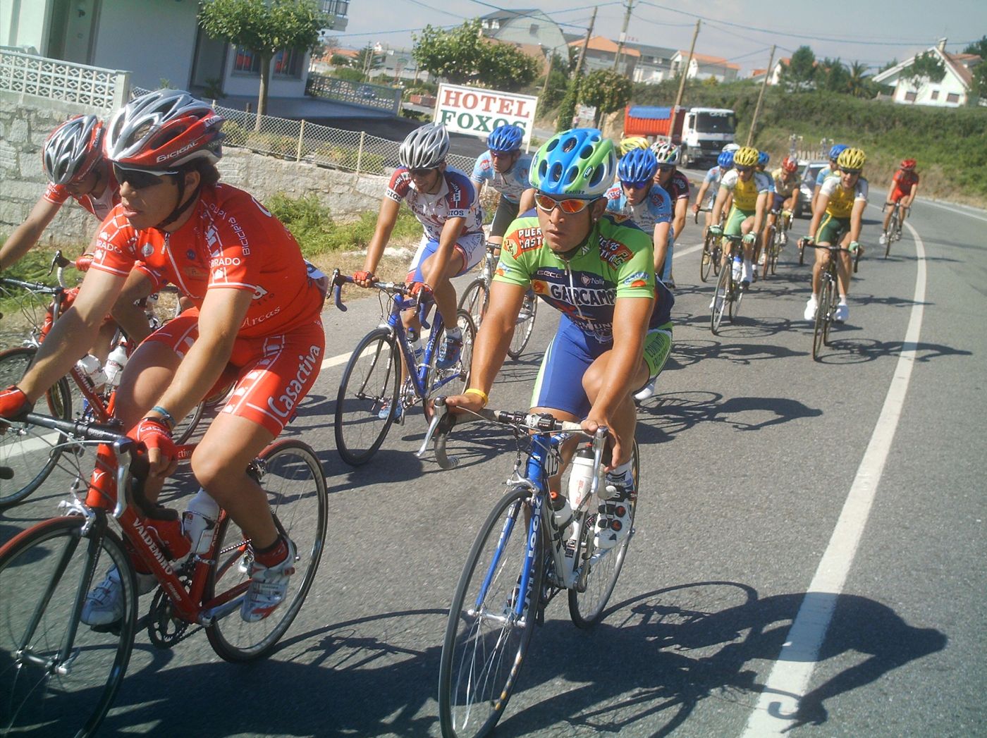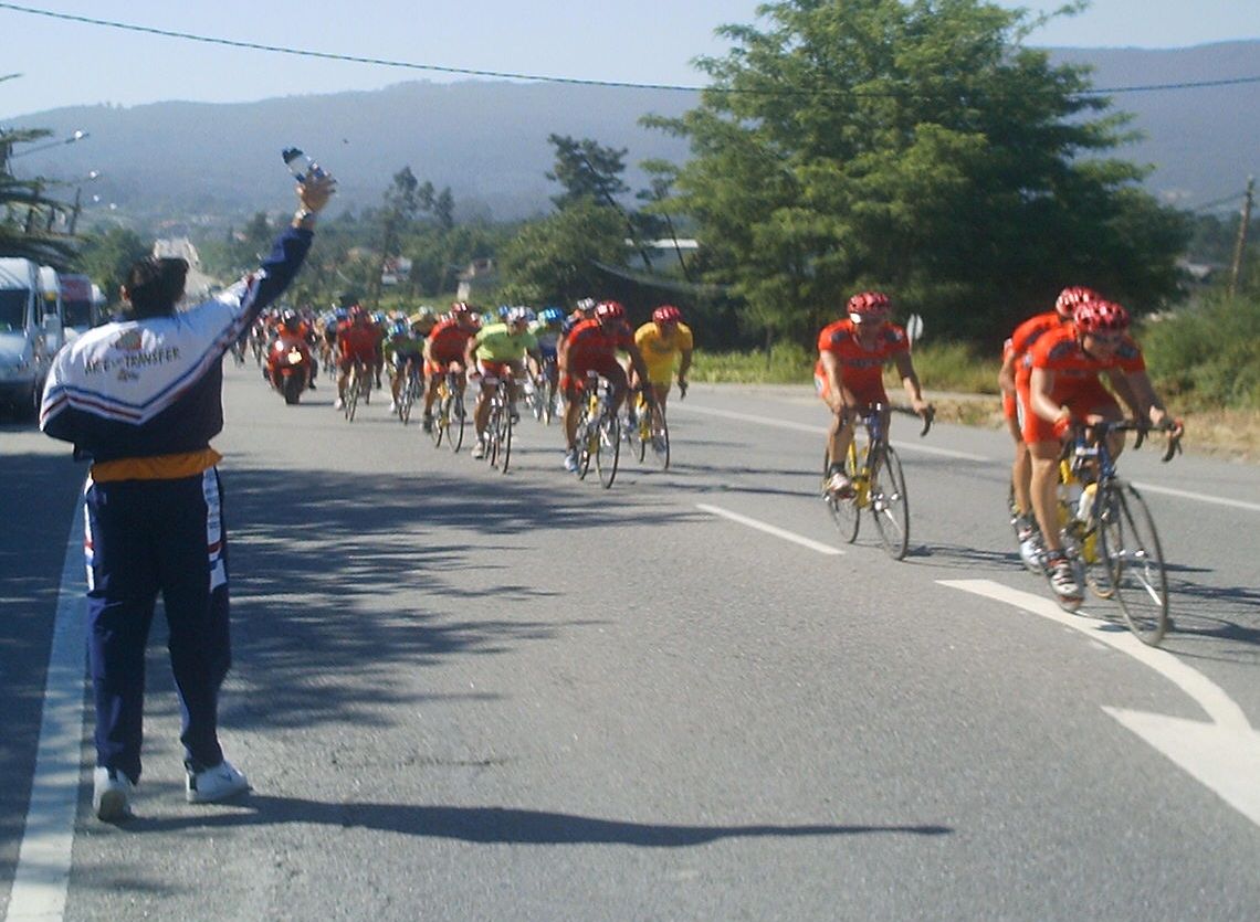 Iba en una grupeta que solo tirabamos 3 Frisonobles, un Cosaor y yo, asi que en un repecho apretaron, nos fuimos los que tirabamos y los demas ahi se quedaron, resultado, los que se quedaron fuera de control y nosotros nos salvamos... Pillamos otra grupeta, la buena , la que se salvaba, subimos el puerto final , que era durisimo y el Cosaor se paro a beber agua y espero a la grupeta del fuera de control, pobrecillo, estaba en el tren bueno y lo perdio.