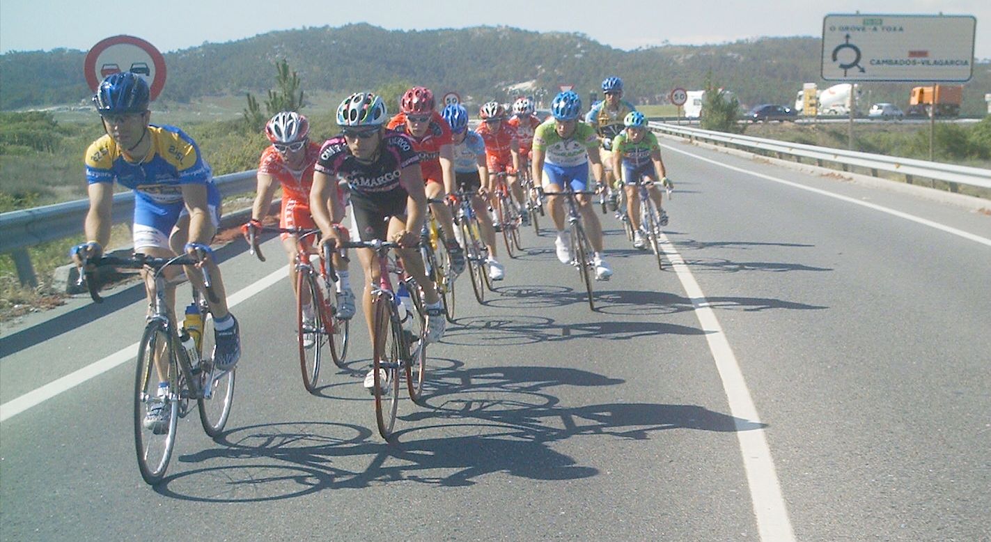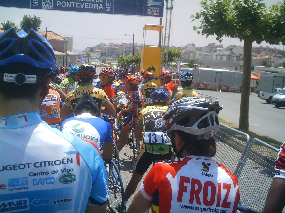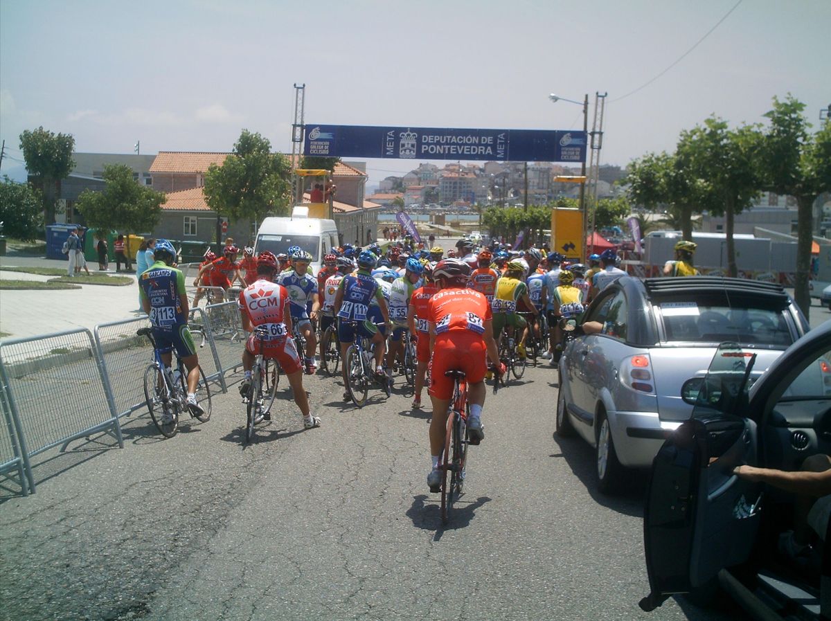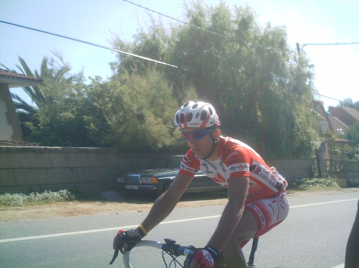 El saque de honor de la Volta a Salnes correspondió a Diegoweb, arranqué de salida por el bien de la vuelta, para que no bajara la media , que sino... se vinieron Chemina, Abel, Dani Dominguez. abrimos hueco pero los Froiz apretaron por detras y nos pillaron, lo intenté mas veces pero empeze a tener malas sensaciones., habia estado resfriado y no iba nada bien, asi que a rueda y jodido, llegamos al primer puerto , con rampas del 10% y me quede por un metro, pero enganche despues de la bajada... la cosa iba ya jodida jodida., en el siguiente puerto ya me abri, plante un seto a 1 km de coronar y ya no pude engnachar, asi que grupeta turistica hasta meta, gano Guti del Paul Versan.