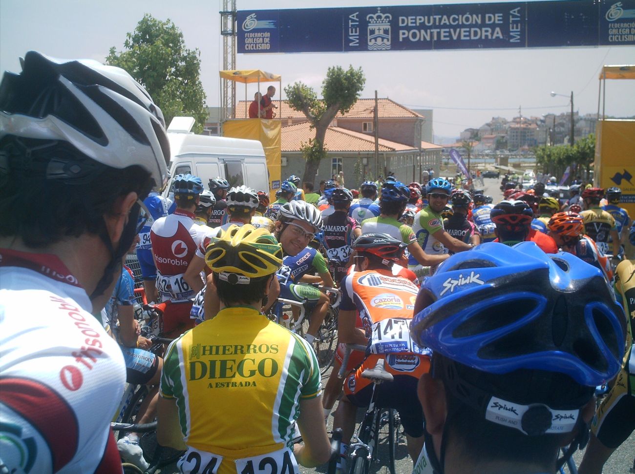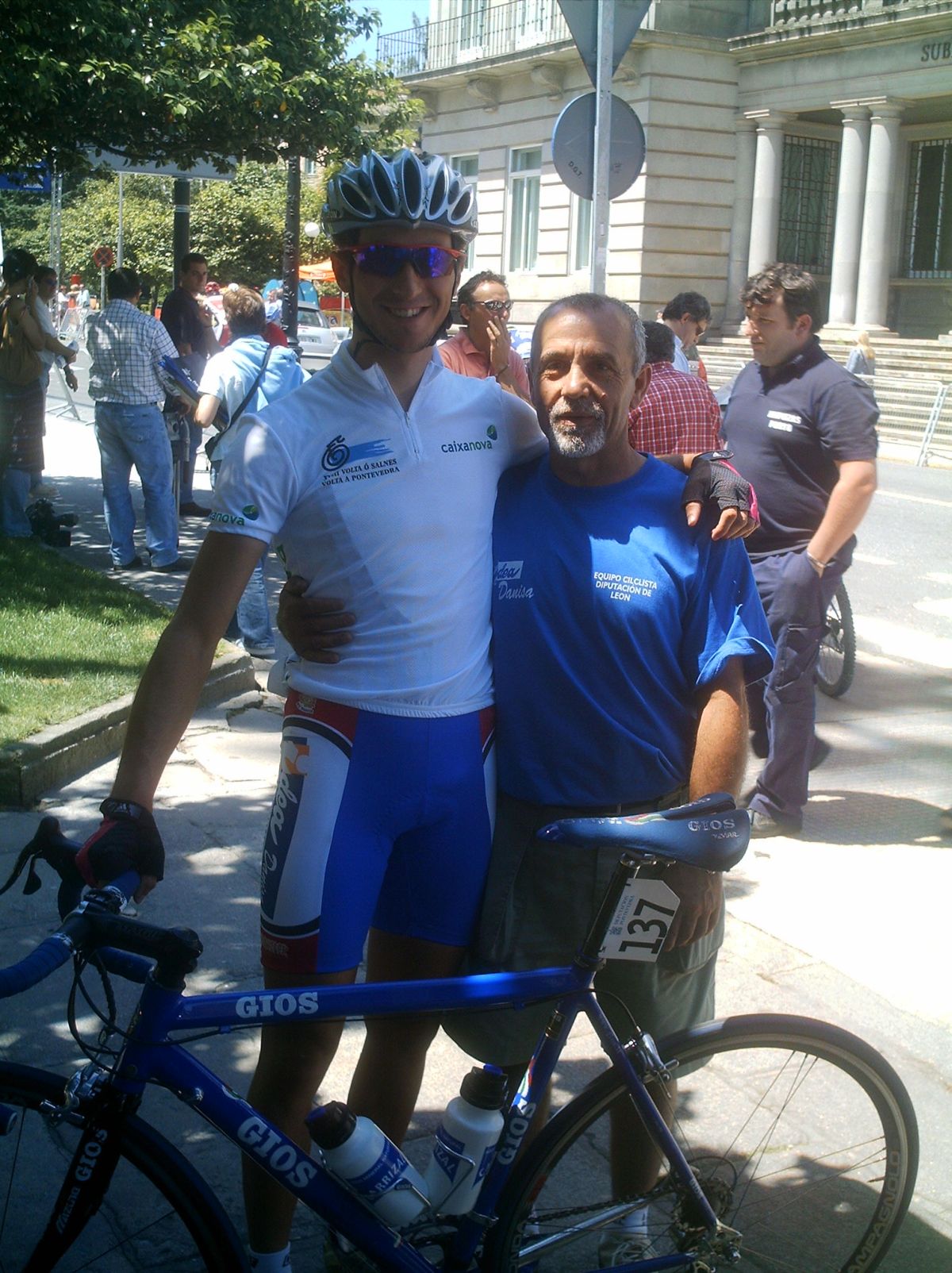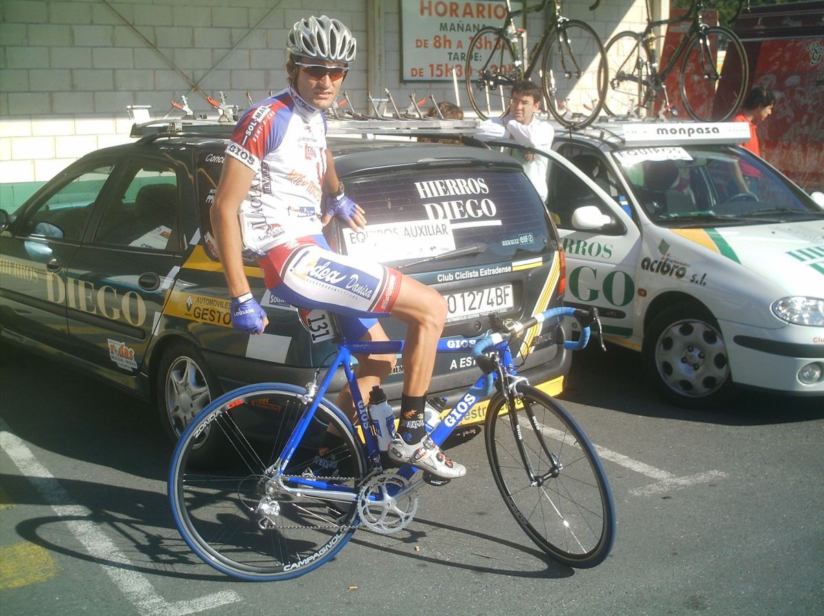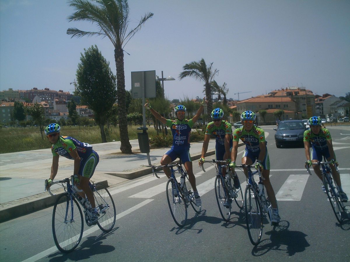 El saque de honor de la Volta a Salnes correspondió a Diegoweb, arranqué de salida por el bien de la vuelta, para que no bajara la media , que sino... se vinieron Chemina, Abel, Dani Dominguez. abrimos hueco pero los Froiz apretaron por detras y nos pillaron, lo intenté mas veces pero empeze a tener malas sensaciones., habia estado resfriado y no iba nada bien, asi que a rueda y jodido, llegamos al primer puerto , con rampas del 10% y me quede por un metro, pero enganche despues de la bajada... la cosa iba ya jodida jodida., en el siguiente puerto ya me abri, plante un seto a 1 km de coronar y ya no pude engnachar, asi que grupeta turistica hasta meta, gano Guti del Paul Versan.