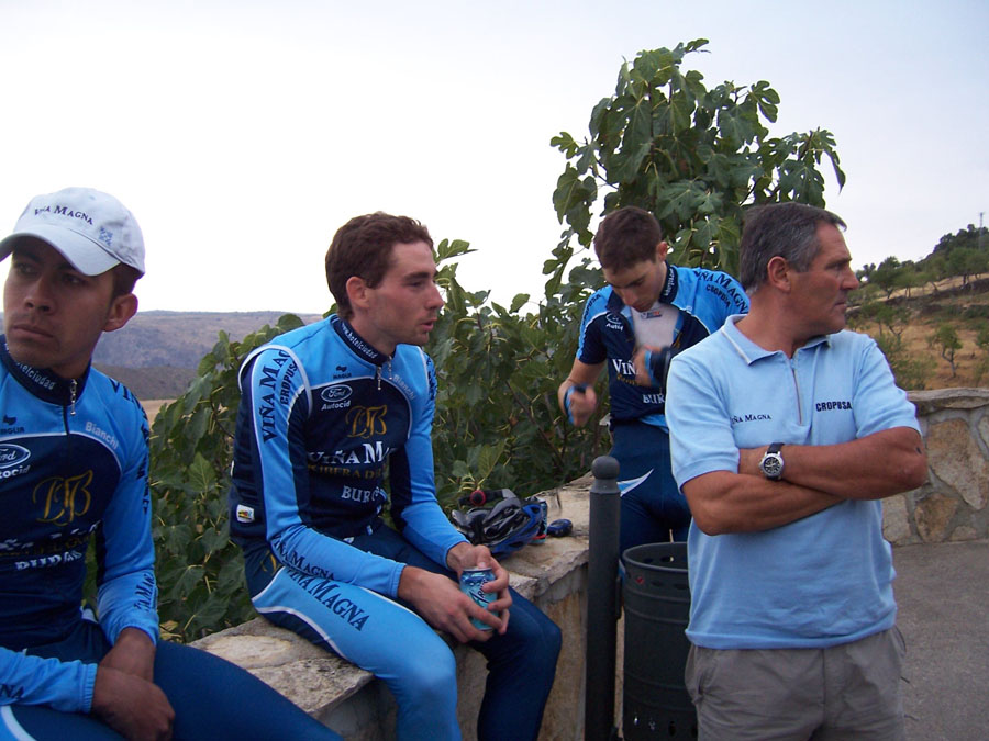 Teniamos que tirar desde salida con los Alfus y algunos Cai, asi que estuvimos tirando a marcheta hasta que arrancaban los Cropusa y teniamos que tirar a mil por hora, eso era jodido, a bloque a bloque hasta que paraban y otra vez a tirar a ritmo, era un desgaste importante. Menos mal que al final sopló de costado y asi la gente que va a rueda tambien se jode, les cerramos cuneta y algunos hicieron grupeta, entramos en los ultimos 20 kms el POl, Abel, Elorriaga, Gabriel, Cobo y yo metiendo cuneta a toda ostia para pìllar la escapada donde iba Tendero, pero cogimos a todos menos a Tendero y un Angel Mir, que llegaron, a 15 kms de meta nos quitamos de tirar, que ya pasaban los Garcamps, el final en bajada, una mierda, yo me meti el ultimo del sprint sin perder tiempo, no queria arriesgarme.
