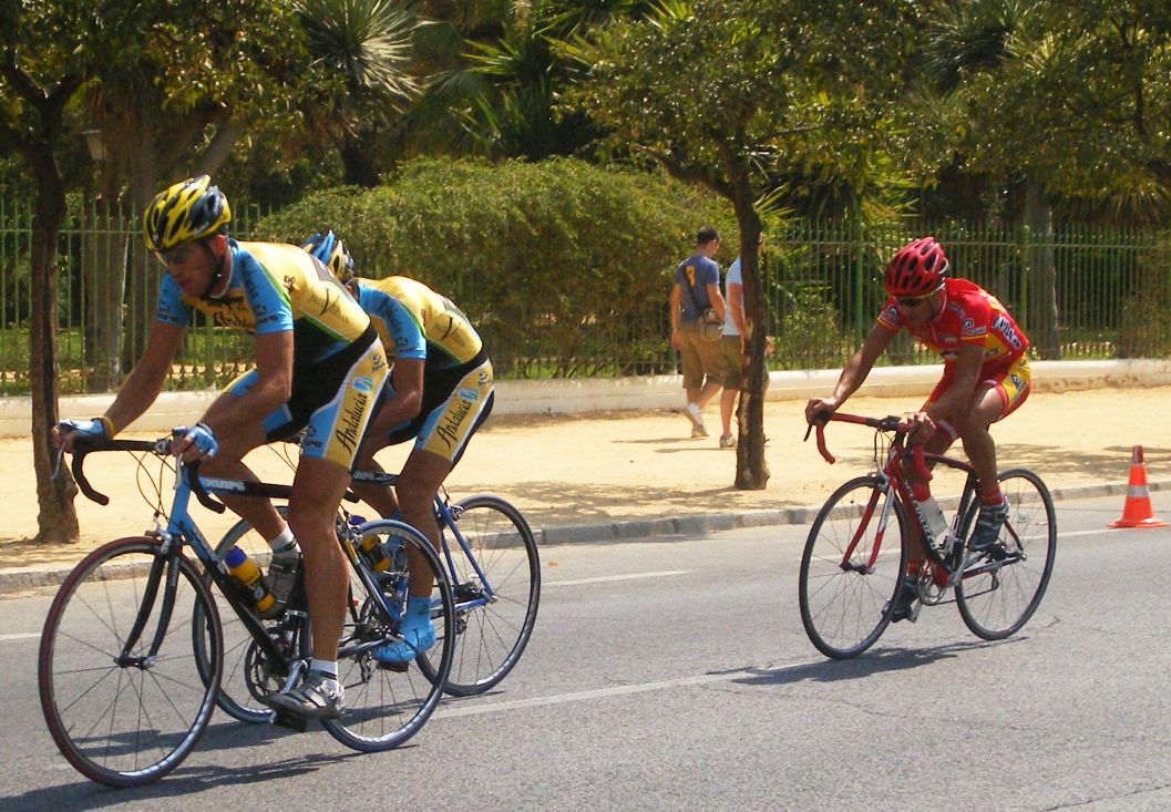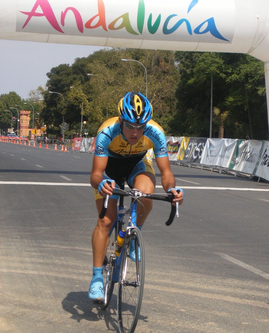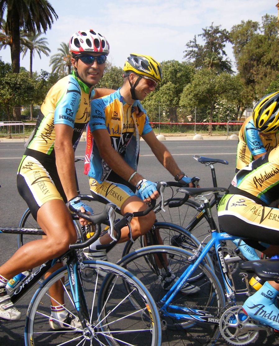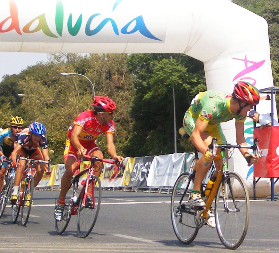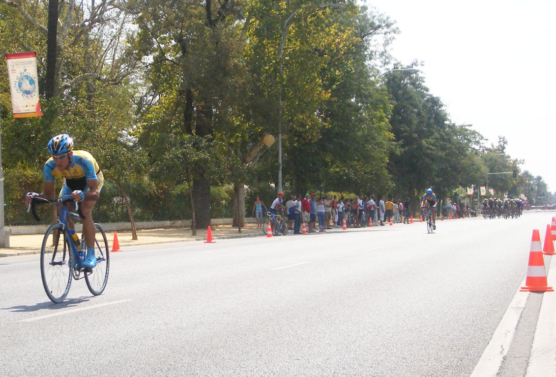 25 vueltas son 50 esprines, pero estos son muy comodos al ser el circuito plano, lo malo que el circuito es muy corto, sales de una curva y cuando te das cuenta ya estas parando para tomar otra curva. Después de muchos intentos se hizo la escapada buena, yo sali mas bien a pocos, estaba muy cansado del esfuerzo del dia anterior en Bollullos, la escapada buena eran tres Andalucia, Rosendo, JOse Luis Roldán y Jose Moreno el Churrianero, un Soctec, Estrada, y un Avila rojas, Luisillo.