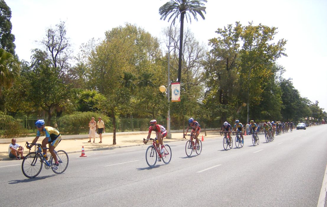 Tradicional Circuito de las Palmeras que cierra la temporada en Andalucia, ir y venir 25 veces en un circuito totalmente llano en la avenida que va del estadio del Betis a la Torre del Oro.