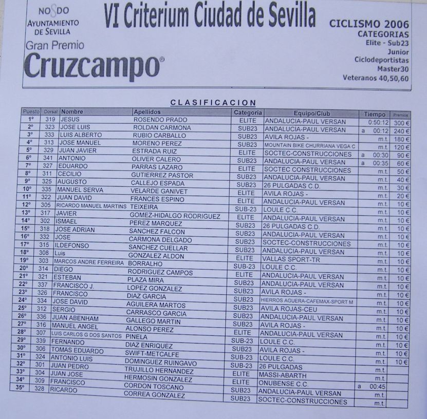 Rosendo llegó el solo sobrado, detrás Jose Luis Roldán, que también habia arrancado y pudo llegar segundo, tercero Luisillo, cuarto Churrianero y quinto Estrada, que tuvo que perseguir, el pelotón llego a 36 segundos y fue Antonio Oliver el que entraba primero, yo entré ahi sin meterme en el sprint (20º).