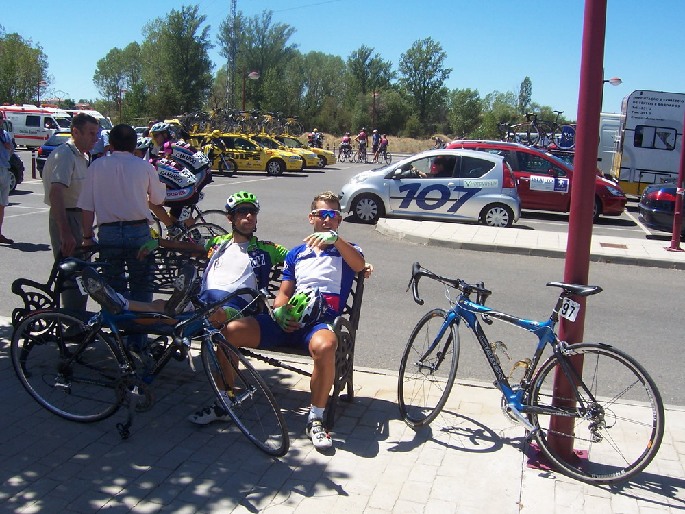 En la ultima etapa me meti en un corte subiendo los repechos de Fenar, ibamos 5 tios, pero pasando Matallana nos pilló un grupo de 20, se pusieron a tirar los Japos y alli abrimos hueco, estuvimos los 25 tios escapados hasta San Isidro, donde ya nos pillaron, pero la carrera venia rota rota por detras, total de 130 kms escapado en la etapa de fuga numerosa, increible los Japoneses como tiraban, como tiraron toda la vuelta, para nada por que la gano el Carras.