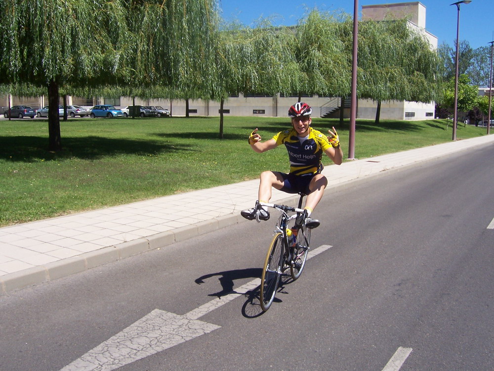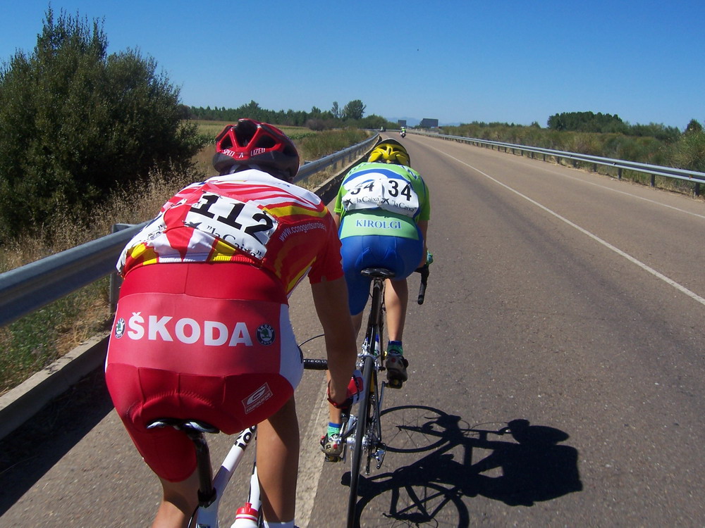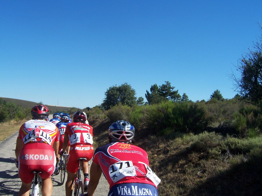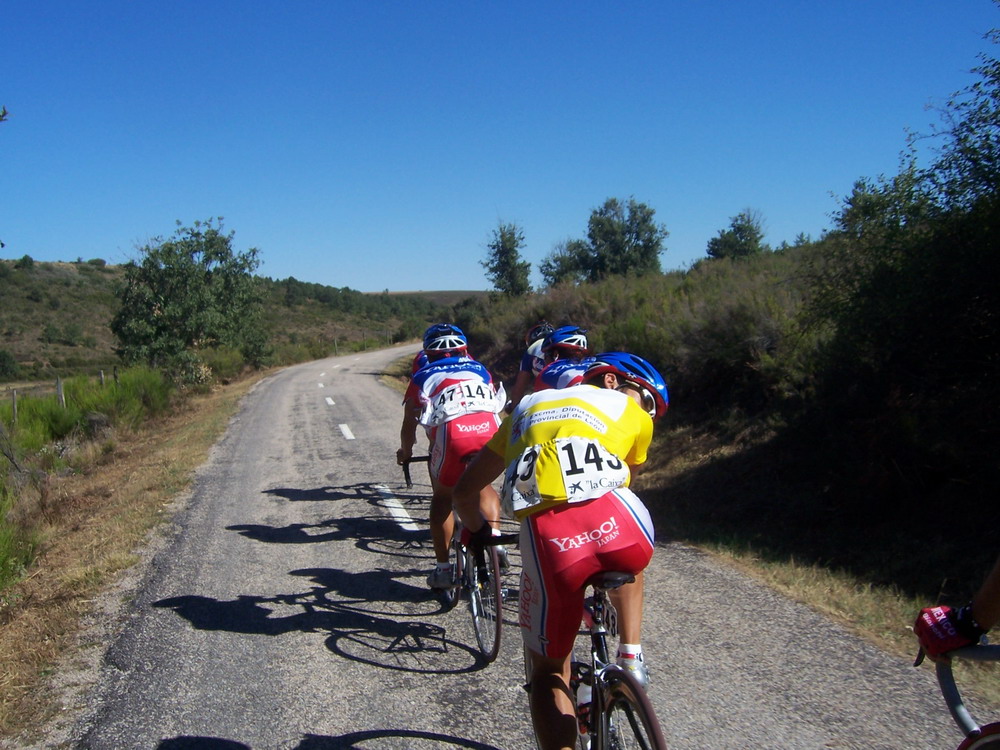 En la cuarta etapa se salió a bloque por las carreteras malas que conducian al Orbigo, yo iba a rueda alli hasta que pase un poco para alante, me lié a arrancar hasta que hize la buena, con un frances del Skoda y Uriarte del Bidelan.
