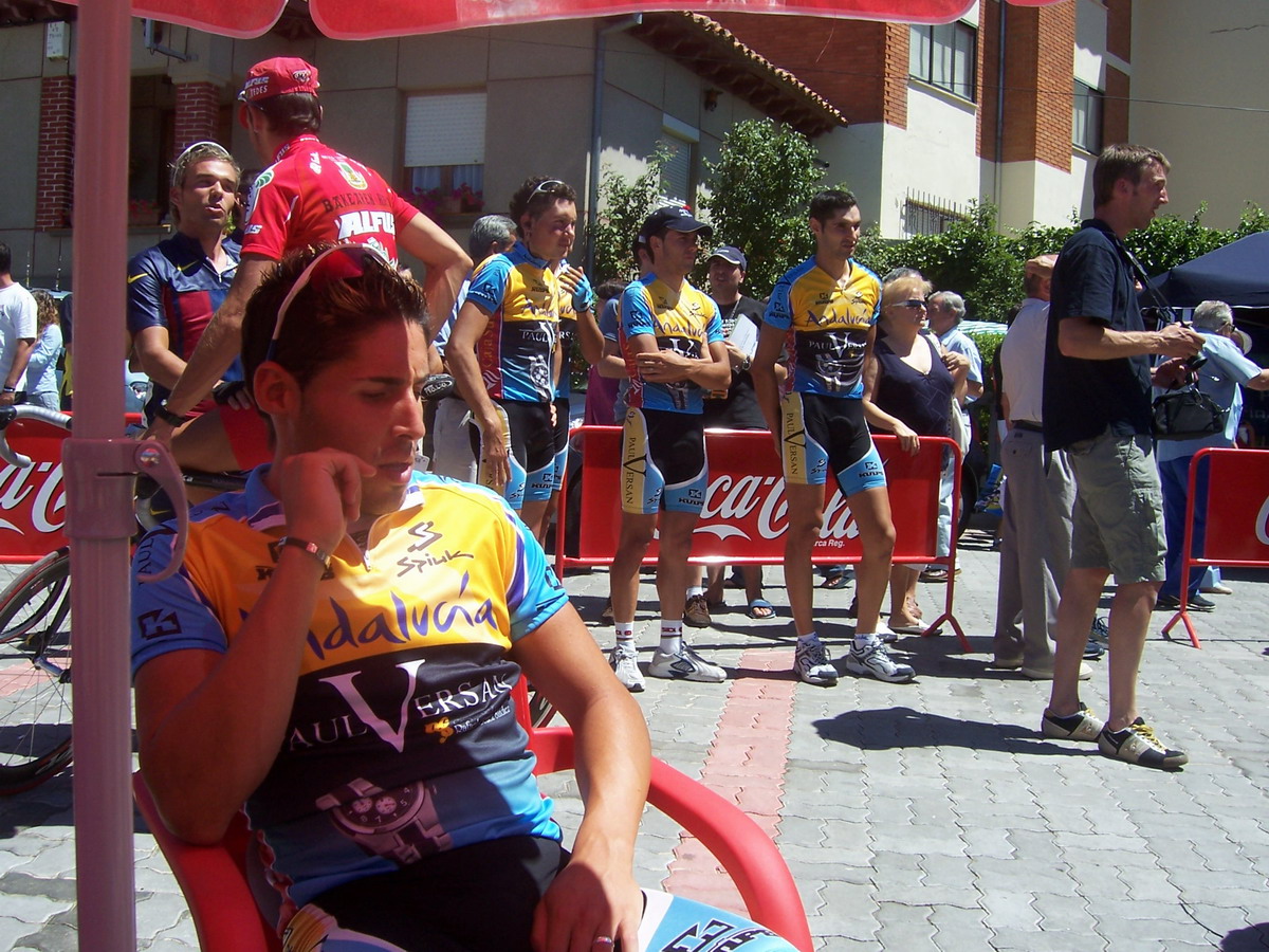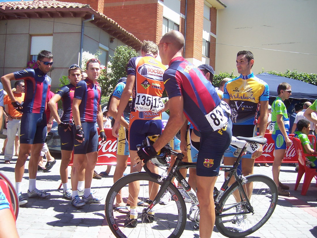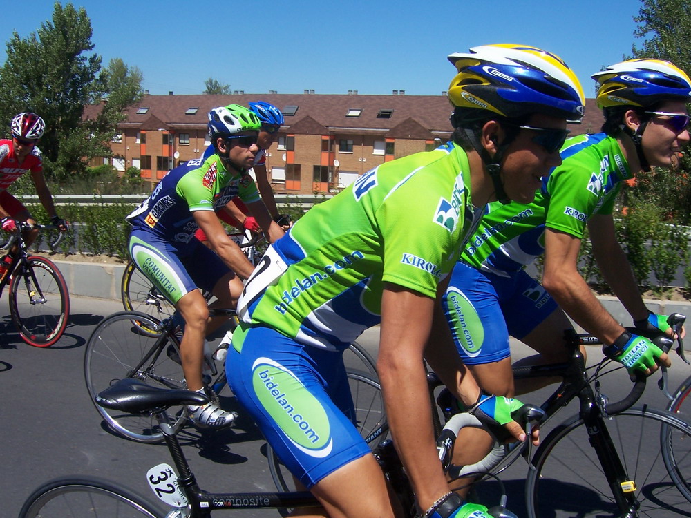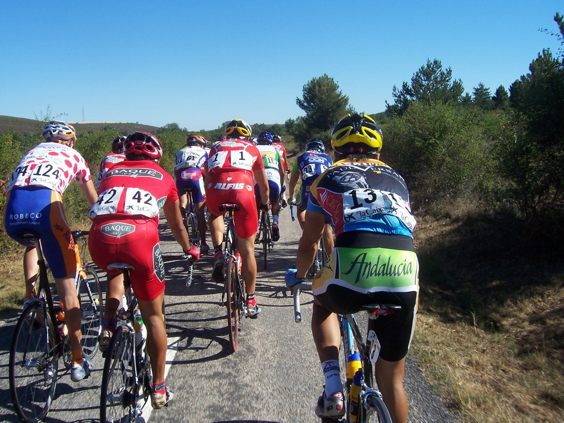 El Francés se iba escaqueando en el ultimo puerto, pensabamos que iba jodido, pero iba aprovechandose de nosotros para luego arrancarnos y dejarnos tiraos, pase primero el premio montaña tirando y en el siguiente repecho nos atacó el Francés, y a mi me dejo tirao, el Bidelan intento cogerle, al final nos cazó el peloton a todos y gano Pacheco el Sprint. Unos 90 kms escapados los tres solos contra el aire que no sirvieron.