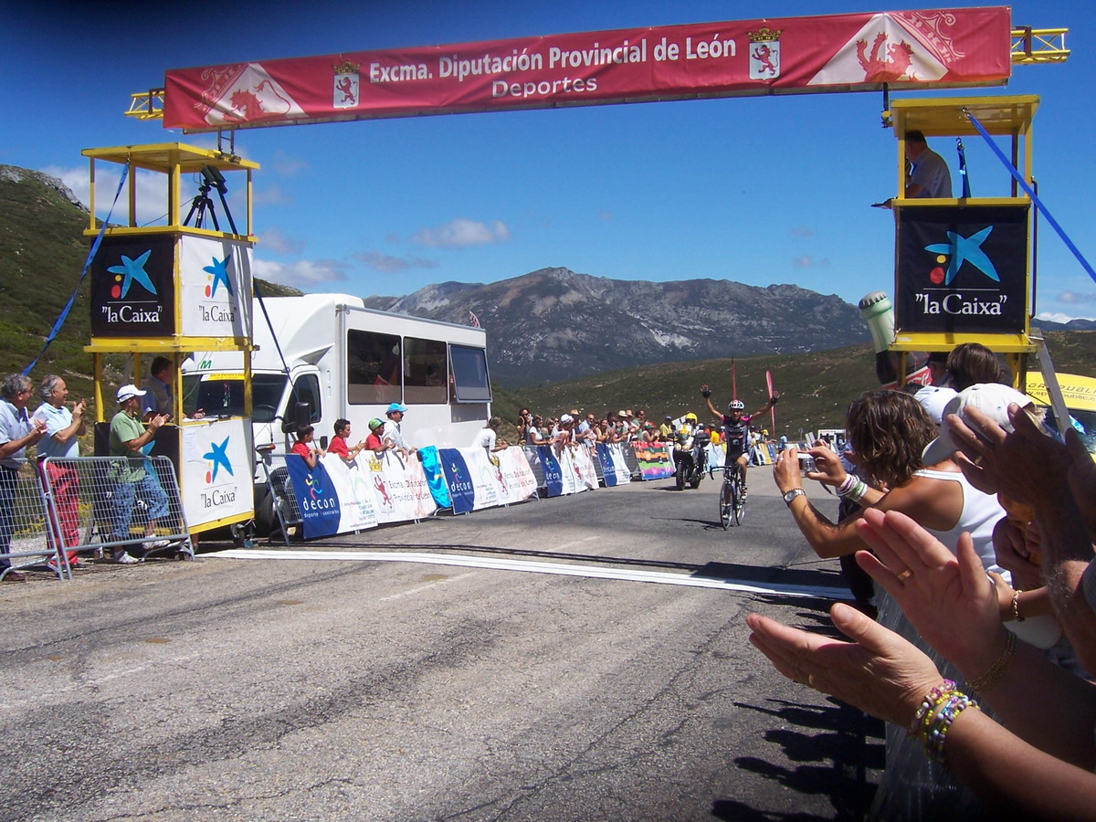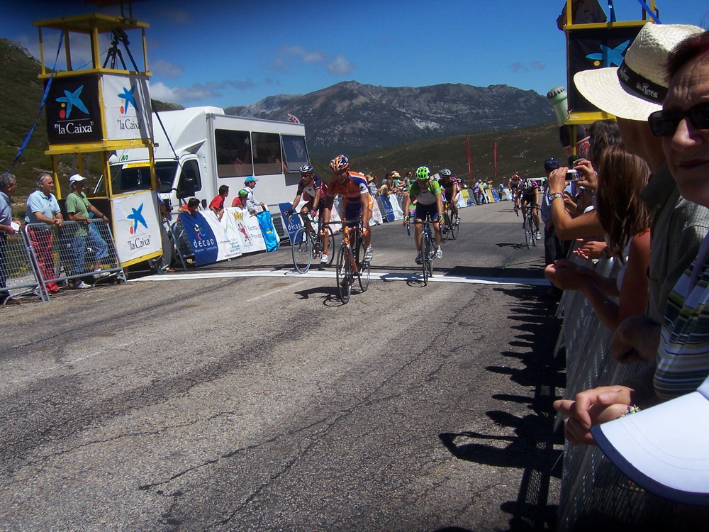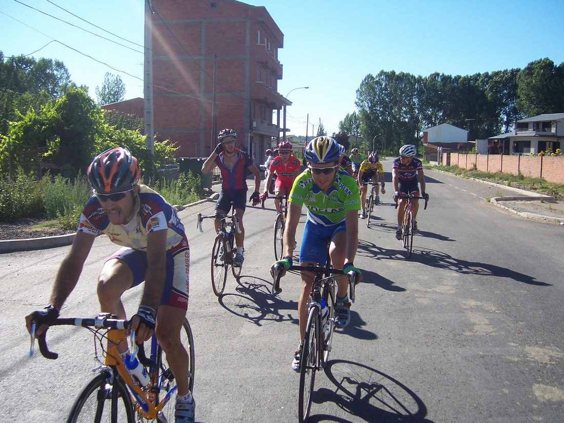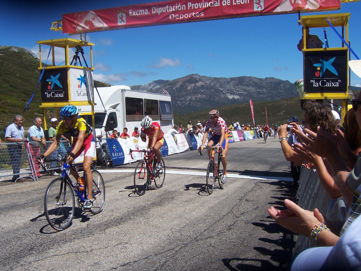 Ibamos los tres tirando a lo que podiamos, llegamos a la Meta Volante de La Bañeza, pase segundo, me gano Uriarte, empezamos a abrir mucho hueco, 3 minutos, llegamos al puerto de Astorga, yo iba tirando y pase primero.
