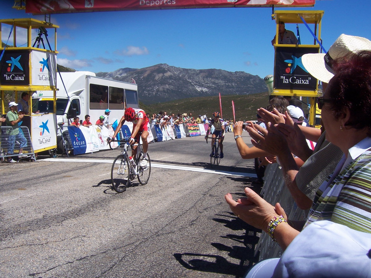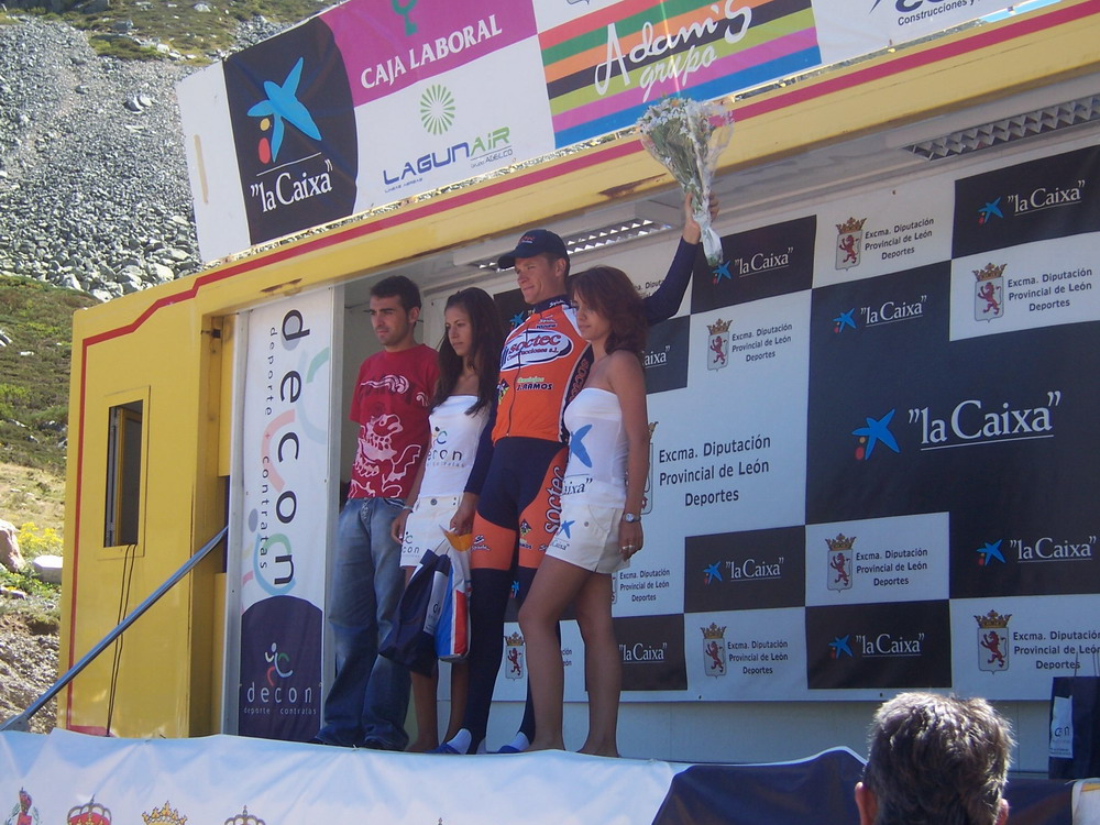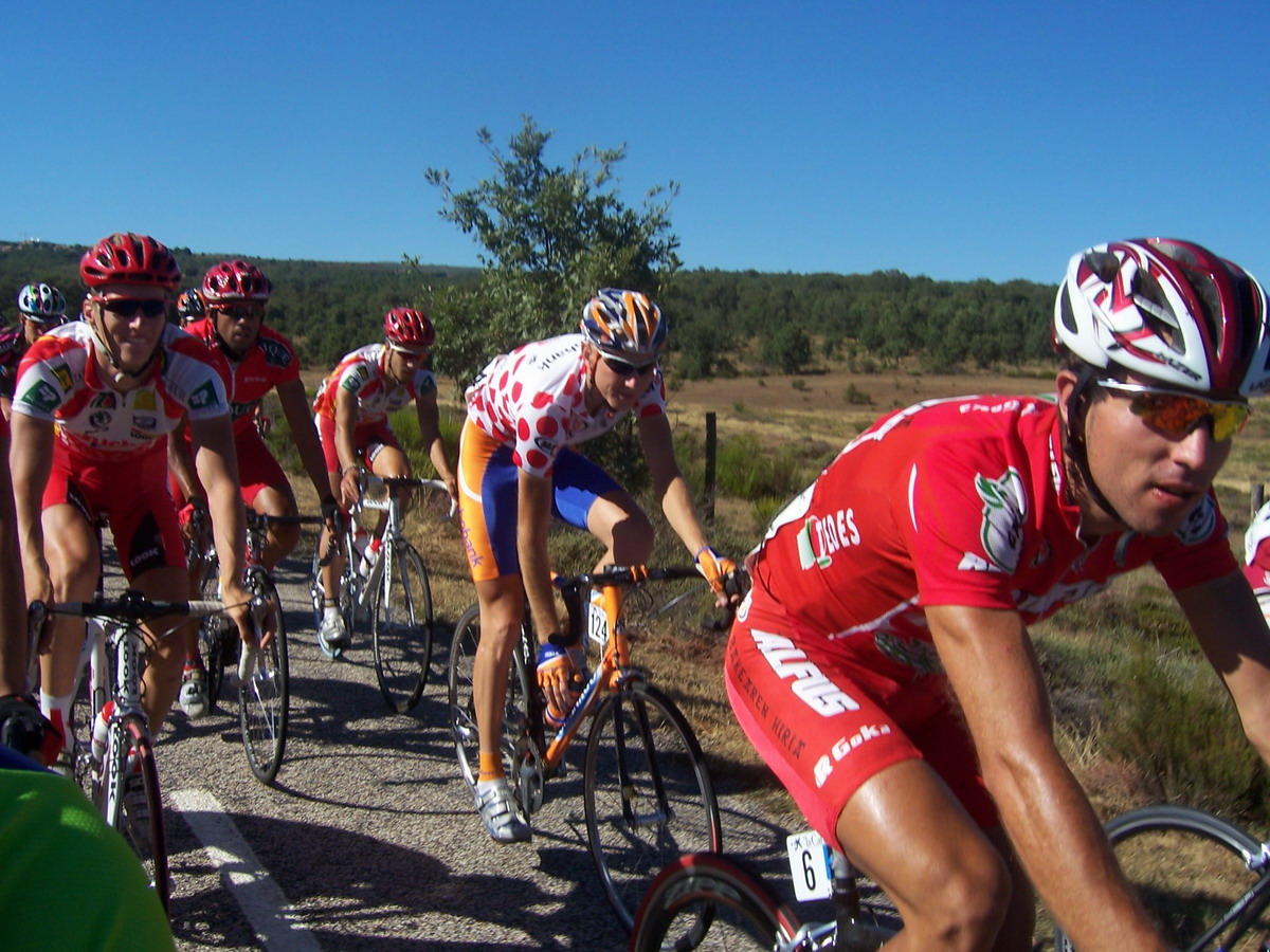 Ibamos los tres tirando a lo que podiamos, llegamos a la Meta Volante de La Bañeza, pase segundo, me gano Uriarte, empezamos a abrir mucho hueco, 3 minutos, llegamos al puerto de Astorga, yo iba tirando y pase primero.