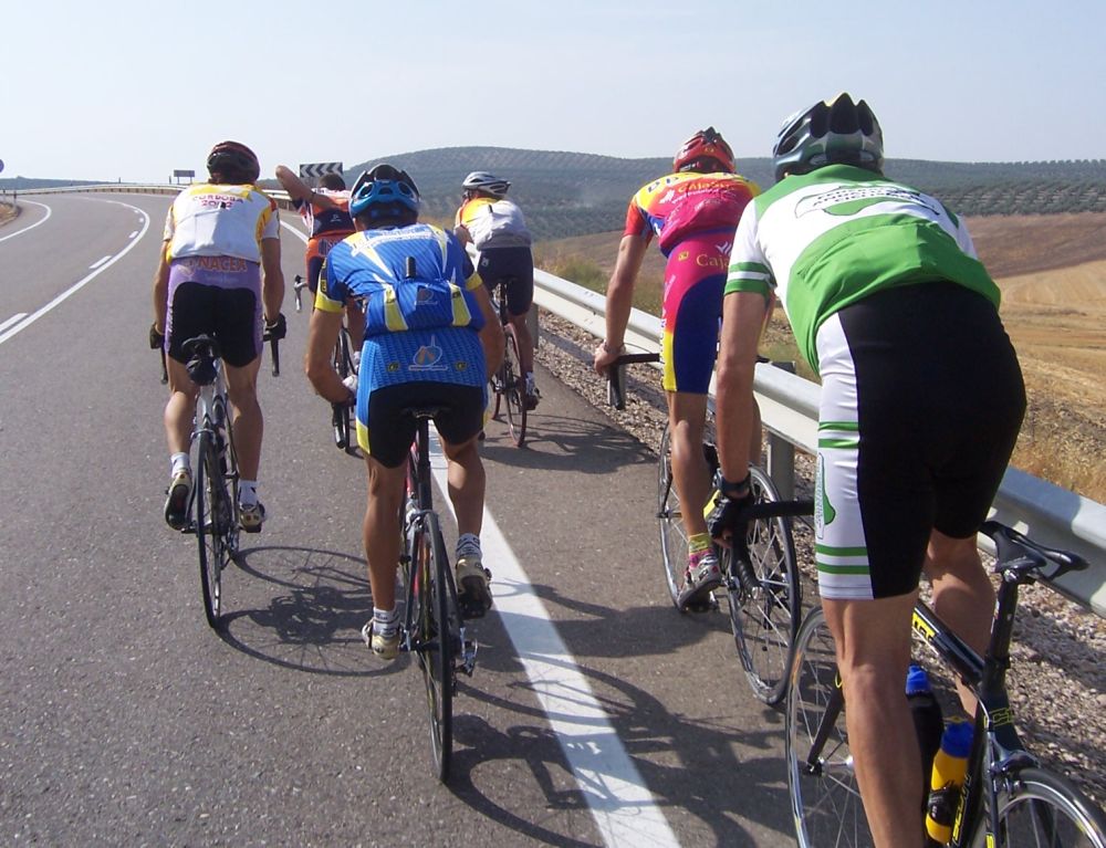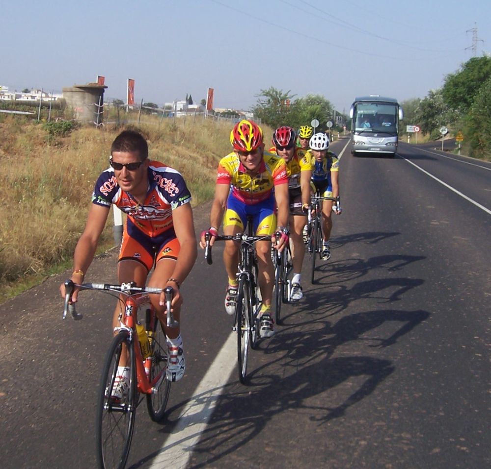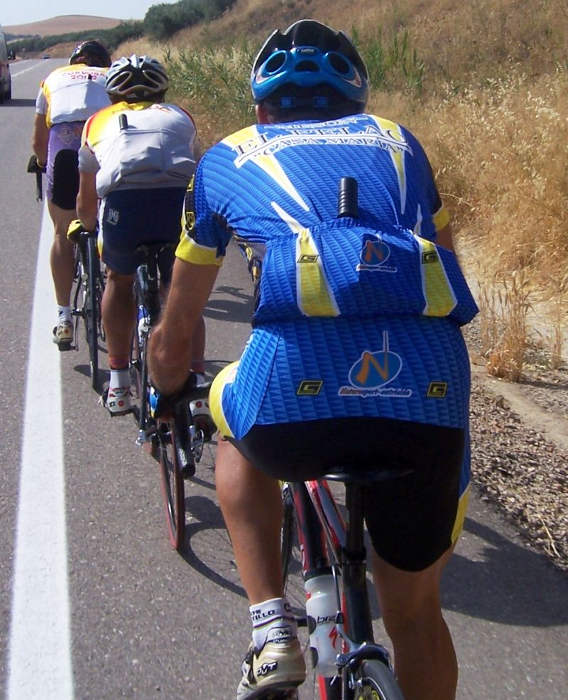 Jose David, el hombre que encabezó la grupeta del Campeón de España del Circuito Montillés. Detrás Juan Luque, se incorporó a la xarpa, eramos pocos pero de nivel, decia que llevaba 80 kms a 38 de media..