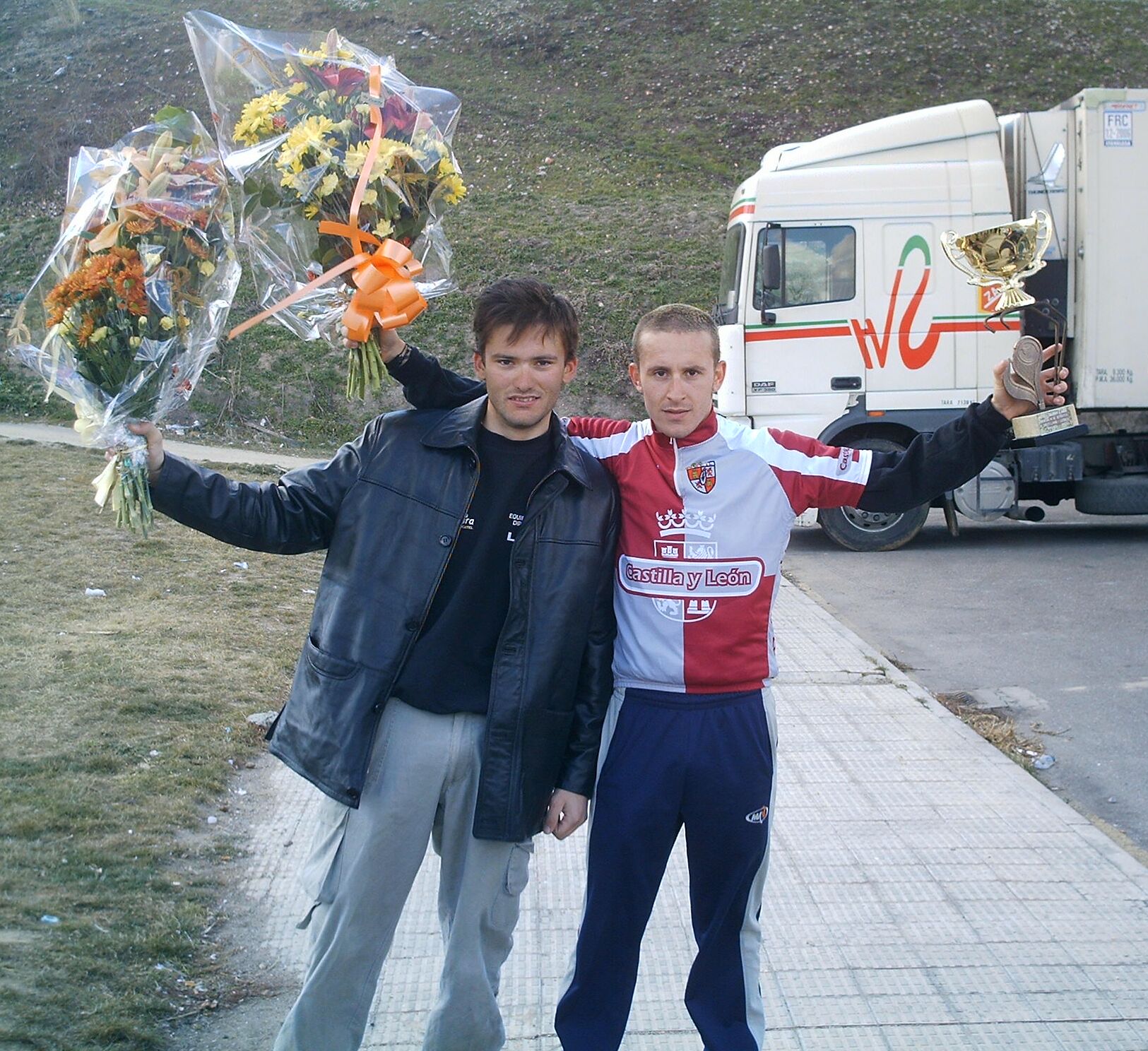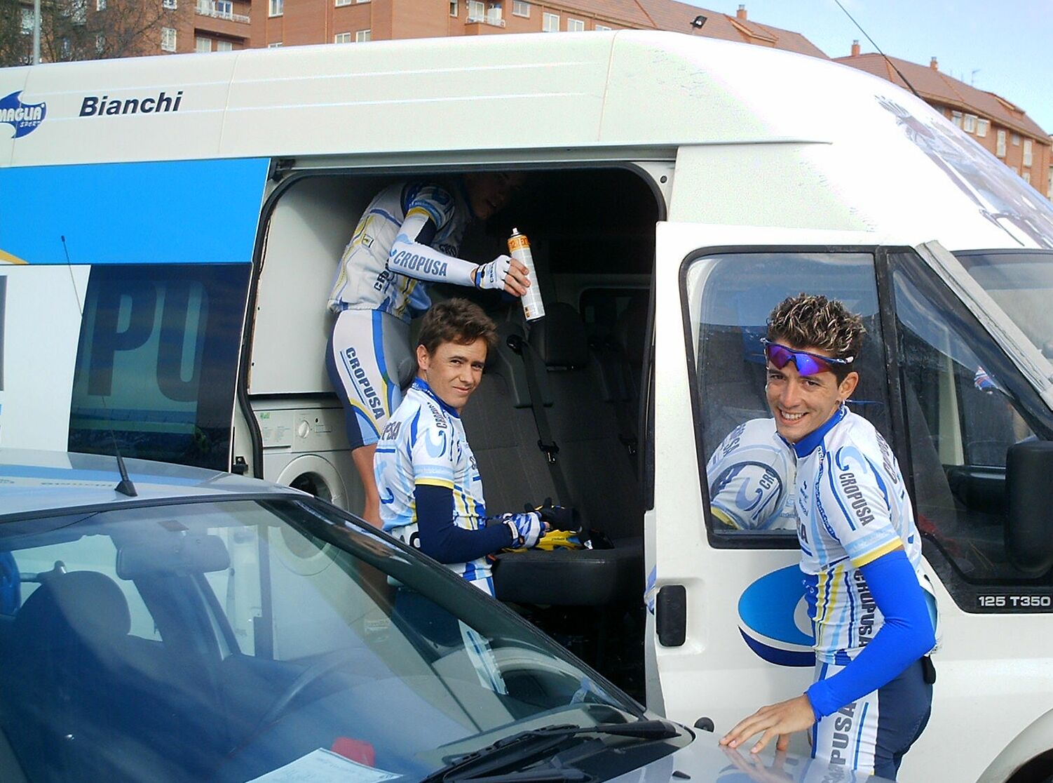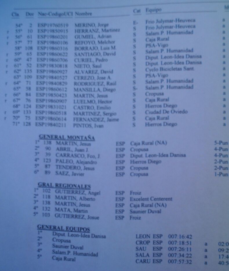 Bueno, bueno, despues de la paliza que llevaba encima y que llevaba uno alante me sirvio de excusa para quedarme a rueda. el tema es que bajando para Villalcampo engnachó otro grupo de 7 o 8 mas, donde iba mi compañero Lucas Ahedo. Subiendo Villalcampo cogimos a los escapados y entonces empezo la gente a soltar ostias por todos los lados, el unico que queria paz era el del Hierros Diego, que decia, joder, vamos a tirar, joder.