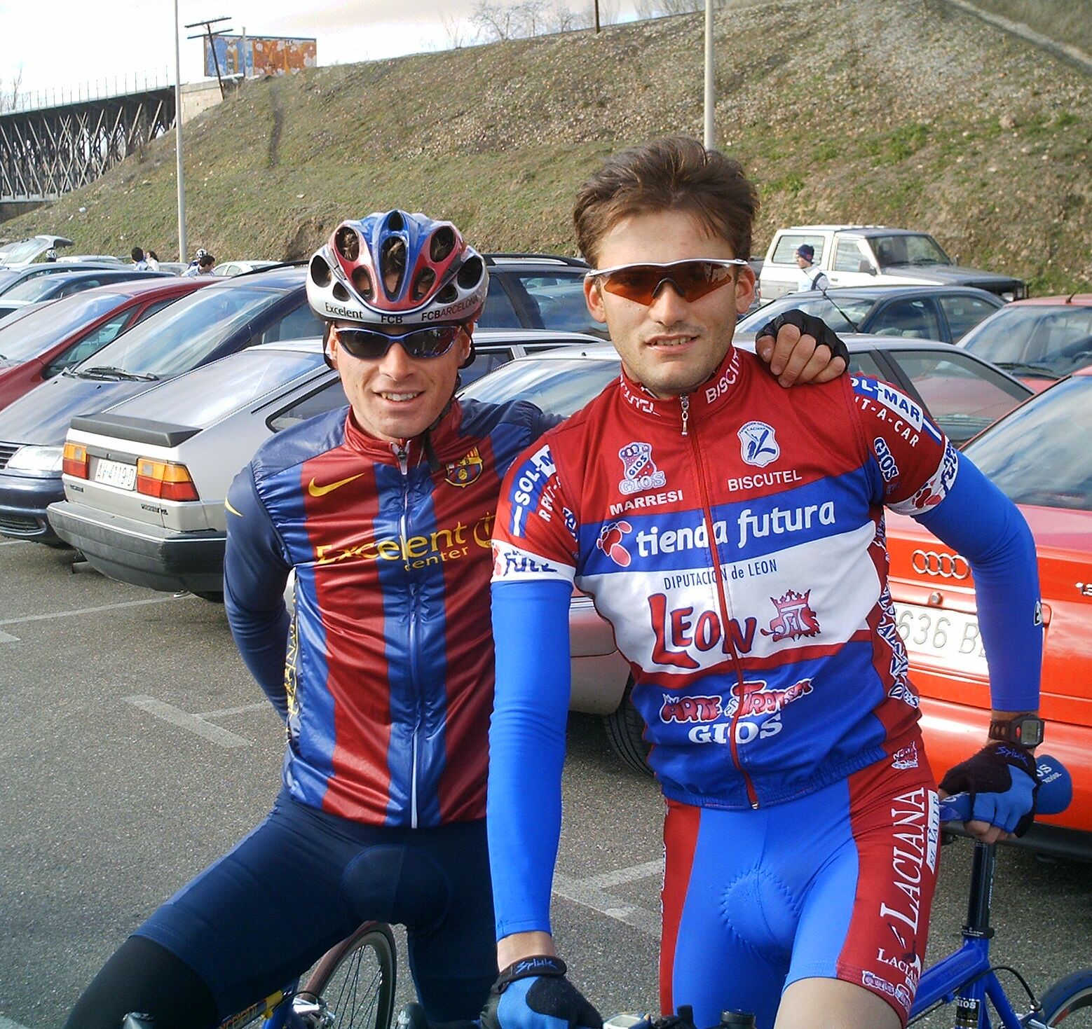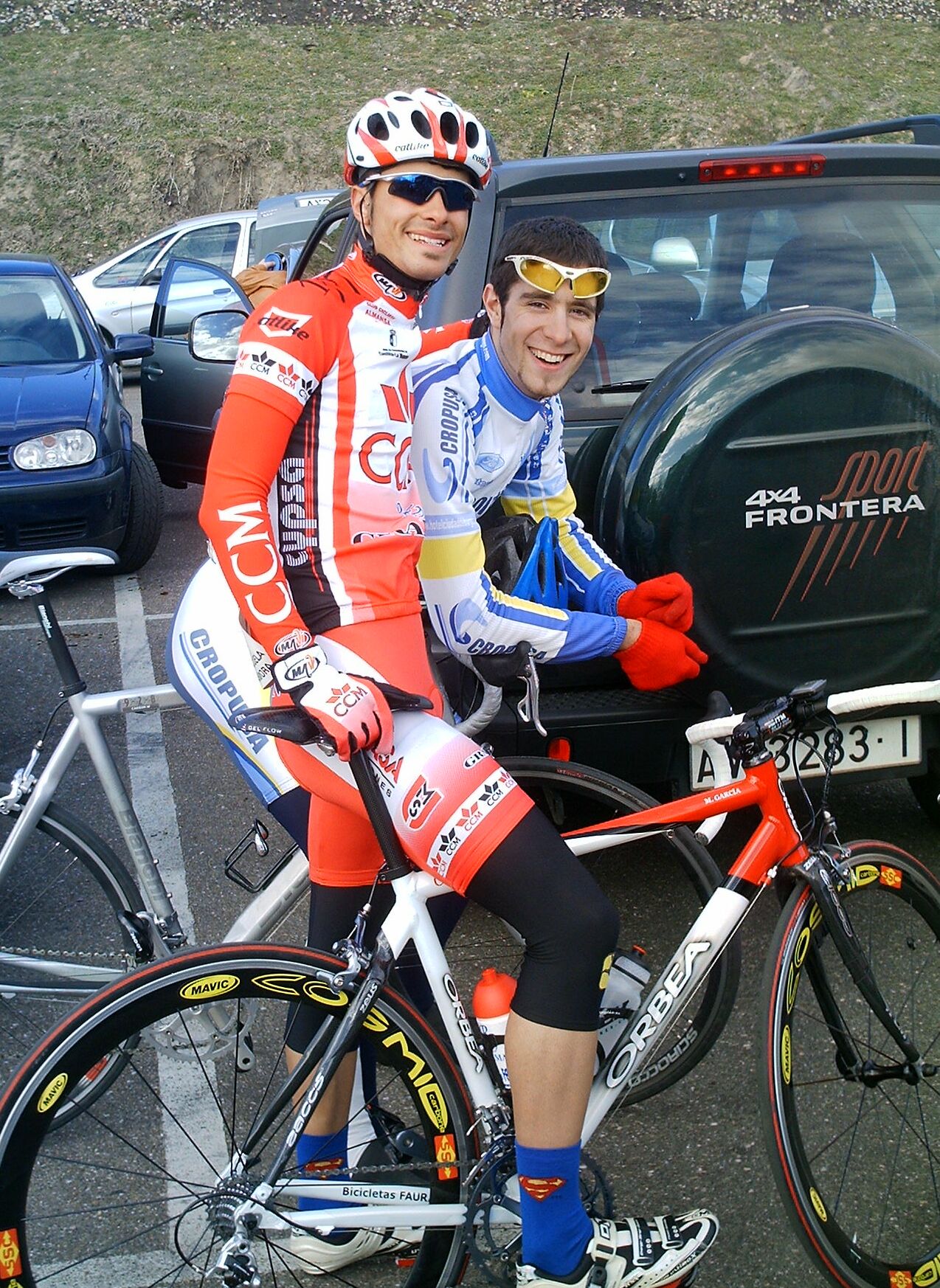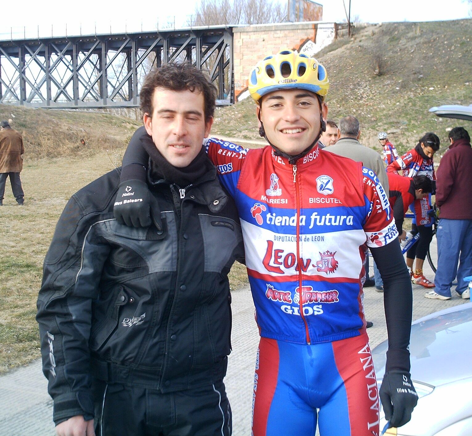 Acabe la tortuosa bajada con el mitico puente incluido y comenze la subida a Villadepera, pense que me iba a quedar clavado yo solo pero joder... iba a toda ostia subiendo recortando a los de alante hasta que el puerto se puso serio y se me acabo el gas, buff, no me acordaba que Villadepera era tan largo, aunque me acuerdo de la foto que tengo con cara de perro en el Iberdrola 2003 remando con Antonio ARenas y... Estuve cerca cerca de pillar a los de alante. unos 15 metros subiendo, pero coronamos y yo habia gastado mucha fuerza y 5 tios bajando pueden 5 veces mas que uno ,asi que se distanciaron, pero... vinieron mis salvadores, el Juve del Barcelona y un Superfroiz.