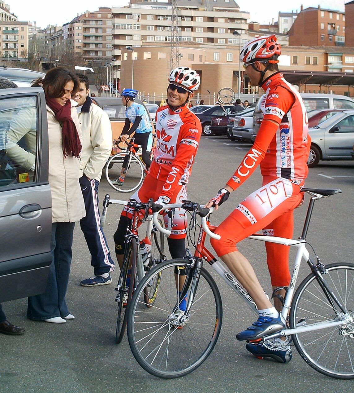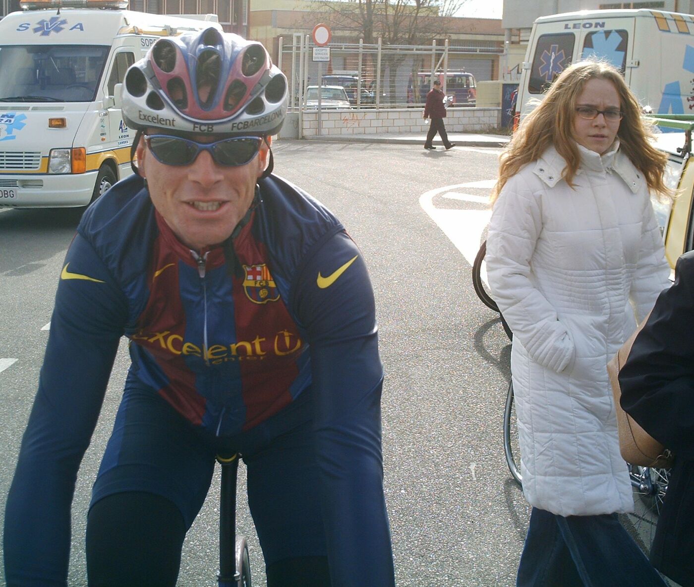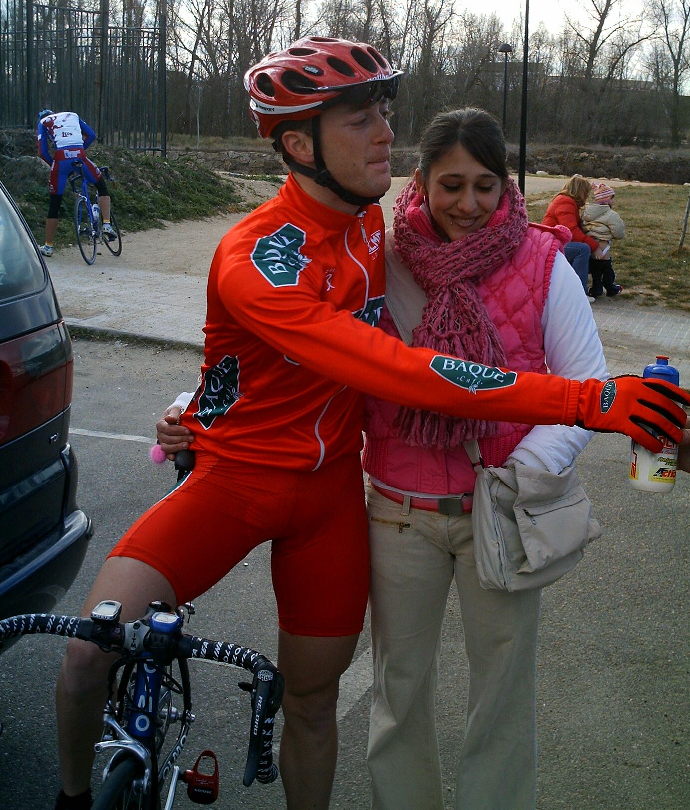 Acabe la tortuosa bajada con el mitico puente incluido y comenze la subida a Villadepera, pense que me iba a quedar clavado yo solo pero joder... iba a toda ostia subiendo recortando a los de alante hasta que el puerto se puso serio y se me acabo el gas, buff, no me acordaba que Villadepera era tan largo, aunque me acuerdo de la foto que tengo con cara de perro en el Iberdrola 2003 remando con Antonio ARenas y... Estuve cerca cerca de pillar a los de alante. unos 15 metros subiendo, pero coronamos y yo habia gastado mucha fuerza y 5 tios bajando pueden 5 veces mas que uno ,asi que se distanciaron, pero... vinieron mis salvadores, el Juve del Barcelona y un Superfroiz.
