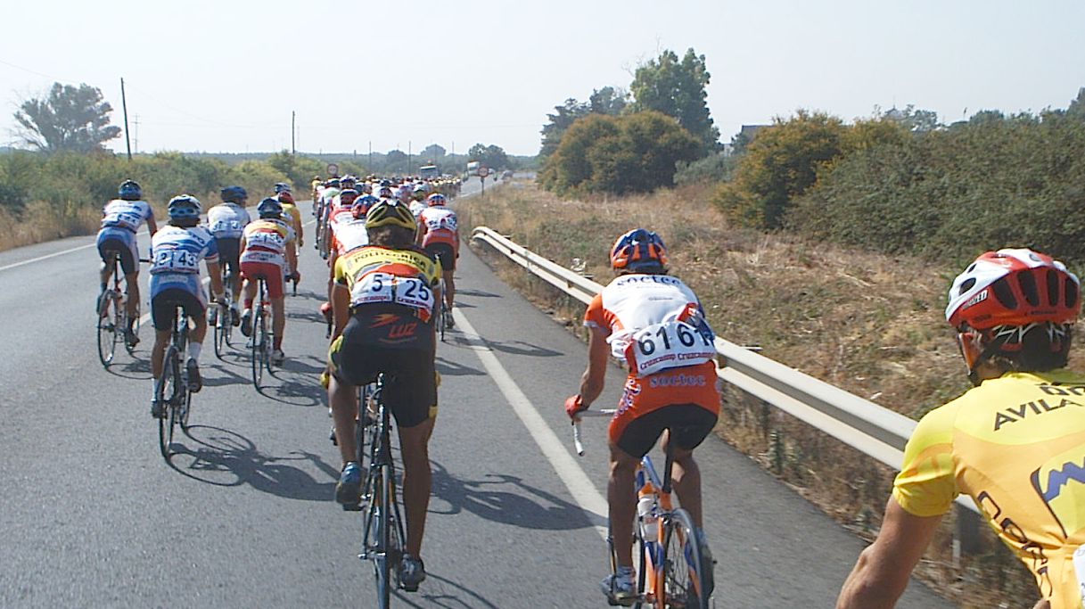 Me dio por salir de la oficina y meterme en un corte de 20 tios que se hizo, alli un Cropusa se hizo una serie en un repecho y cuando la acabo teniamos 30 segundos de ventaja, iban muchos kapos, iban Wiwi, Mancha, Arenas, Curro... Atras se puso el CCM a bloque y nos pillaron a todos menos al Curro , que habia arrancao en el repecho de la meta volante.