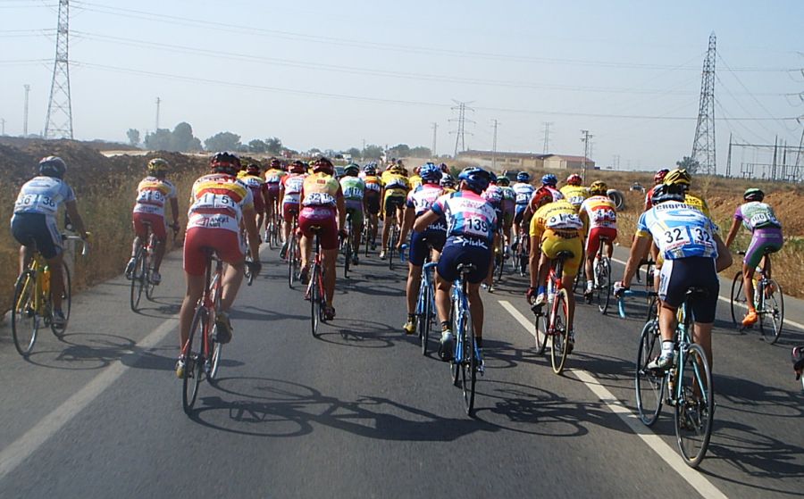 Cuando giramos a la derecha direccion Cabezas de San Juan empezo a entrar aire de cara, y empeze a arrancar, atacaba, me pillaban , volvia a atacar... Despues de las Cabezas el pakete se partio en muchos trozos, el aire, los ataques, se volvia a reagrupar, volvi a atacar... el Diegoweb automatico empezaba a funcionar, estaba averiado desde el GP Tetuan, pero aqui ya empezaba a funcionar, a 20 de meta los CCM pusieron orden y metieron cuneta disminuyendo el pelotón a 40 tios, pillaron la fuga donde iba Arenas pero no pillaron otra de tres donde teniamos al nuevo fichaje Venezolano del Ciclos Cabello, Tomas Aurelio Gil.