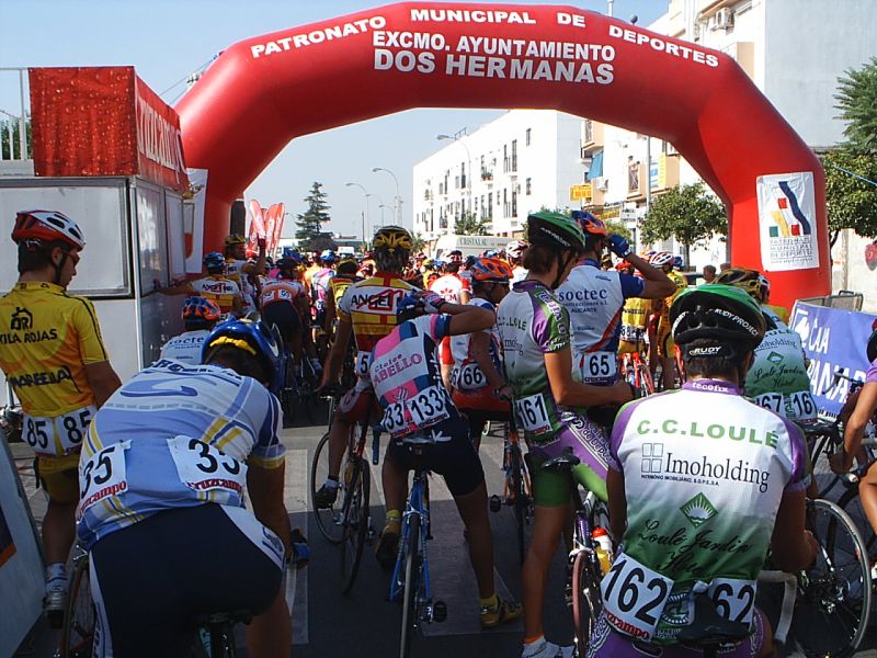 Segunda etapa de la Vuelta a las Bulerias de Sevilla, la buleria de hoy contaba tambien con todos los equipos del dia anterior, alguno que se rajó, pero casi todos, 145 corredores salieron en Dos Hermanas.