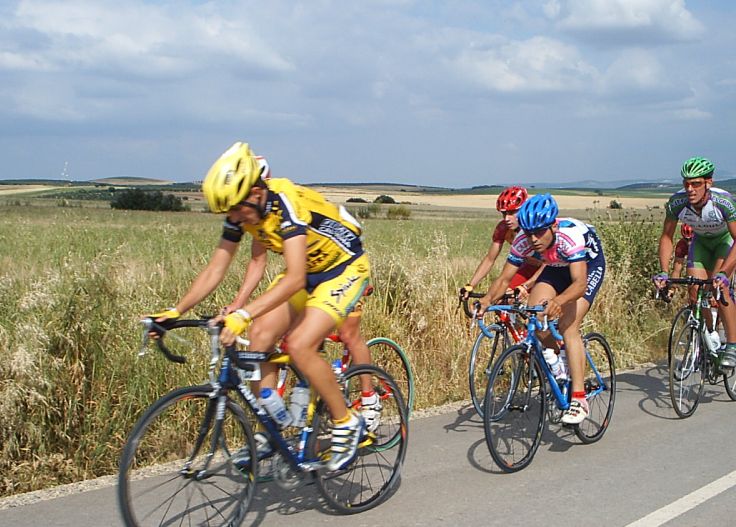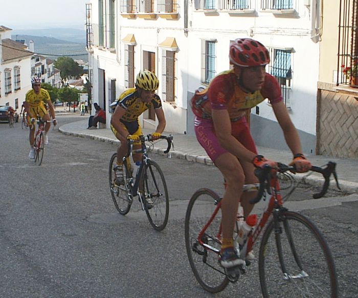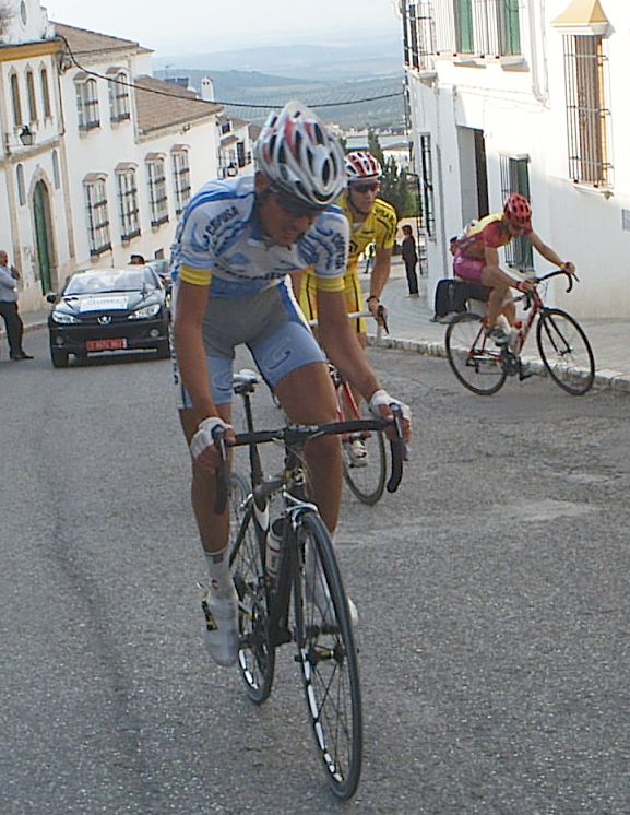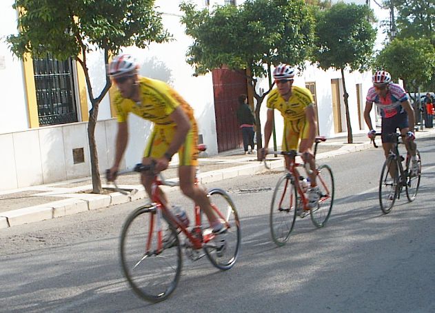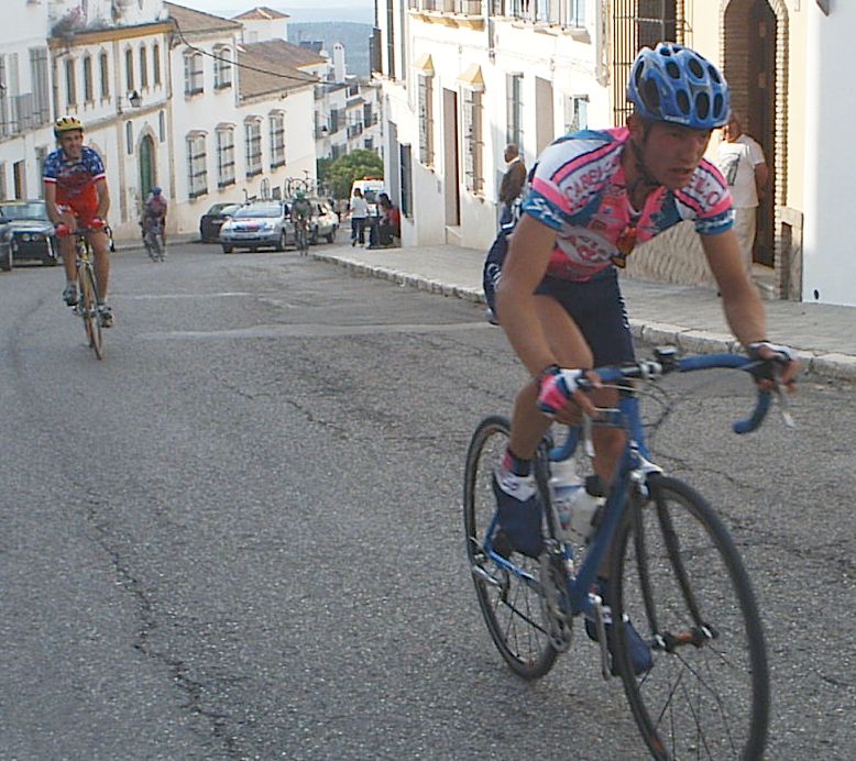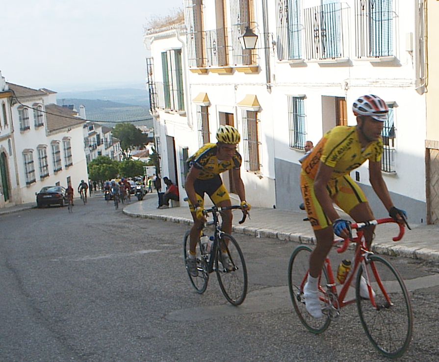 Bulería Buleeeeríía , era lo que sonaba por los altavoces de la salida de la Clásica bulería de ecija. 10 minutos antes de salir Andres Jesus rompe el cable de su cambio y se queda el chabal sin la opción de correr, un viaje desde extremadura, toda la semana entrenando... nadie puso empeño por intentar arreglarselo, asi que tuvo que ver la carrera desde el coche. Saldriamos unos 80-90 corredores, una bulería normal. En los primeros kms se iba a tirones y parones, se arrancaba a 60 , se paraba a 30, una manera muy distinta de las vueltas, donde no se baja de 50 en el plano, aqui veias que se ponía el pakete a 30, y arrancar en una romeria de estas lo puede hacer hasta un cadete... Se hizo una fuga buena con 5 tios, como iba Manolo, pues la dejé ir ... sino me habria puesto a arrancar hasta pilarla. Luego se hizo otra fuga mas numerosa en la que iban tres del equipo, Pablo Soler, Rafa y Jose Luis, asi que también la deje ir por que iban 3 del equipo, pero a mi se me habia ido totalmente el caballo. Ibamos en el pakete unos 60, y la cosa pintaba muy muy fea, se habian ido por delante unos 25 tios y estabamos alli haciendo el Juanito, subiendo Osuna estaba ya hasta los cojones y me puse a tirar, no ataqué pero puse un ritmo que yo mismo sin mirar para atras sabia que tenía que estar cortando el pakete, al principio se enfilo todo y luego se cortó , me tiré los 2 kms tirando a bloque en la subida del paso por el pueblo y despúes, cuando miré para atras solo estaban el Titi, un Murcia y un Córdoba. Me pasó el titi relevo pero enseguida tuve que volver a pasar, fuimos tirando 3 hasta que enganchamos con el grupo del Arenas, y después con el grupo grande , donde se había marchado gente ya. Llegué a la subida de Estepa muy perjudicado, iba vacio vacio, al principio me apalanqué un poco pero a media subida me empezó a entrar gas pero no pude coronar con el grupo de Marranete, que coronó unos segundos delante de mí y que fueron la separación de entrar alante o acabar en la miseria. En la bajada ibamos 4 tios intentando enganchar con el grupo de Marranete, les veiamos, pero no cogiamos... Después de un rato persiguiendo a bloque vemos como vienen 20 tios a toda ostia, después de la Vuelta Madrid yo pienso mal de todos, y aun no se si les metieron coche o no... Pero todos ellos llevaban un gas de la ostia, iba el wiliam del Kelme pegando unas ostias... En ese grupo faltaba Dimitri , que seguro que habría puesto orden.... Después del puerto de tercera mi grupo cogió a los 2 cabellos que quedaban alante y habían petado, para eso otra vez no dejo que se me vaya ninguna escapada... Luego me puse yo a tirar hasta que pillamos al grupo del Tomatero, nuestro grupo iba a toda ostia y pillabamos gente a saco. La cabeza la teniamos a minuto y medio. Intenté marcharme del grupo, que era ya un pelotón de 20 tios, pero no me dejaban, asi que llegamos al sprint por el noveno puesto, yo hice el 17º, otra vez será. Pastor lo ganó todo , segundo Marranete y tercero Antonio Arenas. |