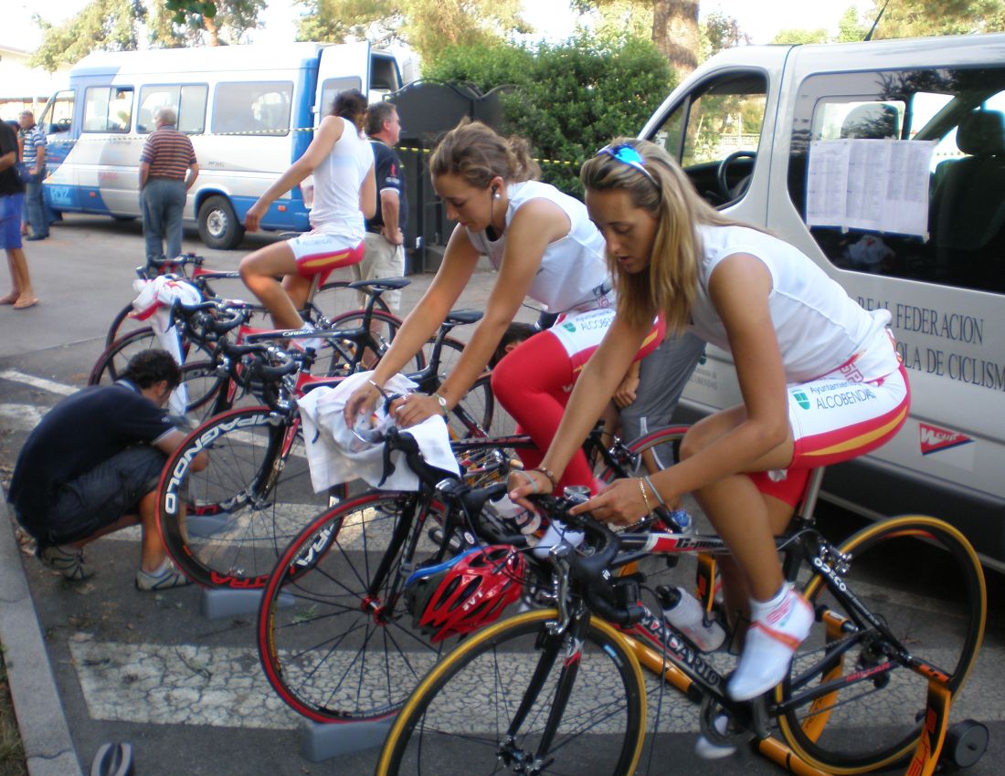 ![]() Menudos materiales de última generación se gastan Andrea Knetch del Bigla Cycling Team y Luisa Tamanini de la escuadra italiana Safi Pasta Zara Manhat |