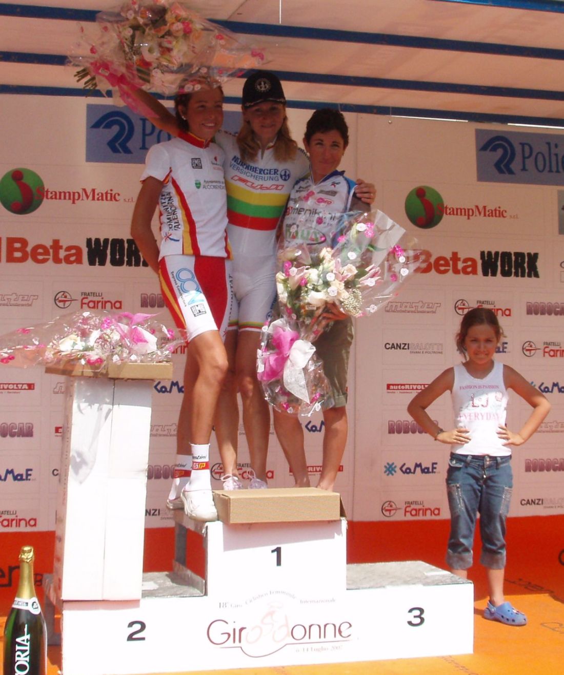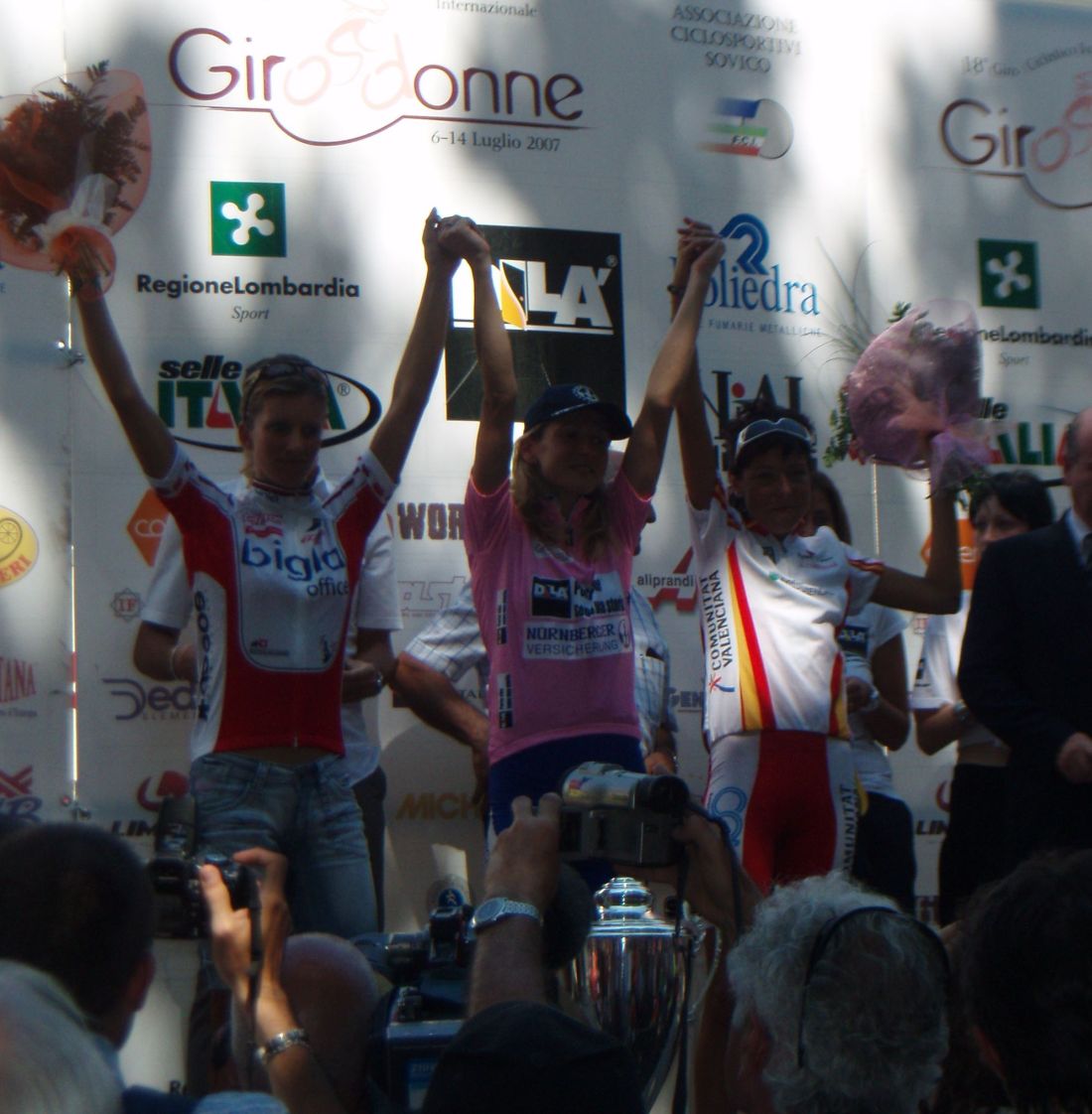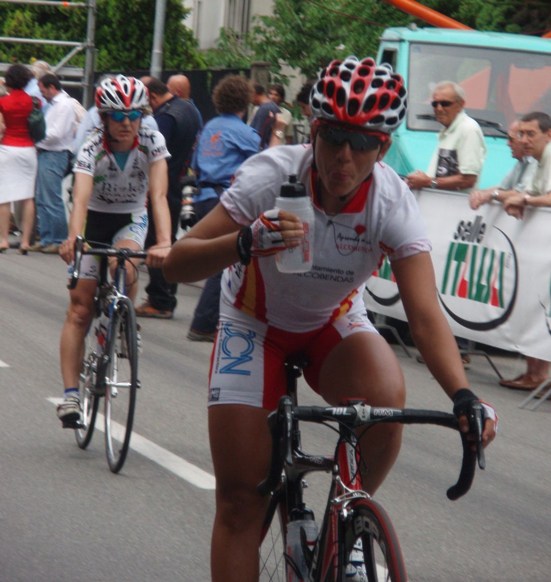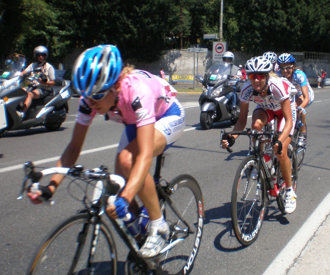 ![]() Ahí tenemos a Edita Pucinskaite, lider del Giro, vigilando a Maribel Moreno, vigilancia mutua, la en medio se sentirá agobiada, miraros miraros pero no arranqueis!! |