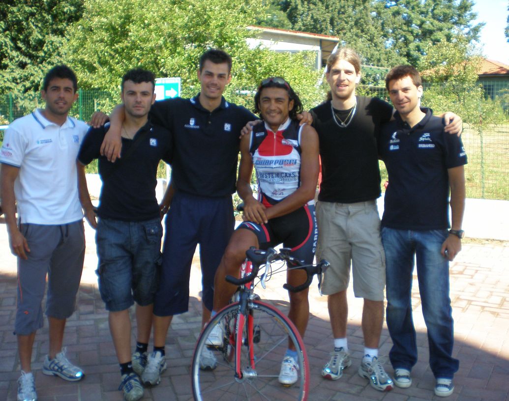 ![]() uno de los ciclistas mas carismaticos que ha tenido el ciclismo posando con Josué, Pami, Chinchi, Rivas y un colega. |