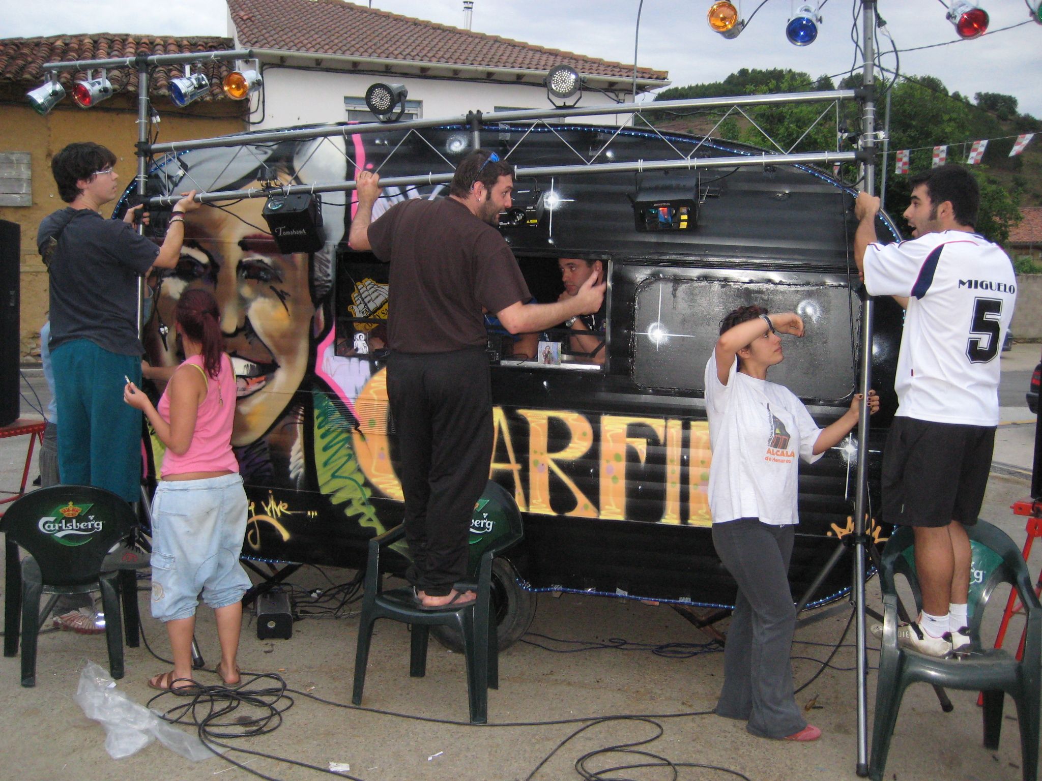 Montando la nueva discoteca móvil.