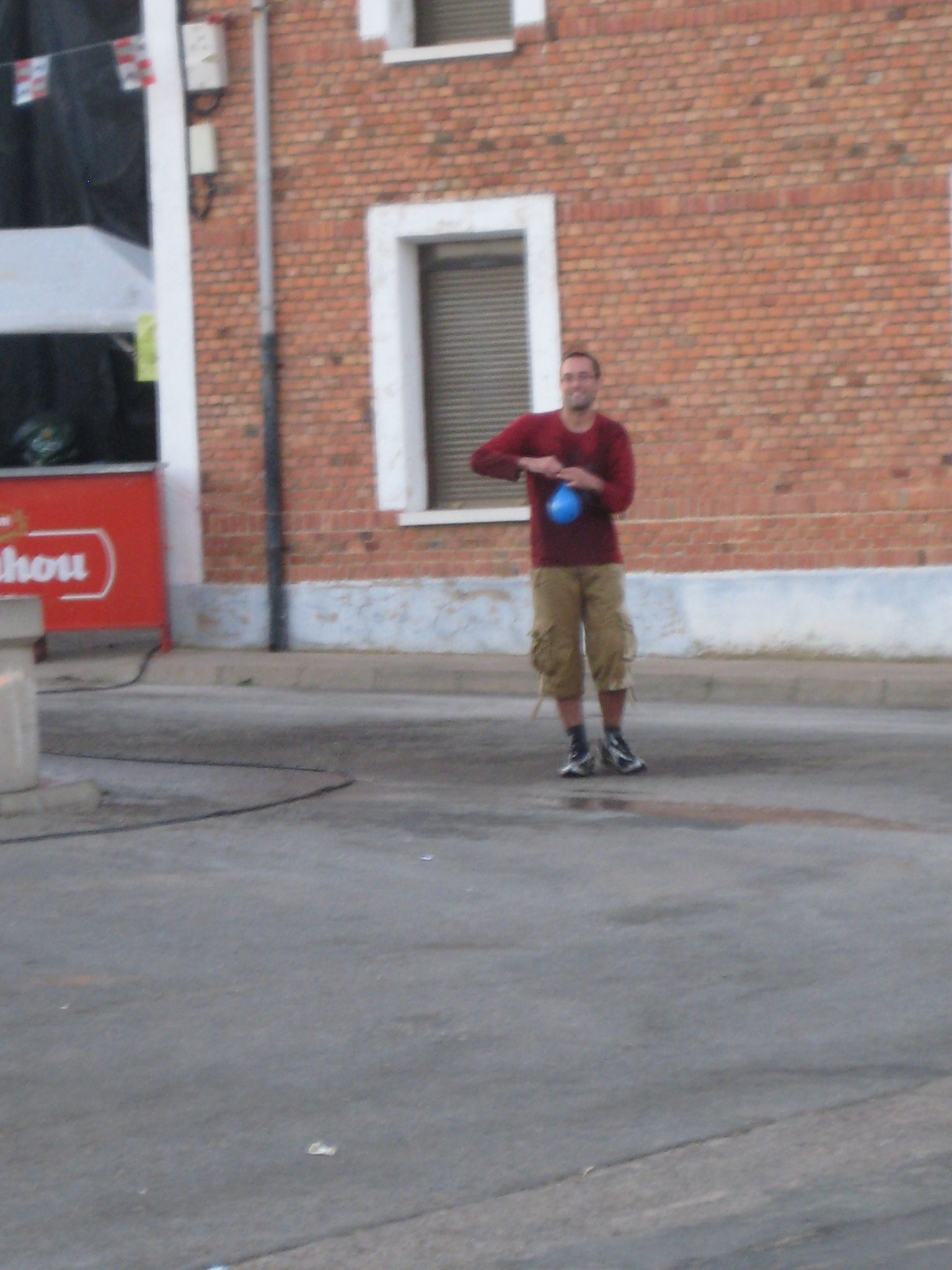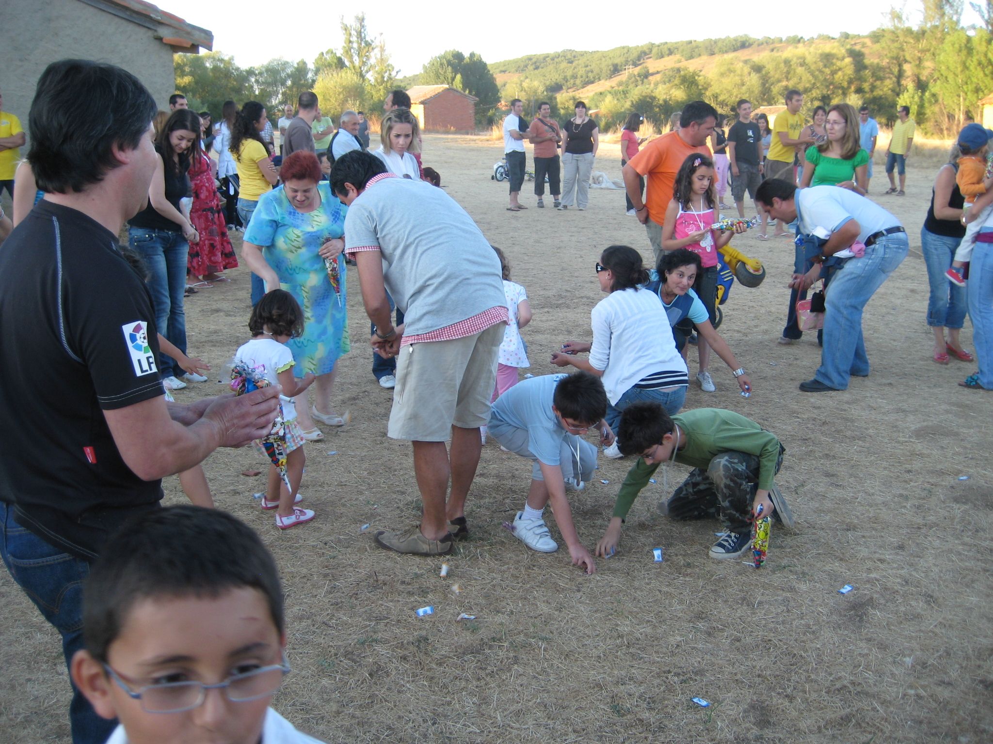 Tirando caramelos al acabar los juegos infantiles.