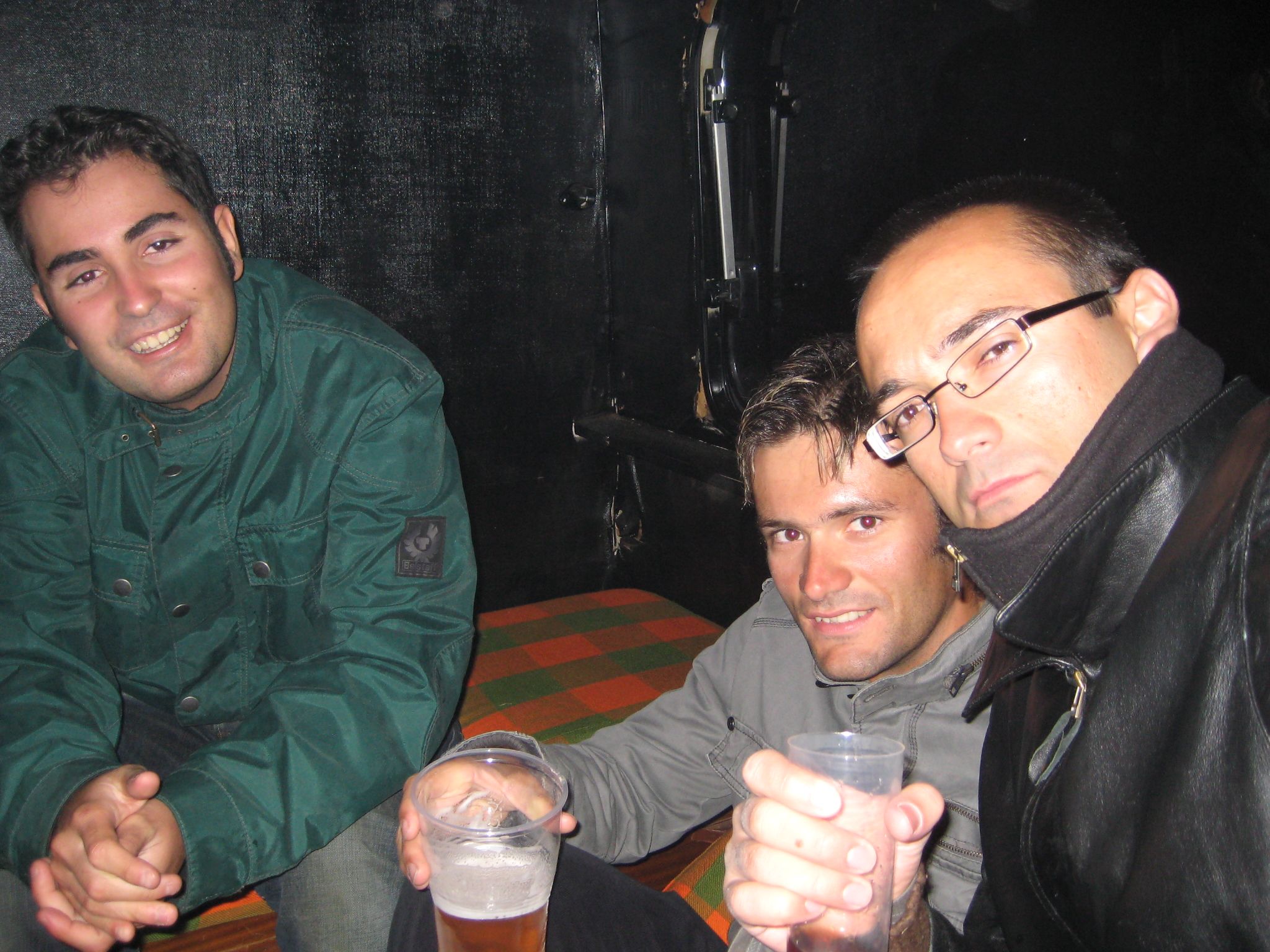 Bebiendo dentro de la caravana.