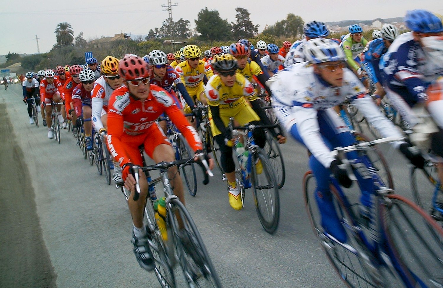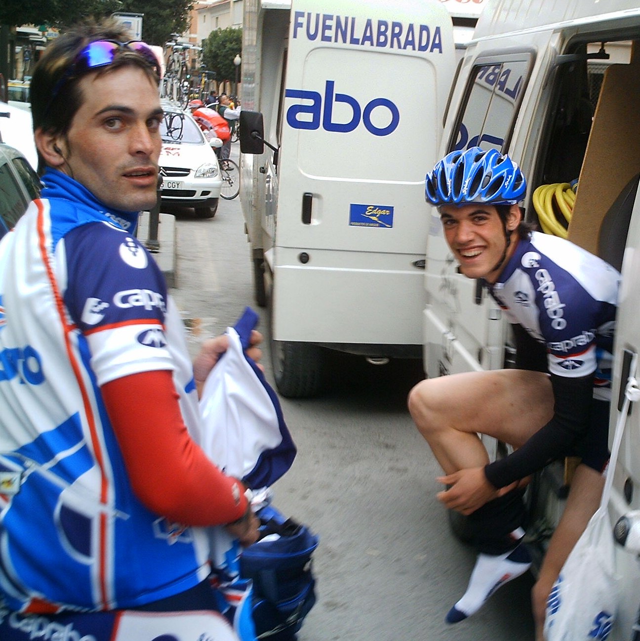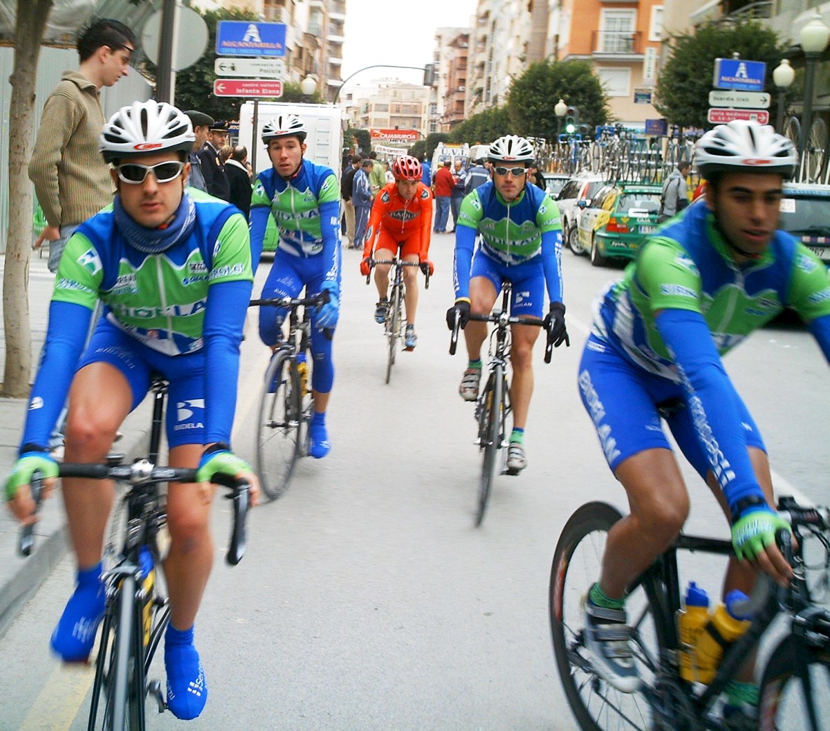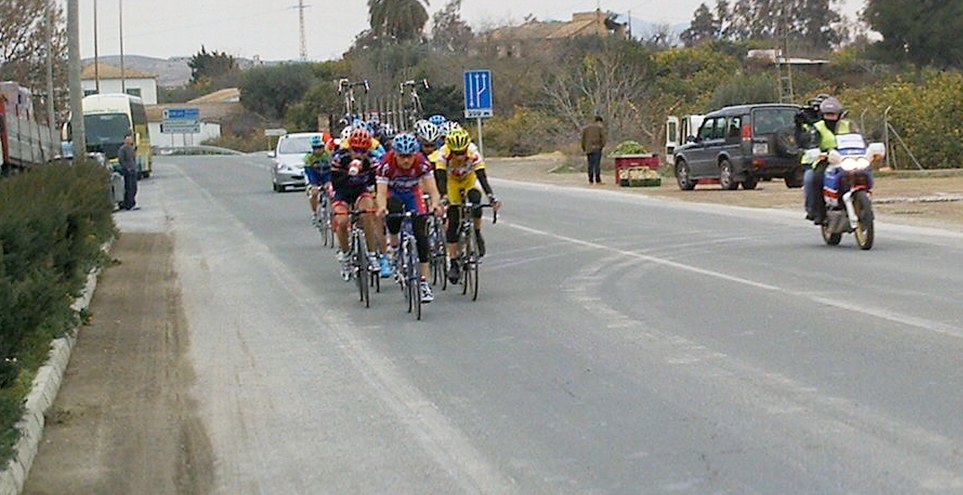 En la Copa España con 175 tios puede que hasta sea importante colocarse alante y todo, y mas cuando la escapada se hace a los pocos kms de salir y tu vas todavia en la oficina, aunque si hubiera andado con mas ganas la habría pillado, el caso es que se fueron 14, pero metimos al mítico Javi Vega y al Cano, el famoso Cano de la novia de Pedro Cano, si es que con esa novia como no va a pillar el tio las fugas buenas!!. Yo iba ahi en la oficina con pocas ganas y sin enterarme de nada, me llegaban por el pinganillo las informaciones que nos facilitaba Javi Vega, "¡¡Javi,que vamos Cano y yo alante metidos en un corte, estamos abriendo hueco", yo mientras andaba en la oficina pensando, bueeeno, pues entonces tranquilidad, la ley universal del ciclismo en esos casos dice que toca ir a rueda y salir a los palos. Cabe destacar también que iba el Parma escapado, como en Bolullos, estas fugas de salida se le dan bien.