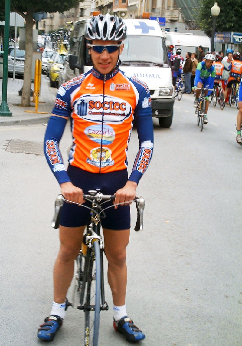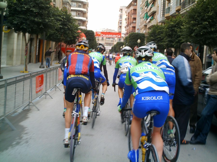 El primer puerto de tercera es el de Pliego, es el test para ver que tal estas, si sufres en ese puerto date por jodido, y si lo pasas bien también date por jodido si no coronas de los primeros, por que se acerca el temido embudo de 500 metros donde se rompe toda la puta carrera. Yo me encontré bien, empezé de los ultimos y con el platito chico meti cadencia y logre meterme del medio, pero en esa carretera estrecha con tanta gente, yo no tenía viabilidad para arrancar, ademas, se habia ido otro corte donde se metió Sergio Bernardo del equipo y yo ni lo habia visto. En la corta bajada y los toboganes de después se iba muy rapido y ya era muy complicado ganar posiciones, porque ademas, la carretera era mala y estrecha, con ganas si se podia pero yo carecia de ganas, confiaba que en el embudo pasaria a la gente facilmente..