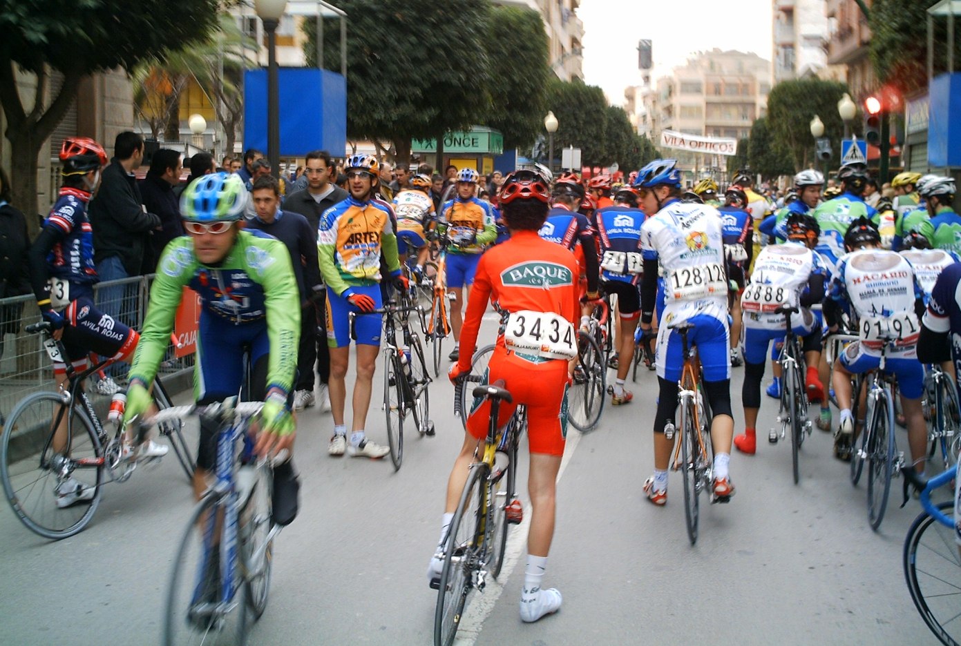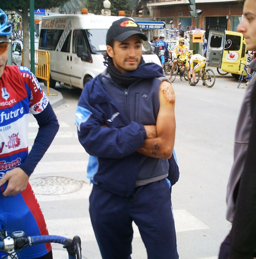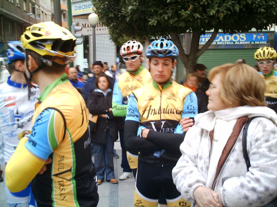 Pero lo que mas jode es que antes del embudo hay otra bajada con curvas de carretera estrecha con grabilla que toca los cojones y me descoloca mas todavia, entre al embudo con mas de 100 tios delante, pero con tranquilidad. El embudo es un cruce con una primera rampa del 12% o asi que cuando te han dado número para empezar a subir el primero esta ya en china, empezé a pasar gente viendo a lo lejos donde estaba la cabeza del pakete, buff, un puerto de estos es lo que mas odio, es como un abanico, si lo empiezas atras date por jodido, cuando enganchaba con lo que parecía que era el grupo veia que se cortaba y se seguia cortando cada vez mas, asi que encontré mi vagón con mi ex-compañero Rafa del Paul Versan, que iba tirando, con Mokete del Baque, alli ibamos los 3, la grupeta con otros pocos mas, todos al son que ponía Rafa, yo estaba esperando a que ablandara para ponerme yo a tirar con el plato, cuando ablandó ya me puse a tirar y con la ayuda de Rafa empezamos a pillar grupos, tambien siguieron tirando Baques y no parabamos de coger grupillos, -" Hay que pillar a esos, son los de alante" Les pillabamos pero no eran los de alante, seguiamos pillando gente pero lo de alante no eran.. Pero cuanta gente empezo delante??????????? Entre los que pasamos estaban Javi Vega, que menudo carrerón hizo para el poco entrenamiento que lleva, 90 kms escapado.