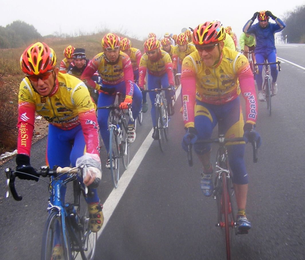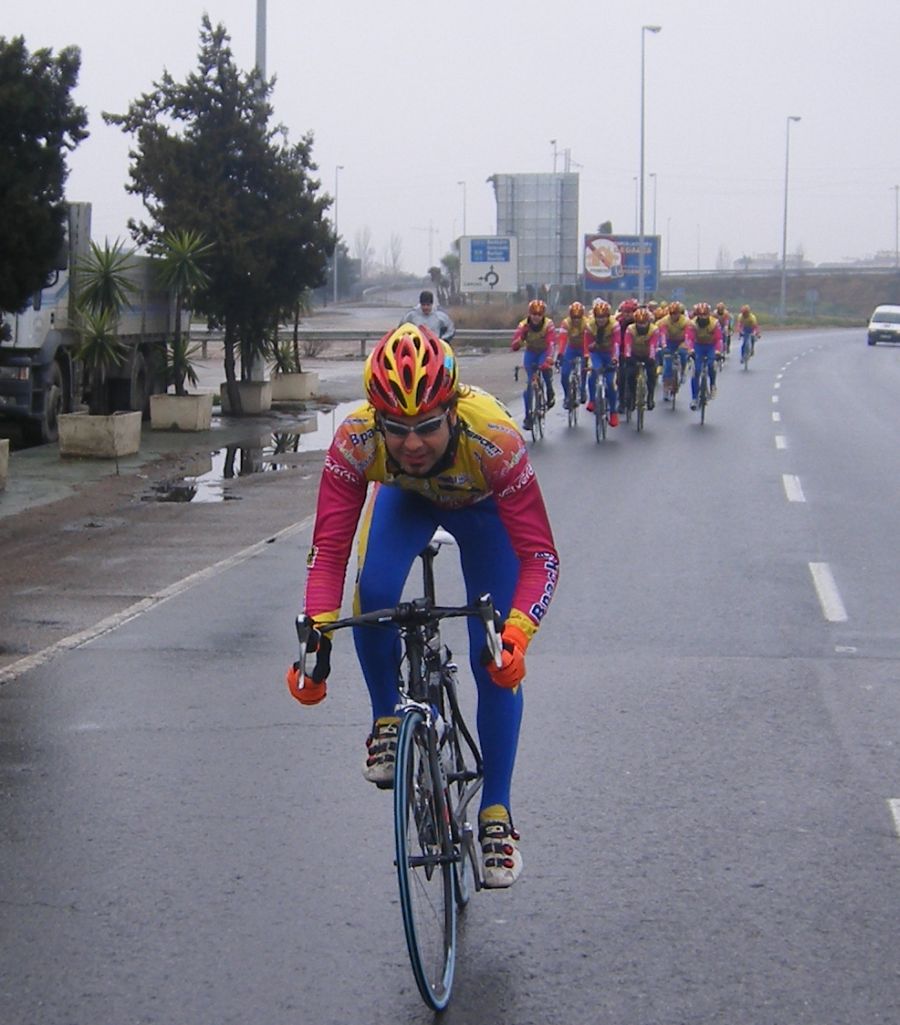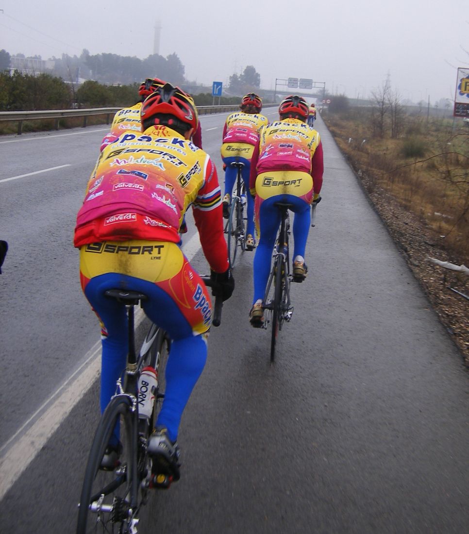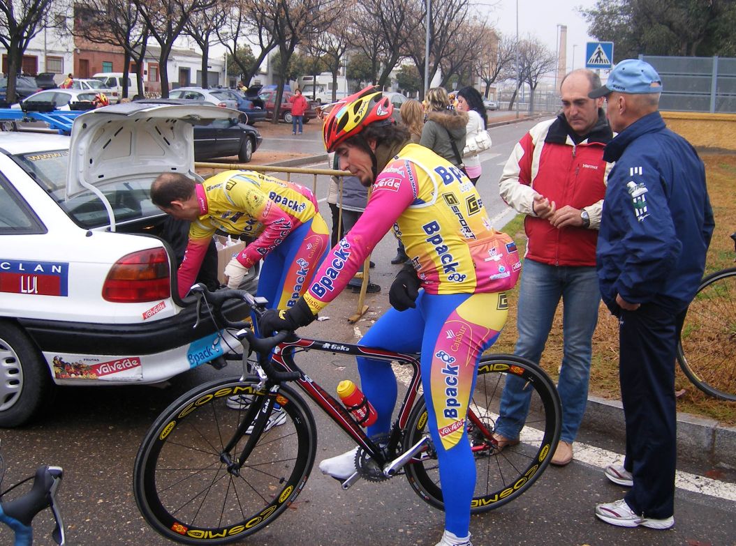 ![]() Toda una exclusiva, Antonio Ruiz vestido de Bpack!! todo el equipo estrenaba la nueva equipación pero Antonio era la primera vez que se enfundaba el mallot de Bpack. |