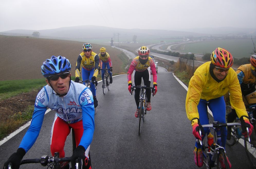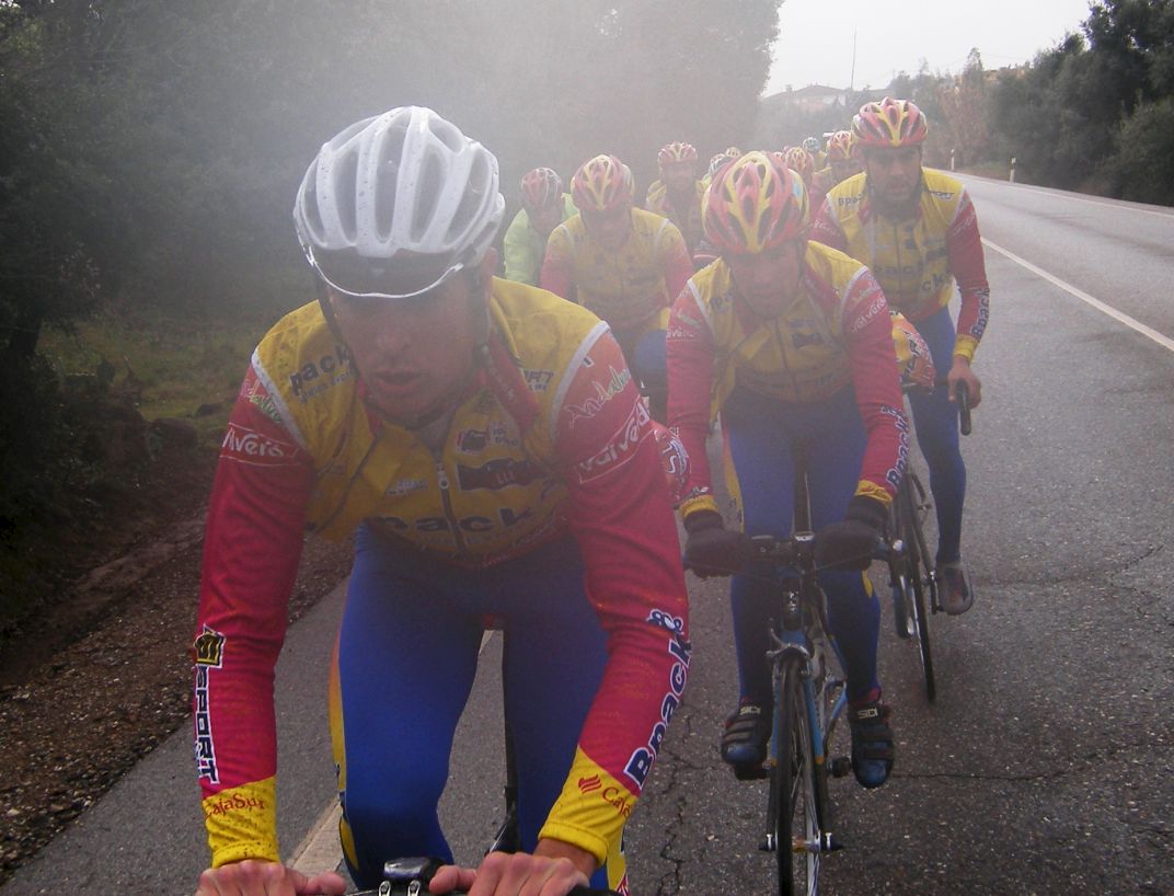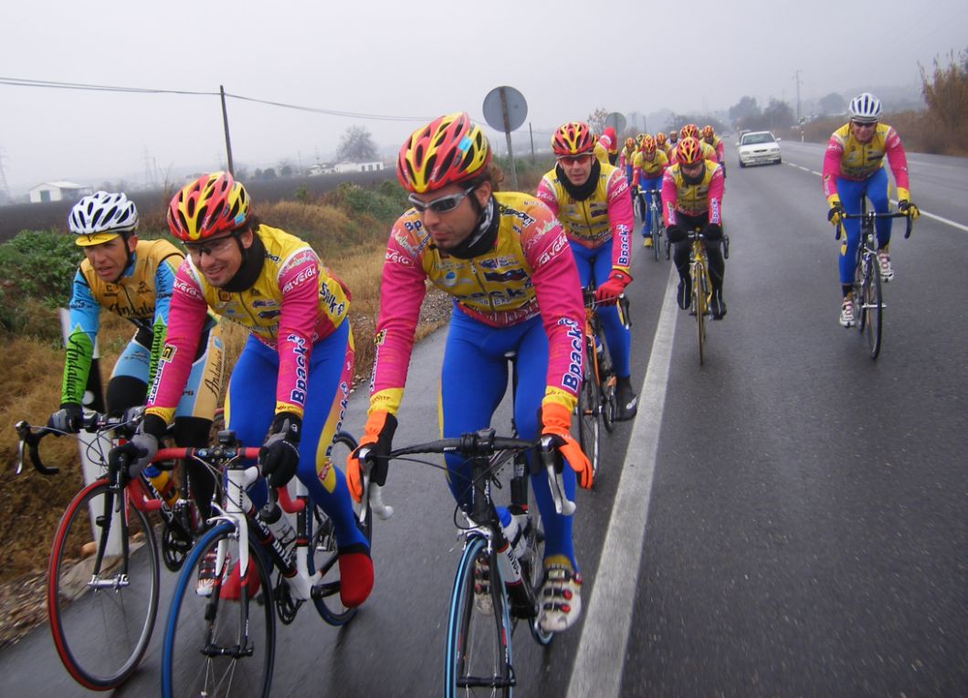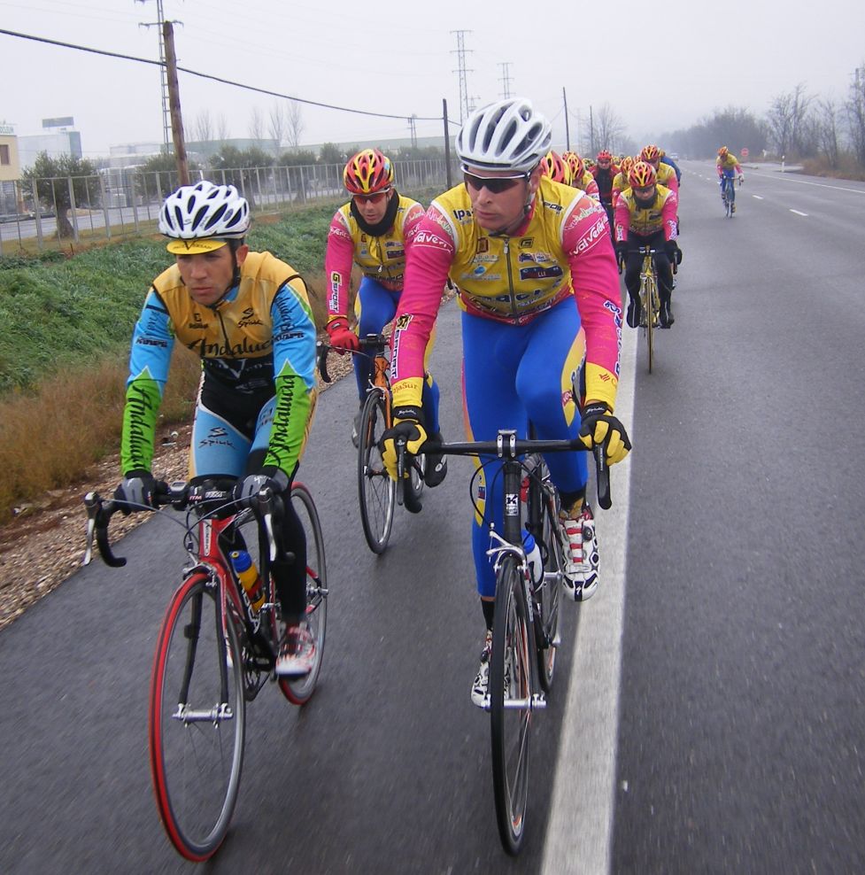 ![]() Toda una exclusiva, Antonio Ruiz vestido de Bpack!! todo el equipo estrenaba la nueva equipación pero Antonio era la primera vez que se enfundaba el mallot de Bpack. |