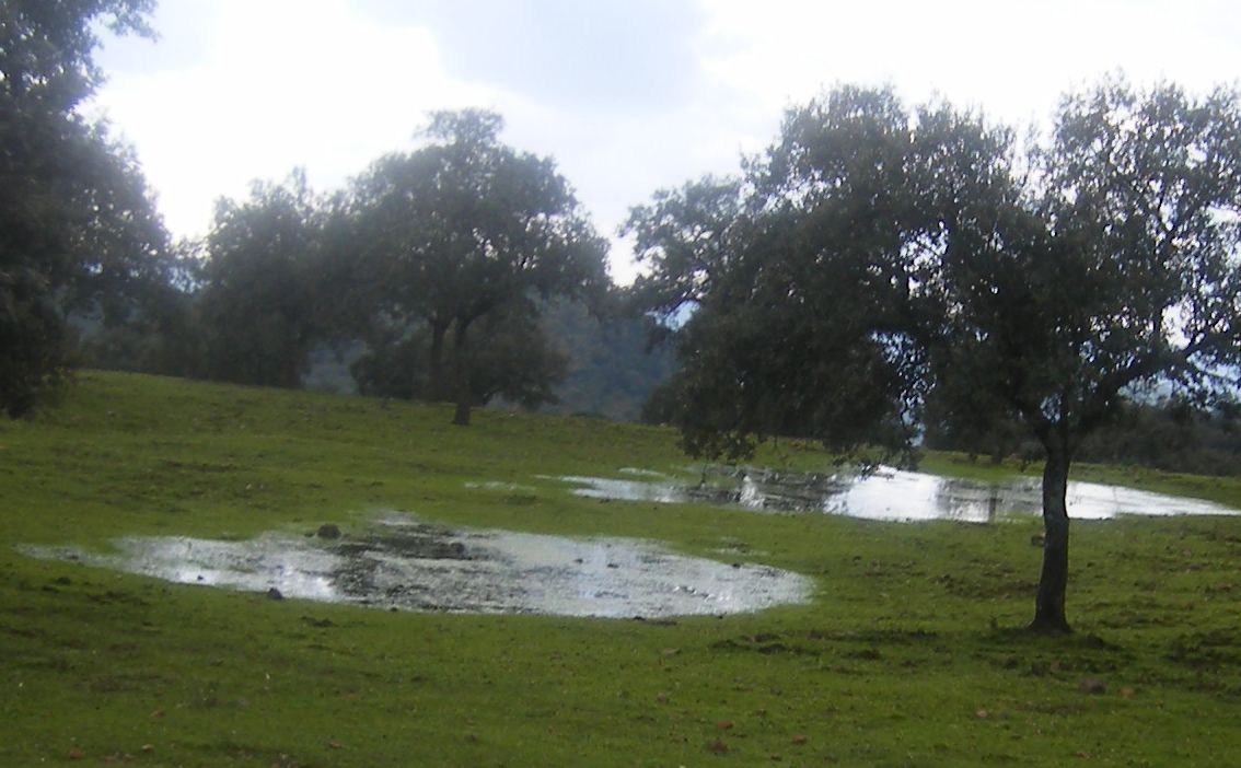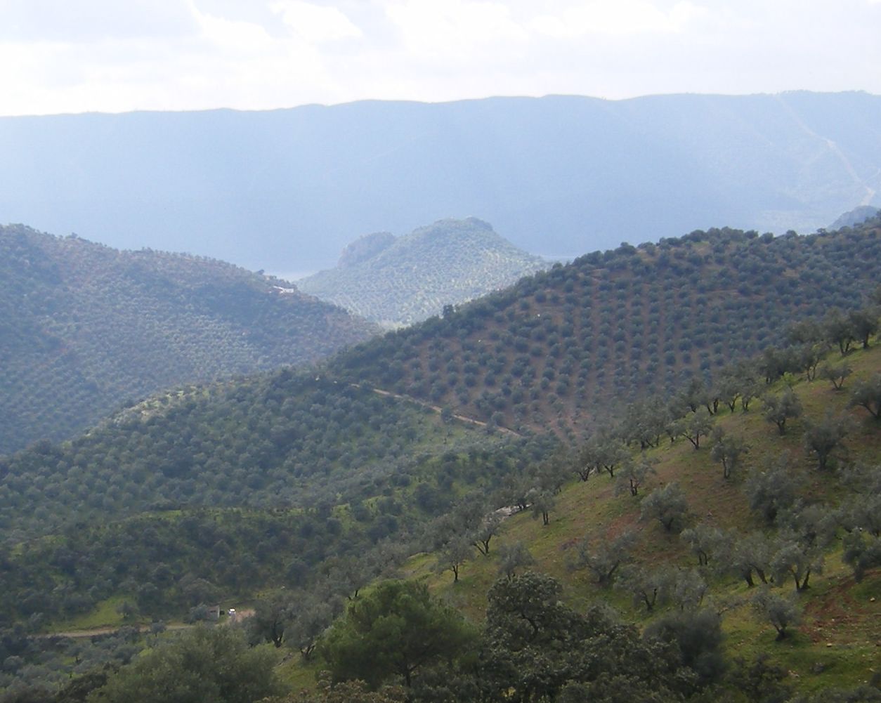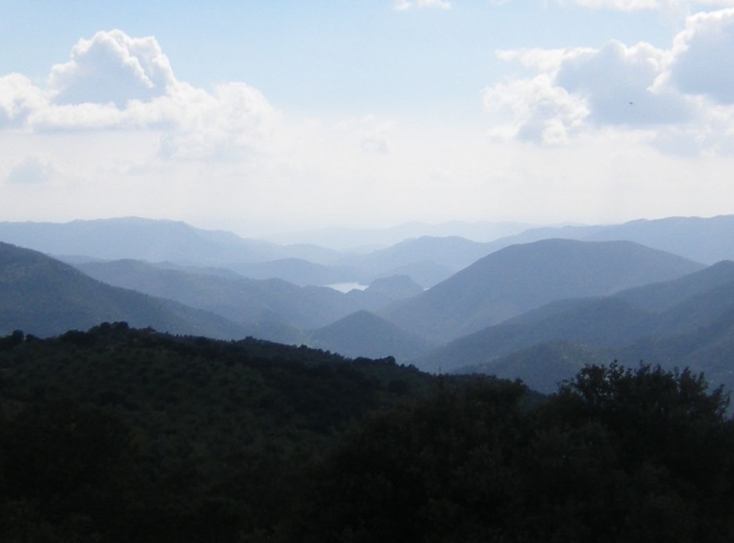 El alto de las Lomas del Caballón, con el pantano del Guadalmellato al fondo.