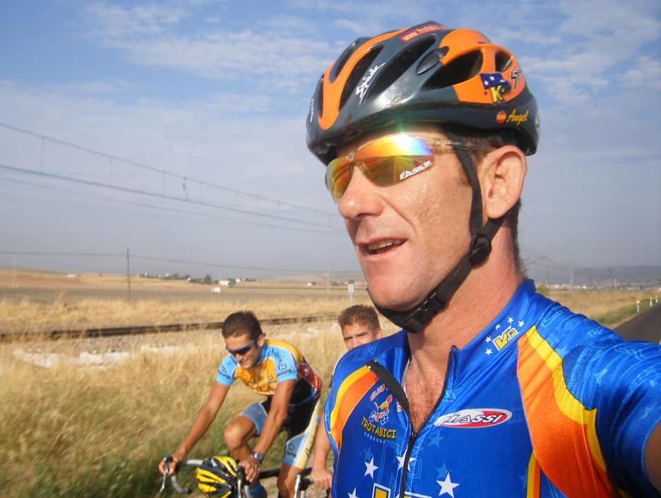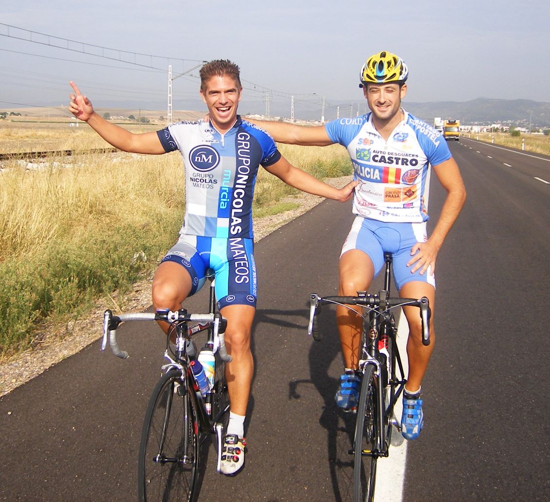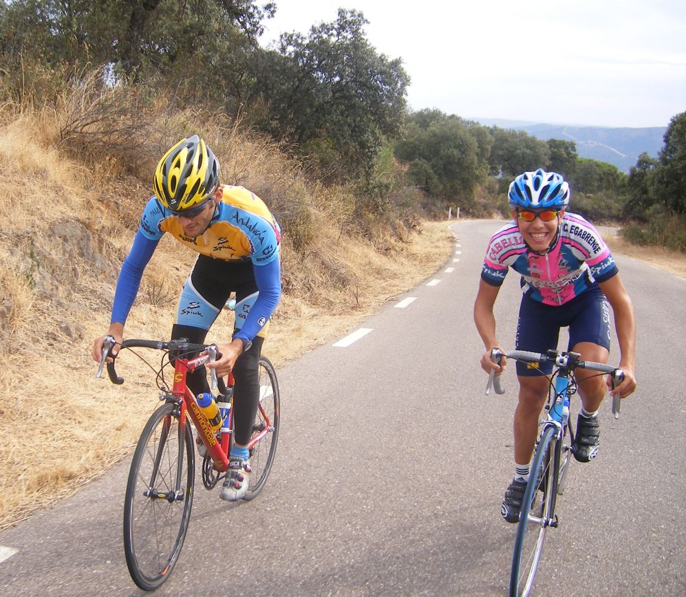 Diegoweb y Torralbo camino de Villaviciosa, por donde pasó la etapa de Almendralejo que hacia tanto calor, esta vez mucho mas fresco.