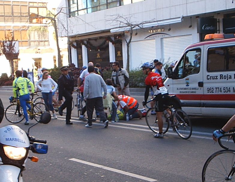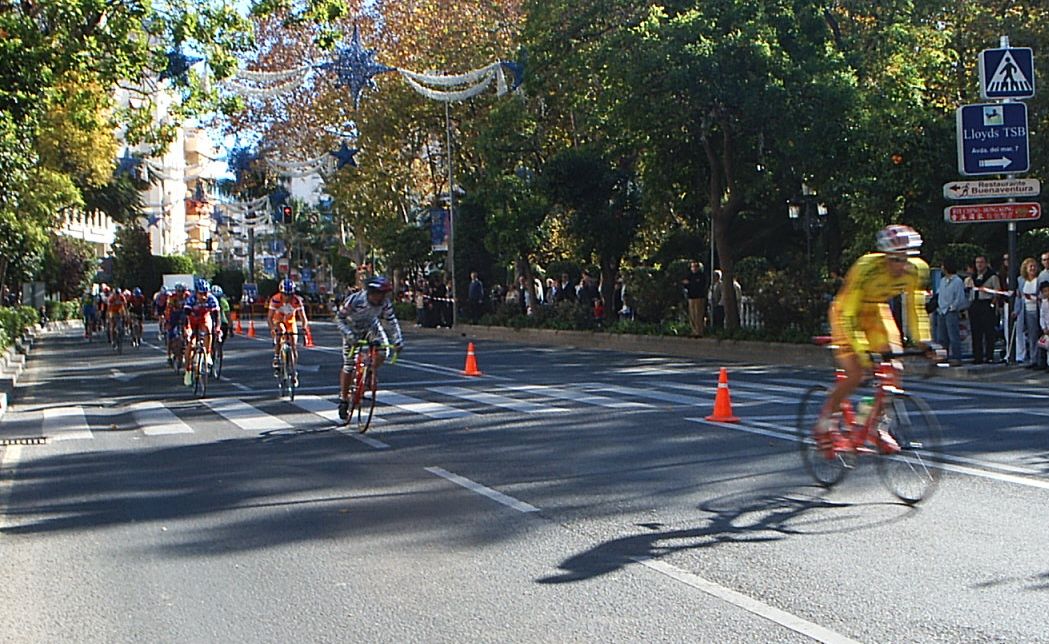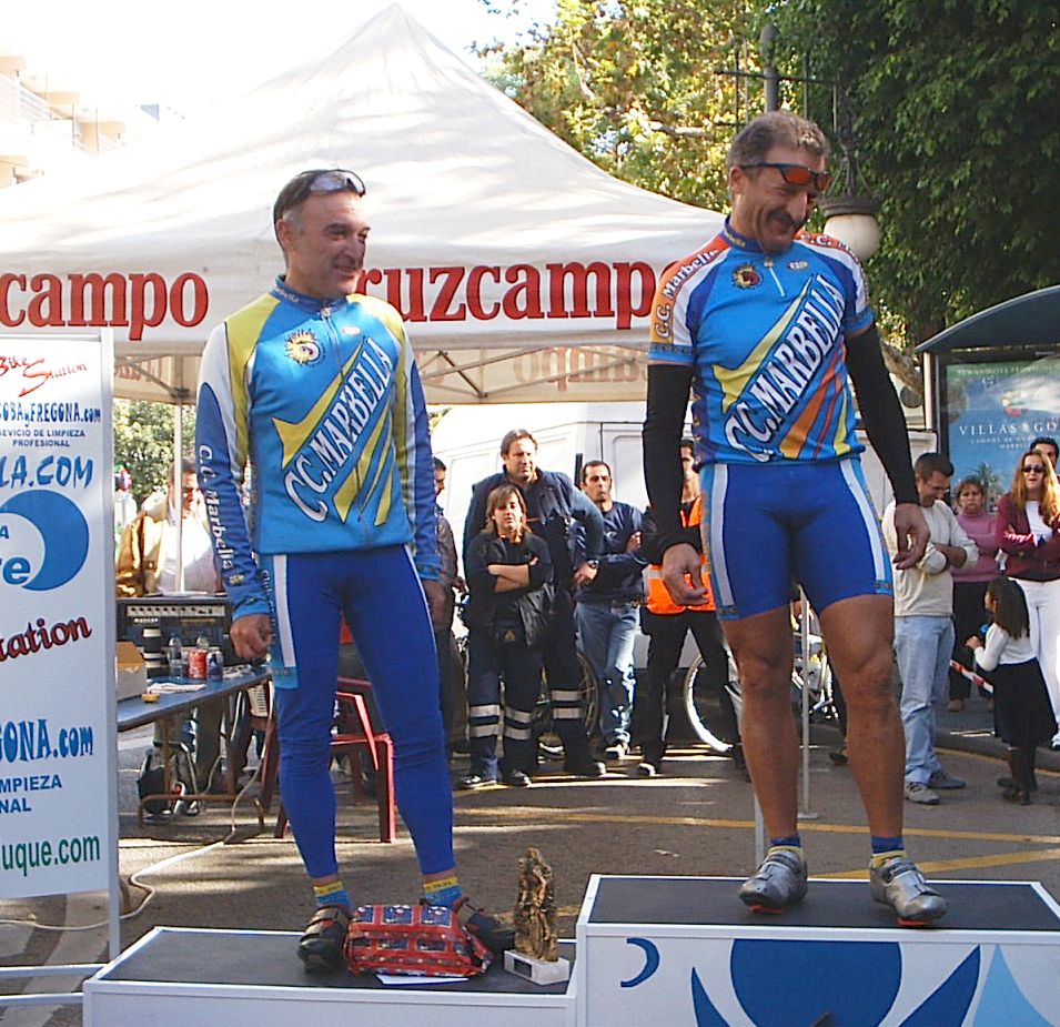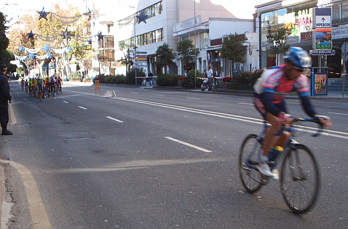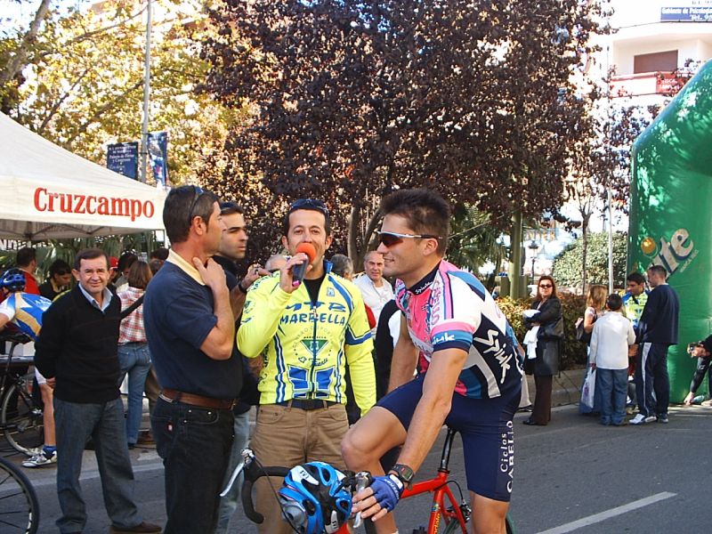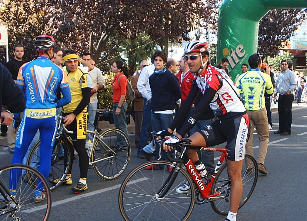 Bulería de Nivel en Marbella con participación de altisimo lujo, como todo lo que se hace en Marbella. Con una temperatura que superaba claramente los 20 grados se corrío el II Trofeo del Pavo de Marbella. Entre los Galácticos inscritos figuraban como estrella Andrea Peron -Team CSC-, Alberto Benitez-Saunier Duval-, Agustin Alonso. Kelme, Antonio Ortiz- Coronas, Quillo Marquez, Mate , Edu...y como no, el Mítico Barbosa -M.A-.