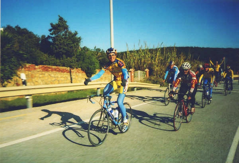 La grupeta enfilando la carretera hacia la sierra.