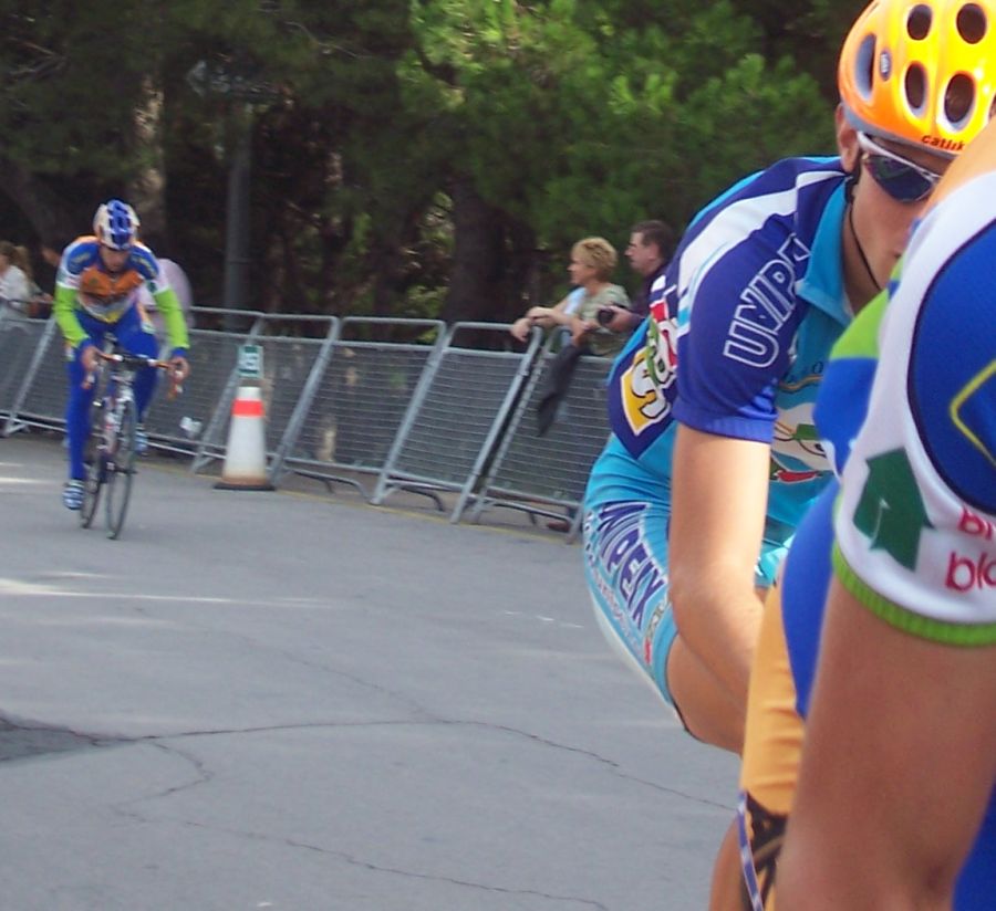 Ese de rojo si que le hecha valor corriendo en culote largo y mallot largo.