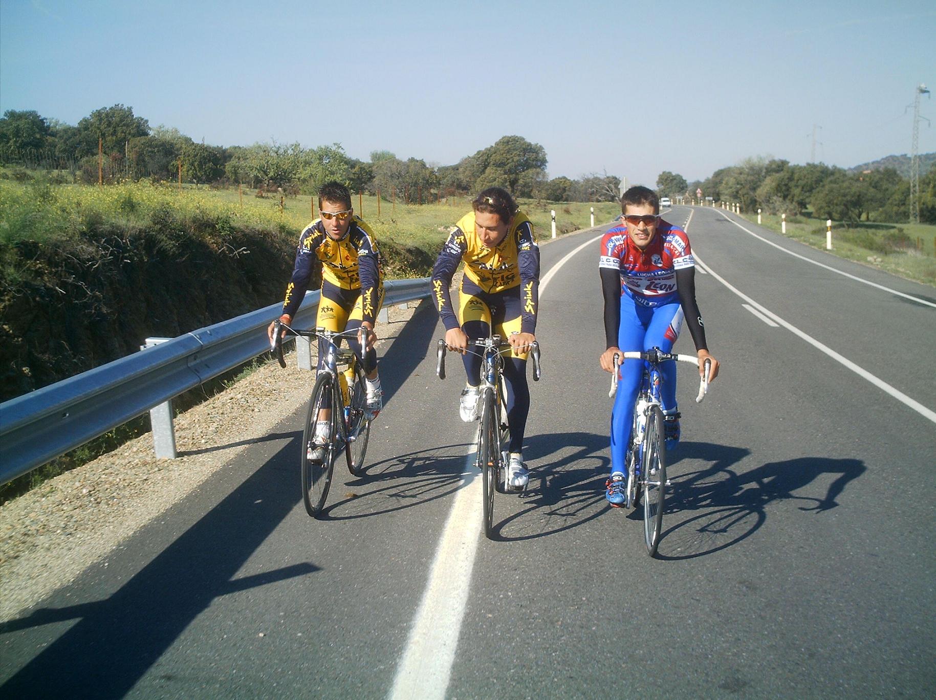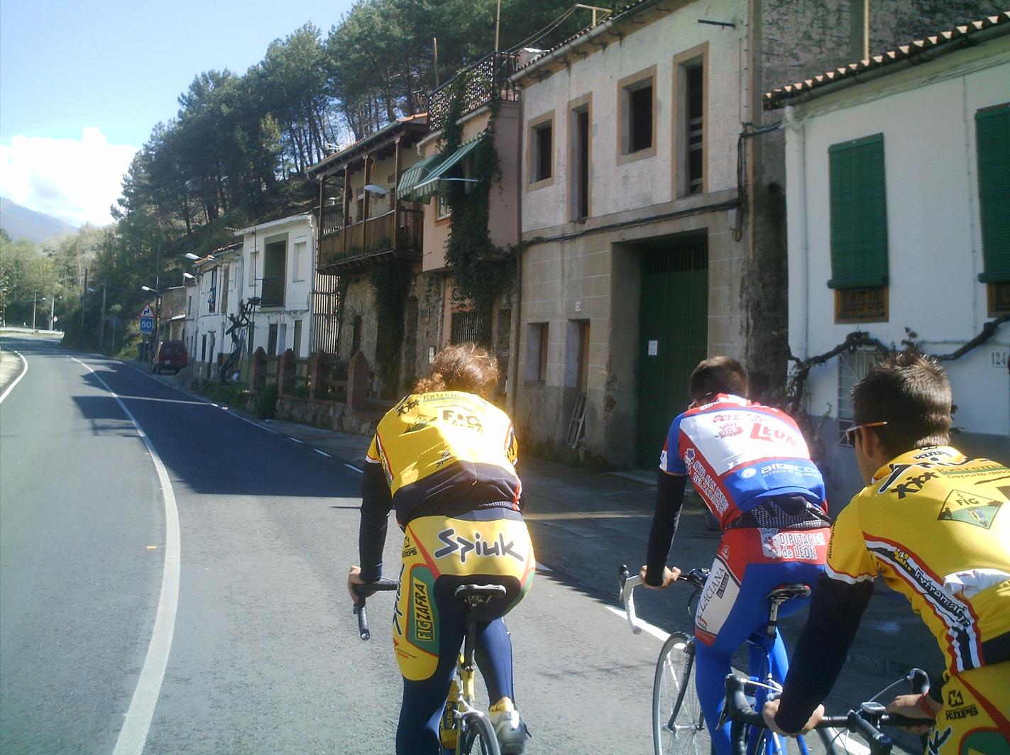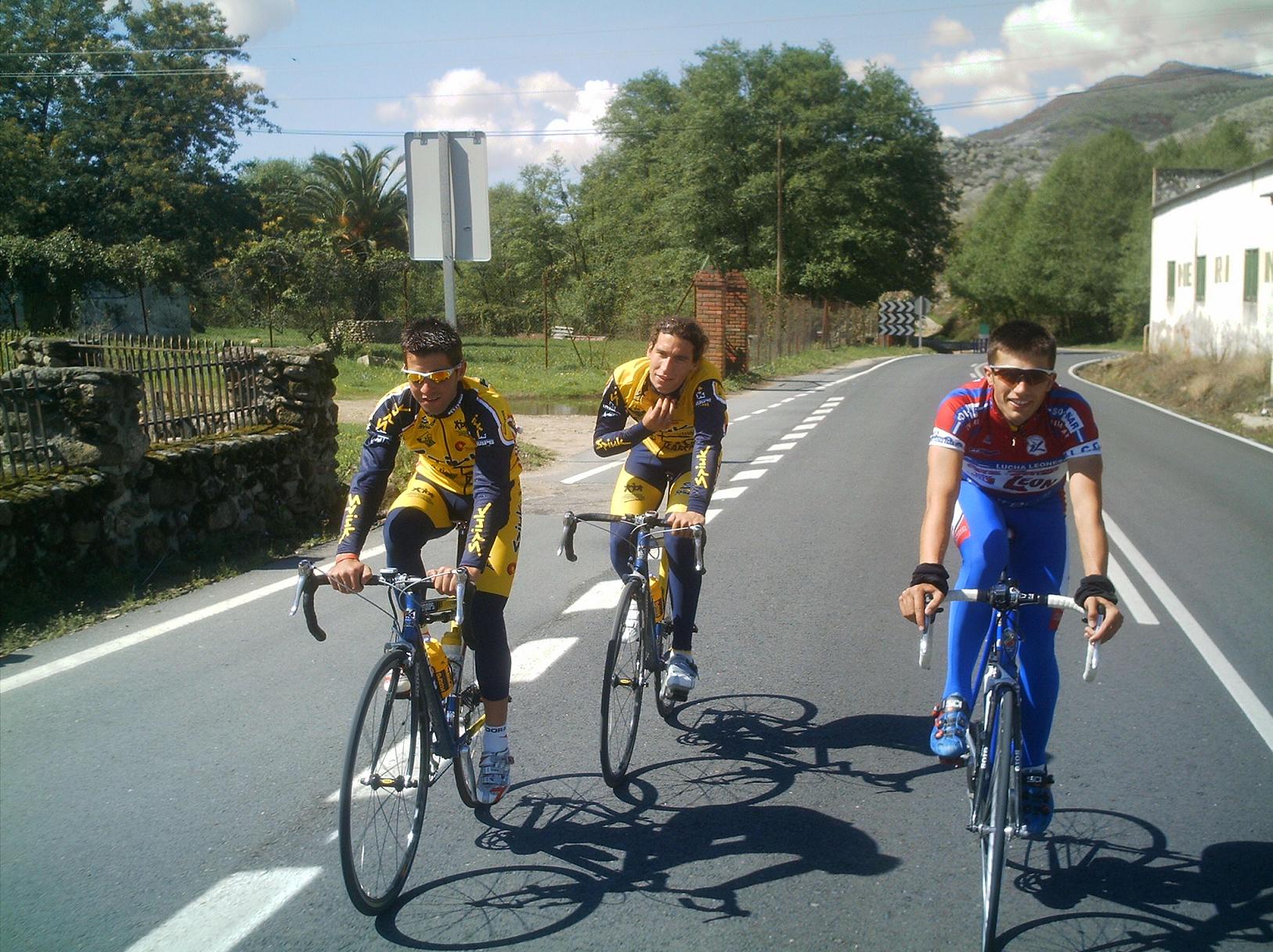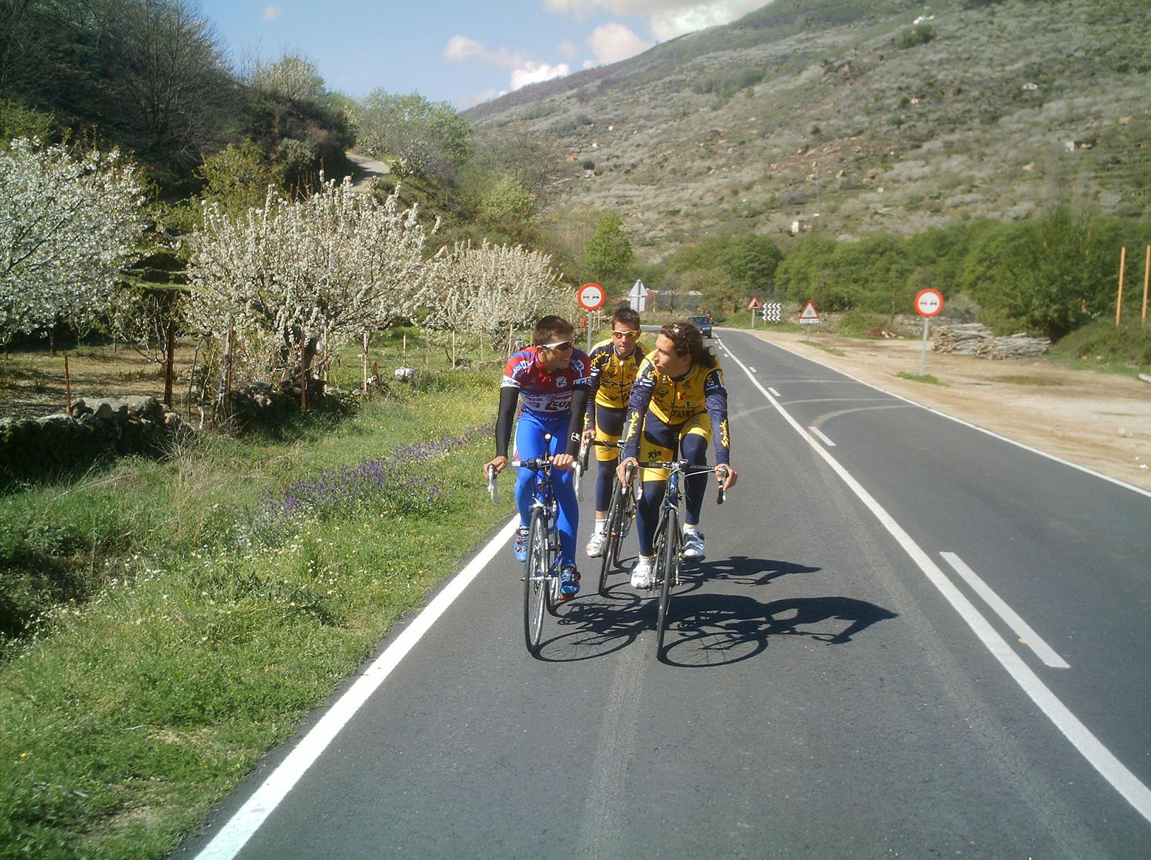 La Grupeta saliendo de Plasencia por la Nacional del Valle del Jerte, Mokete, Abel y Pedro Romero.