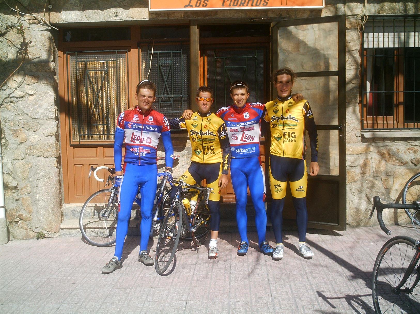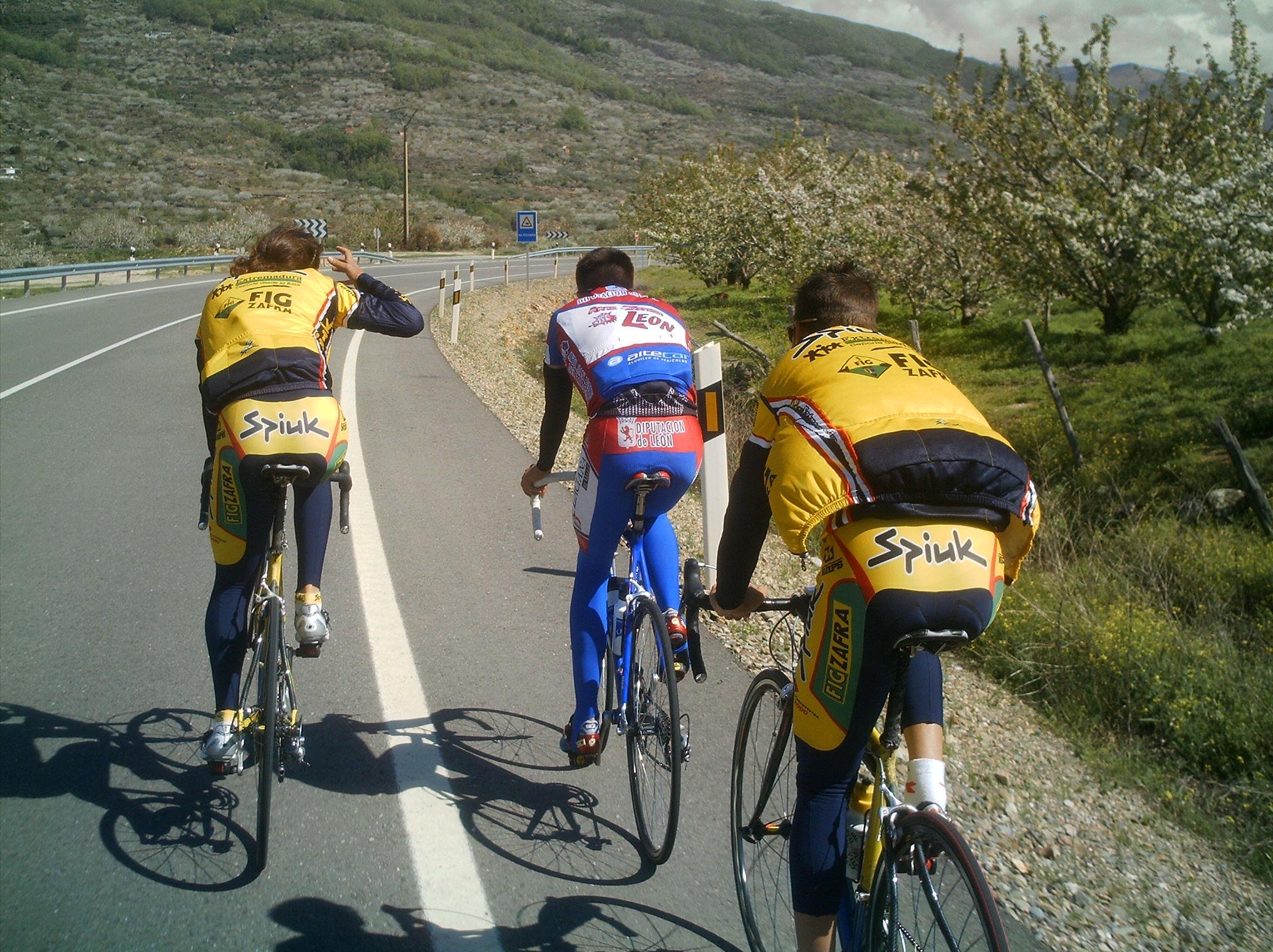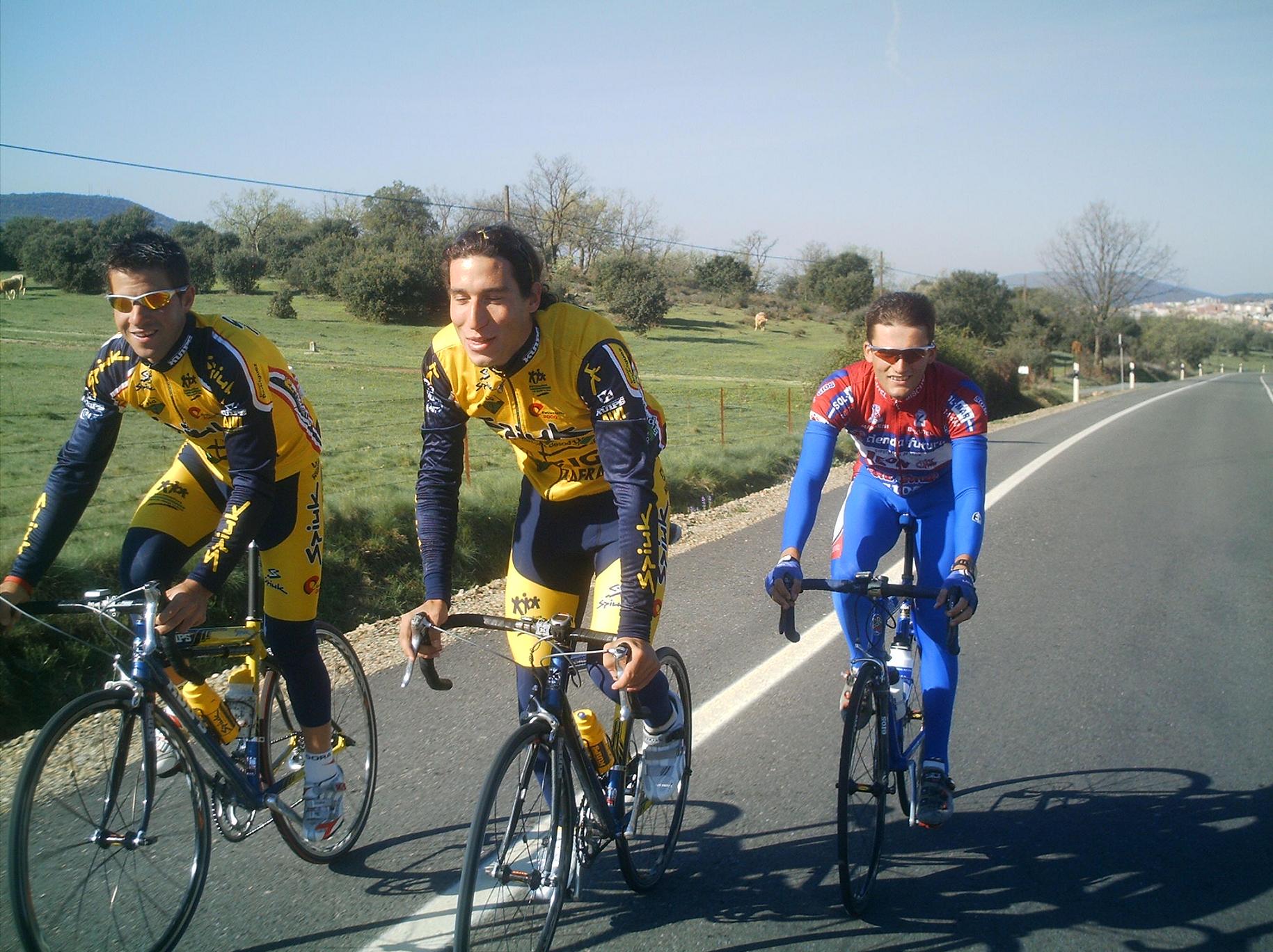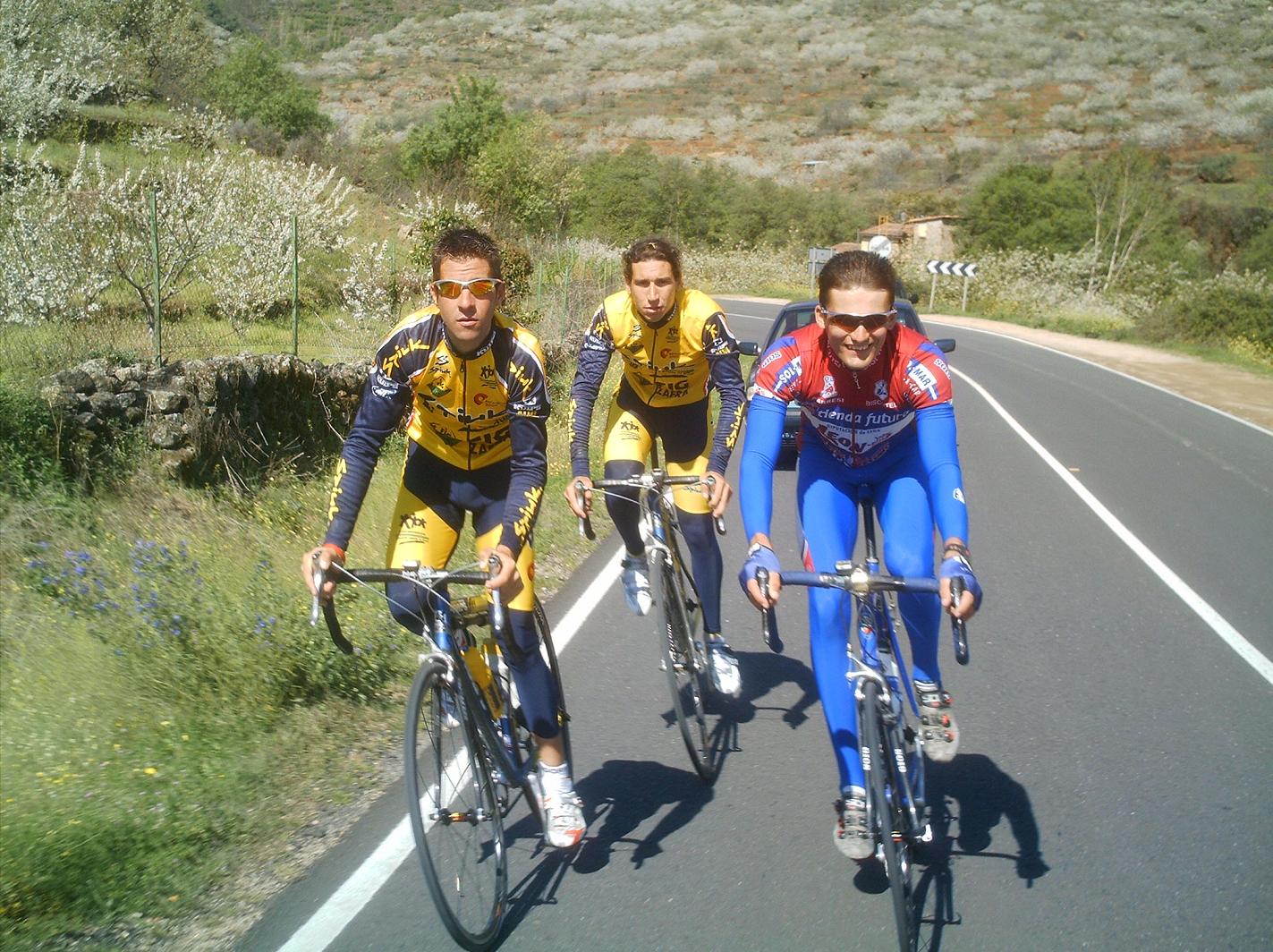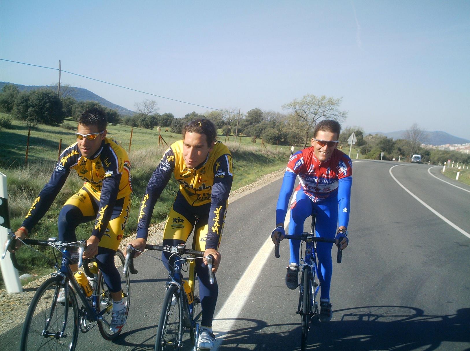 La Grupeta saliendo de Plasencia por la Nacional del Valle del Jerte, Mokete, Abel y Pedro Romero.
