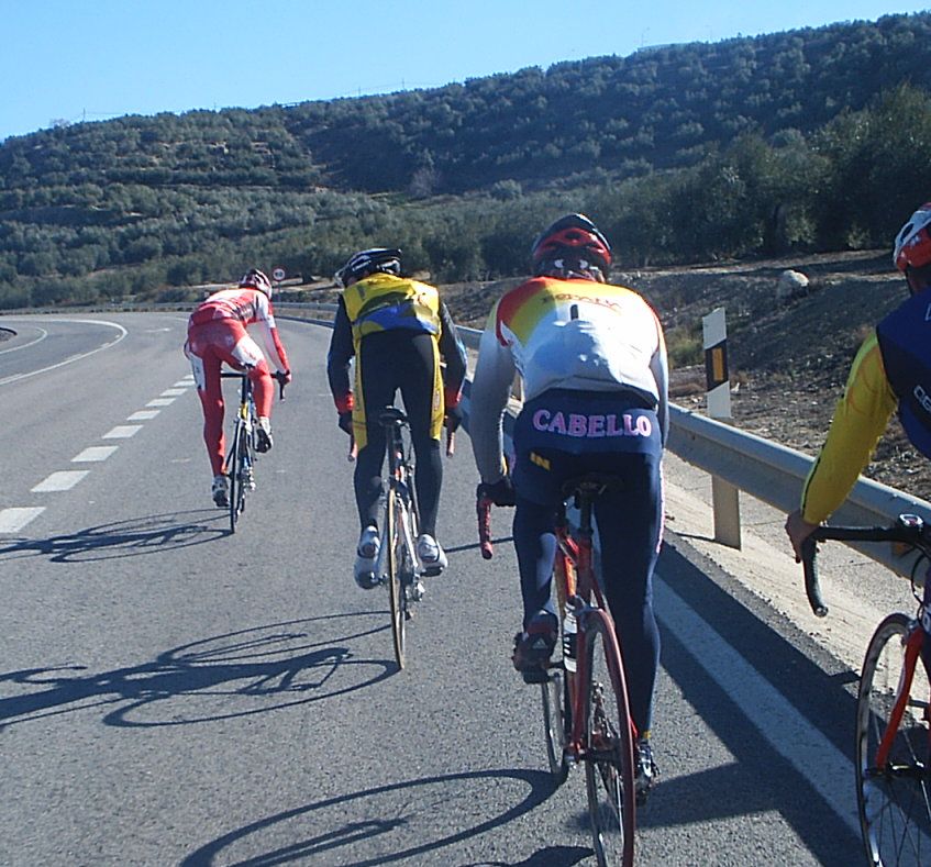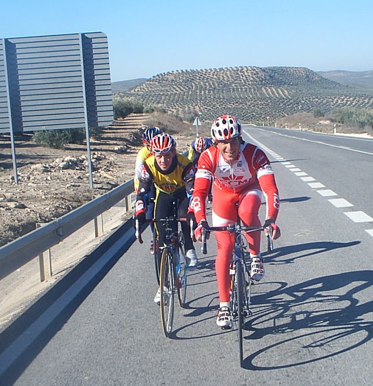 ![]() La Xarpa de entre semana sale a las 2 de la tarde, la componen 4 gatos y se hacen unos 40 kms, que les valen para ser competitivos los fines de semana, aqui con el Mítico Nicolas. |